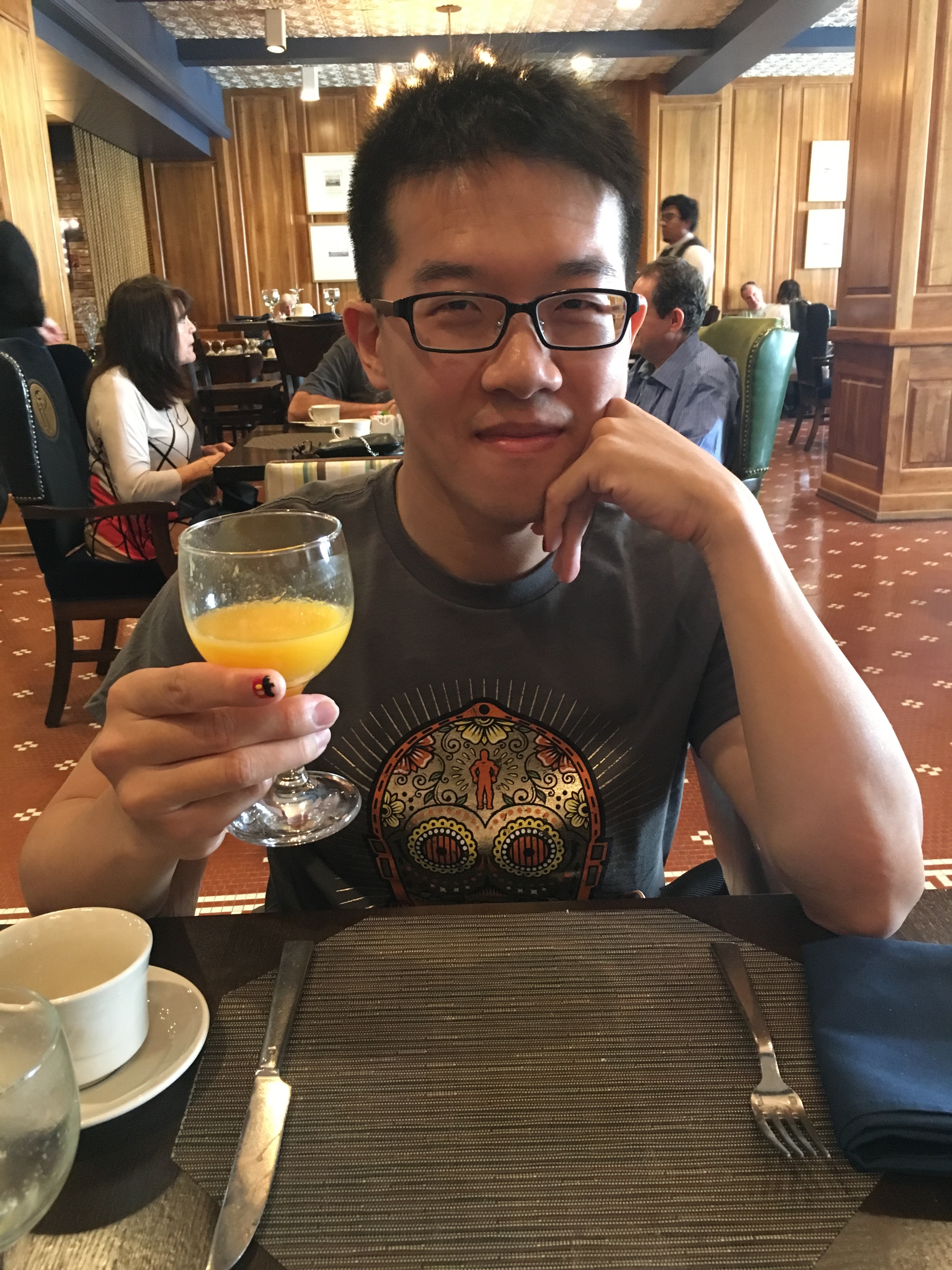 早餐選擇不多,就是標準的炒蛋、培根、肉腸、和炒蔬菜,還有水果和優格。但真正令人驚豔的是柳橙汁!真的是現擠的柳橙汁,味道就跟你在菜市場看到那種擠出來裝成一個細細瓶子的柳丁汁的味道是一摸一樣!難怪他不放在櫃檯,而是要請服務員幫忙倒!