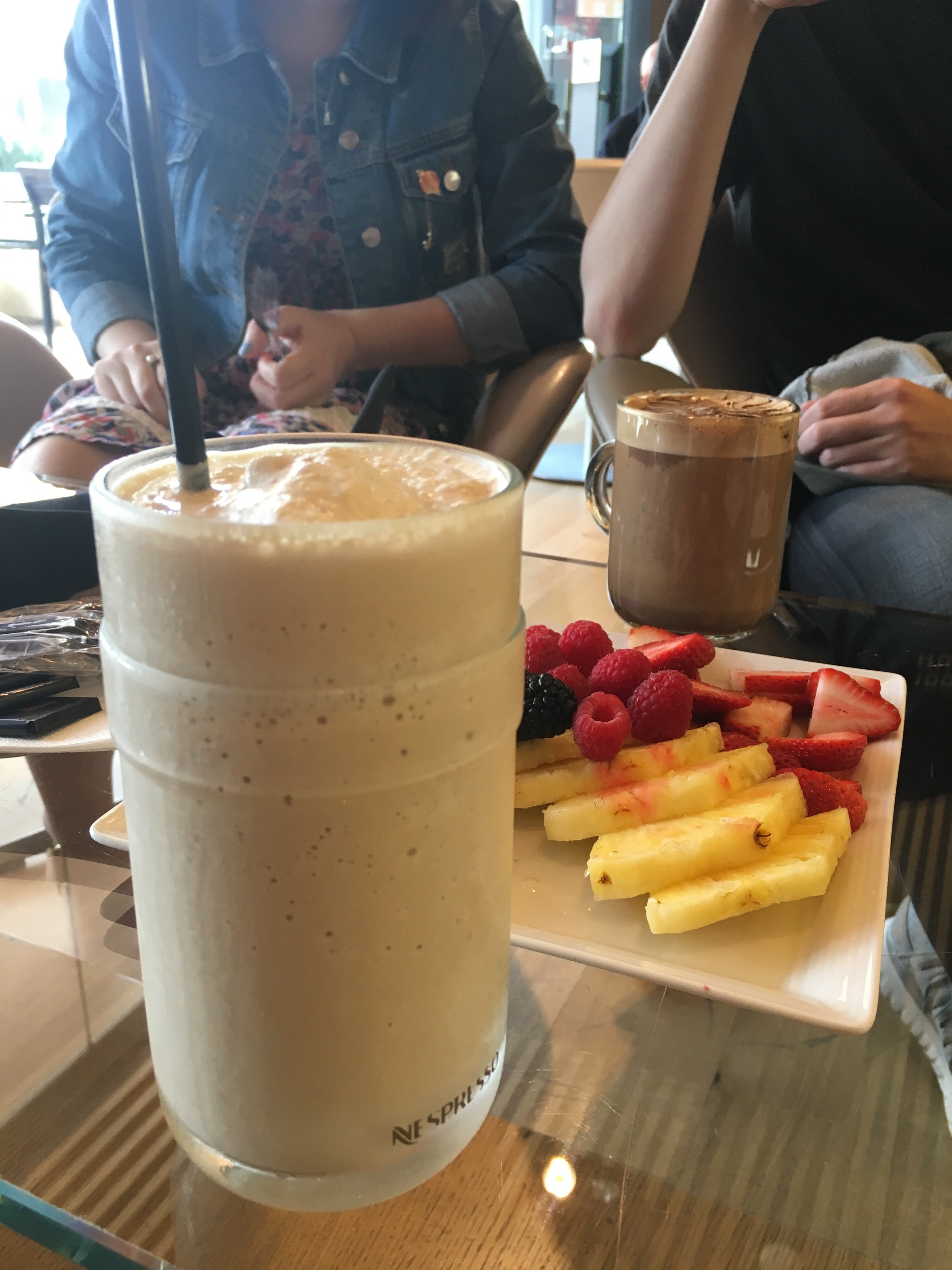 天龍國不愧是天龍國,趴車一定不能自己趴,要給小費給人趴才行;停車場旁邊的廁所還有噴水池和沙發椅。街道乾淨清爽,路上有好多看都沒看過的跑車;大多數人都帶著狗逛街,狗們也都非常有修養,儀態端莊、鮮少吠叫,謹守本分的待在主人身旁陪伴。幸好還是有我們逛得起的店,還買了洪毓茹心心念念的美麗涼鞋。逛累了,在Nespresso專賣店裡坐坐享受一份貴氣(?)的下午茶。最後去各種買不起的頂級名牌店裡,欣賞各種名家設計,吸進一鼻子的貴族空氣,顯示為到此一遊。