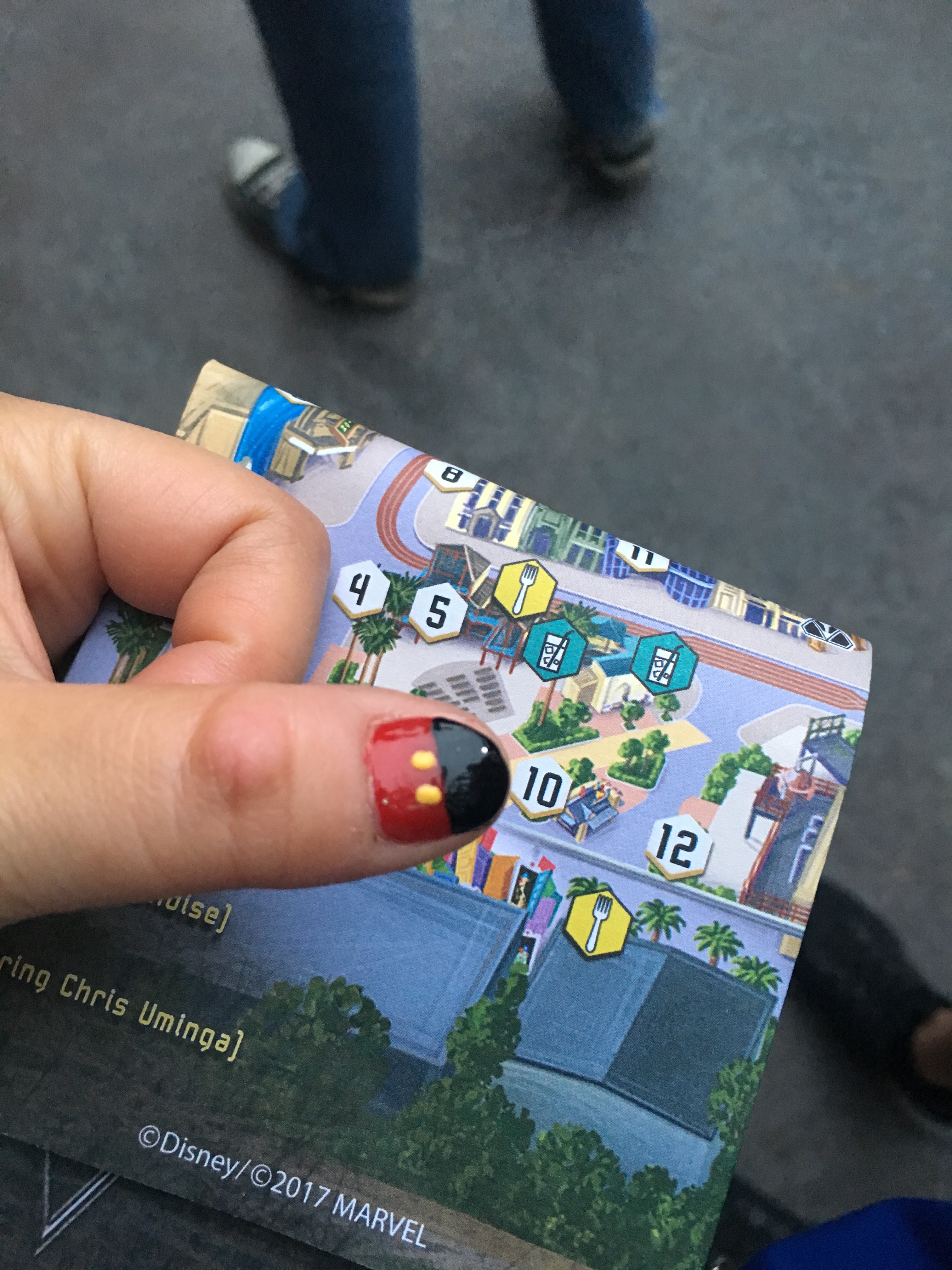 看完水舞秀,除了Hollywood land以外的園區就關門了。拿著門票附贈的30鎂折價券,買了還不錯吃的捲餅,還有一個Groot頭的大麵包!(做得實在很生動但我忘記拍照了!Charles Tsui快幫我傳上來!)最後為了要填完解謎遊戲的問答題,又拖著昏昏沈沈的洪毓茹坐了最後一次的恐怖電梯!因為喝了點小酒,坐起來飄飄然的,有種迷幻的刺激感(洪毓茹表示快往生)。最後隨便逛一下商店,問了幾個店員都不知道把解謎問答題喔填完有什麼特殊禮物,離場時才發現原來每個人都有一份一樣的啊!虧我那麼用心寫!最後和華特迪士尼桑與米奇桑合照,累得軟綿綿的,結束本次的迪士尼行程!