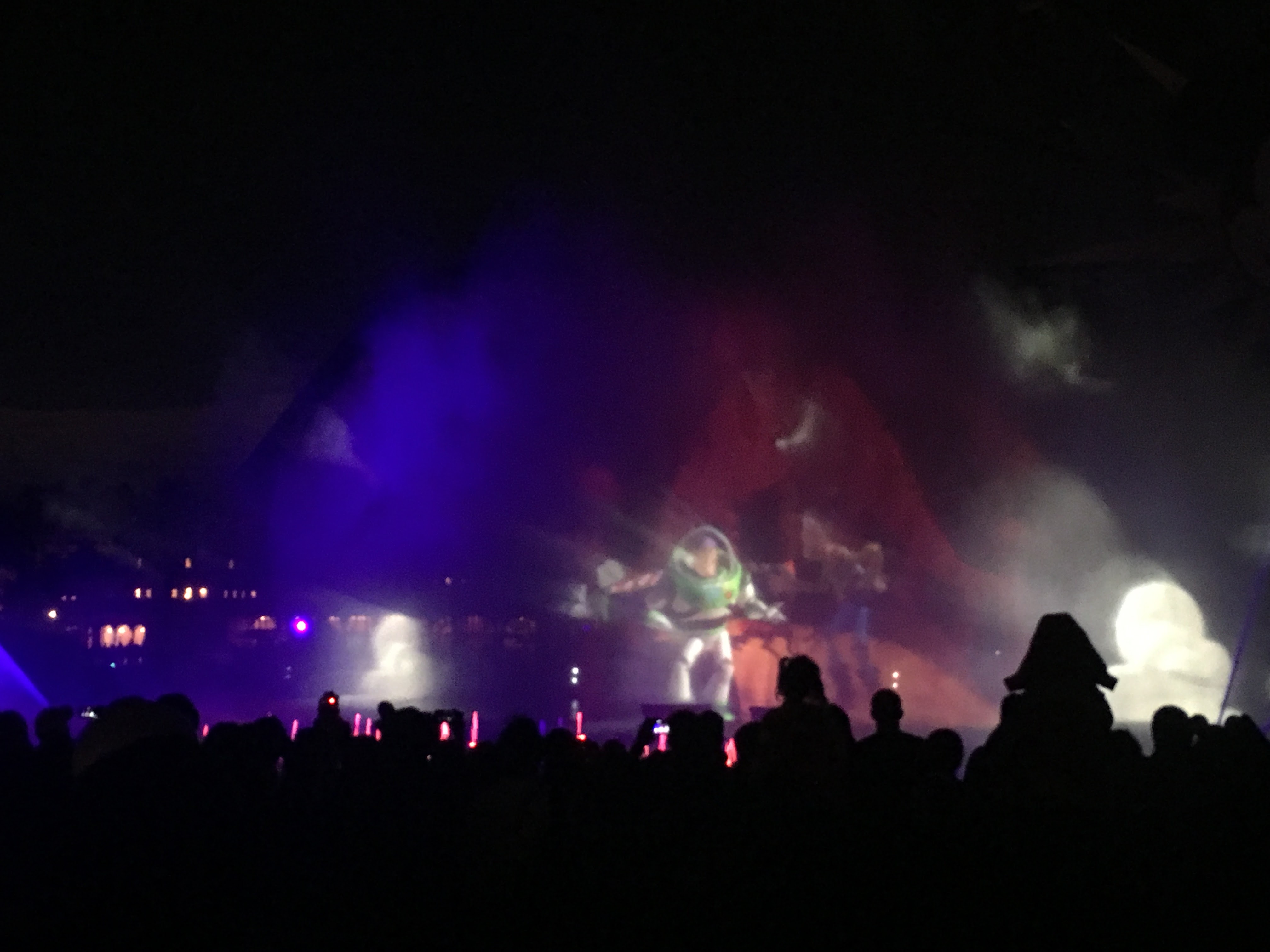 拍完照就去看夜間的水舞秀,音樂配上影像真是令人鳥肌啊!我一整天都被光雕騙得一愣一愣的!有Nemo、小美人魚、巴斯光年、風中奇緣、還有天外奇蹟的氣球屋!中間還有辛巴老爸掉到斑馬群中的畫面,一直以為待會老爸就要出現在天上結果居然沒有!是說我們以為兩場水舞秀會有不同的音樂,沒想到是一模一樣的,真是可惜。
