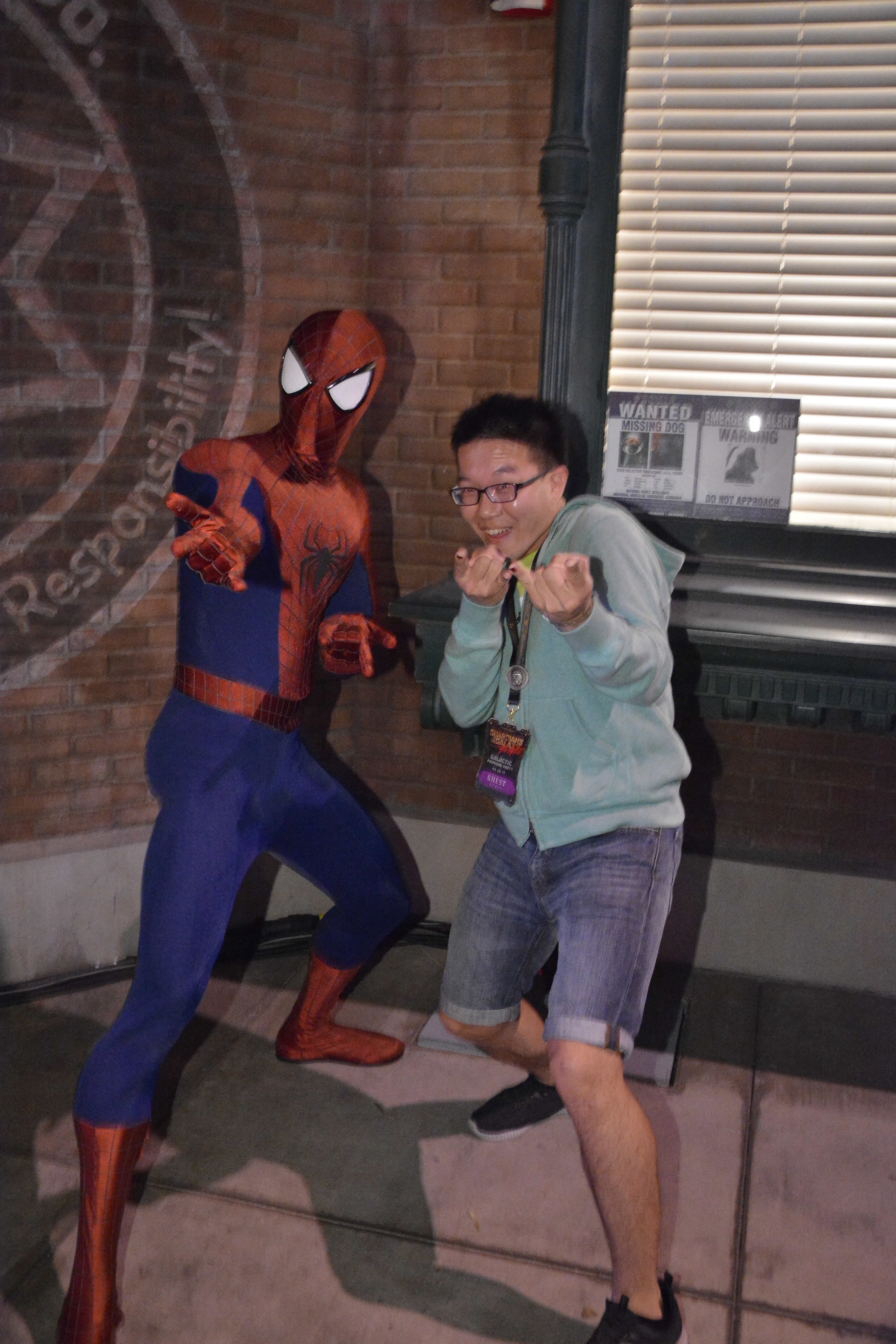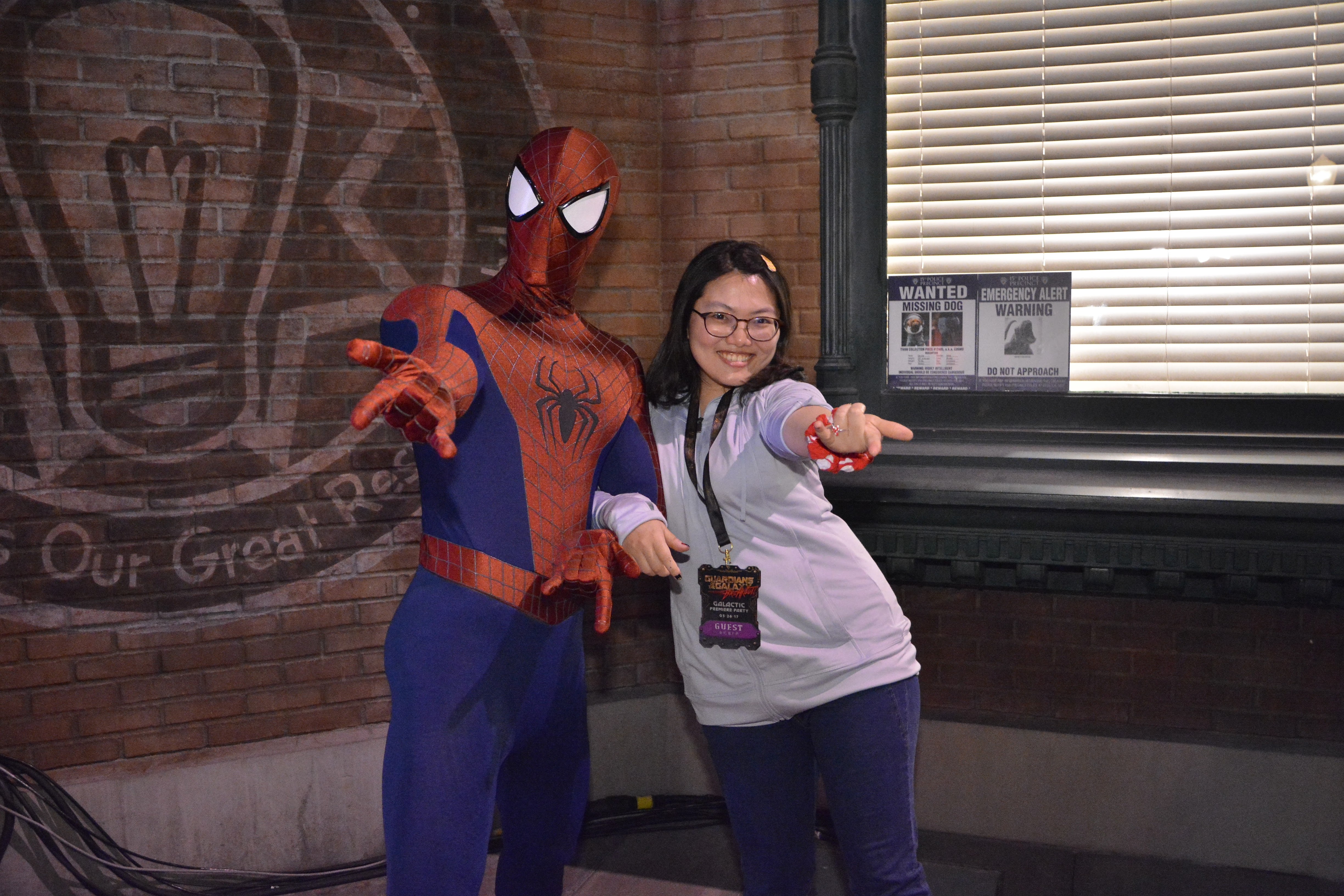 坐完設施就跟在園區裡的英雄們拍照。有很高又超級細緻連手指關節都會動的Groot,跟吊兒郎當的蜘蛛人!我不知道為什麼我的表情很猥褻啊啊啊啊!