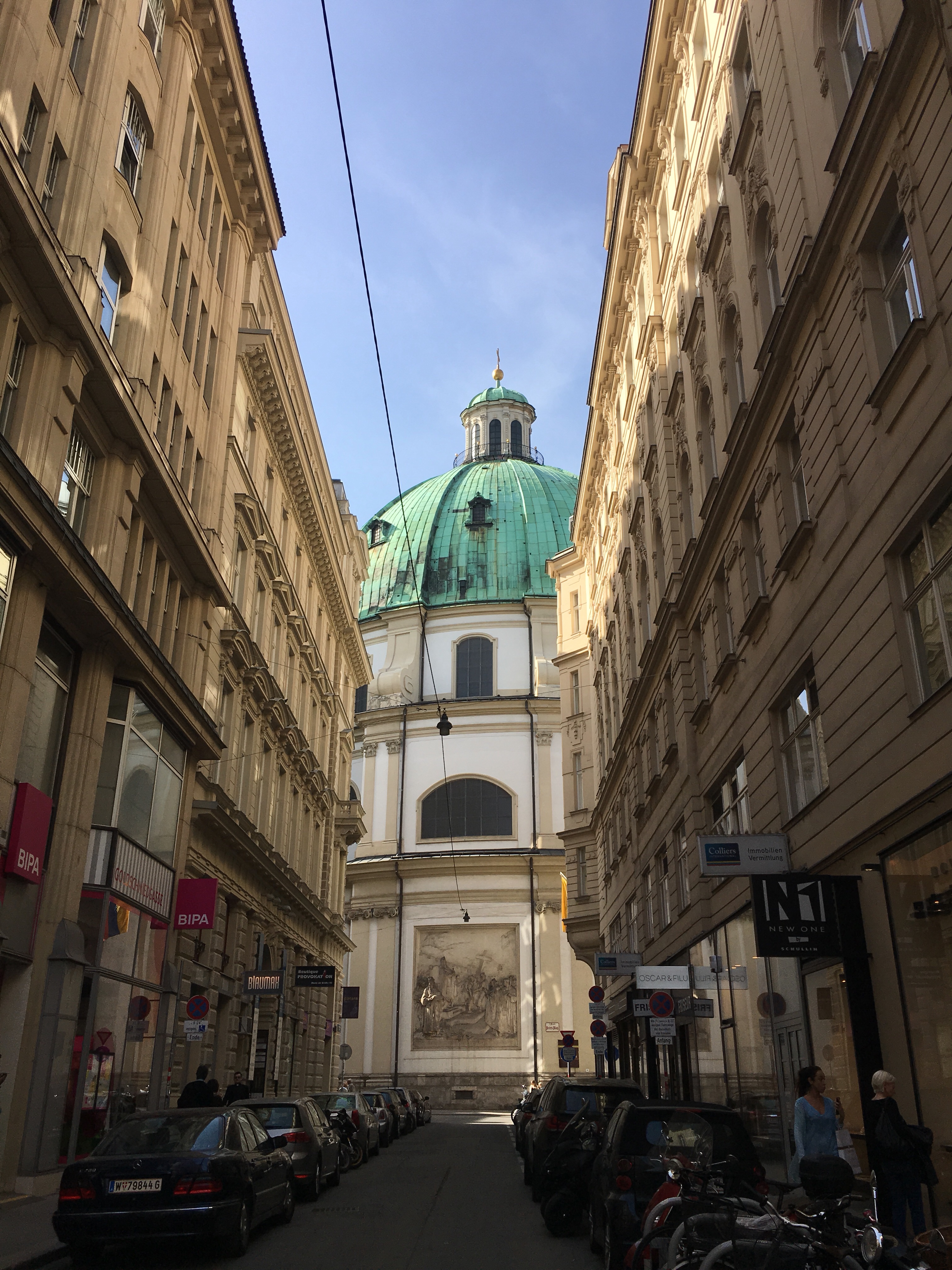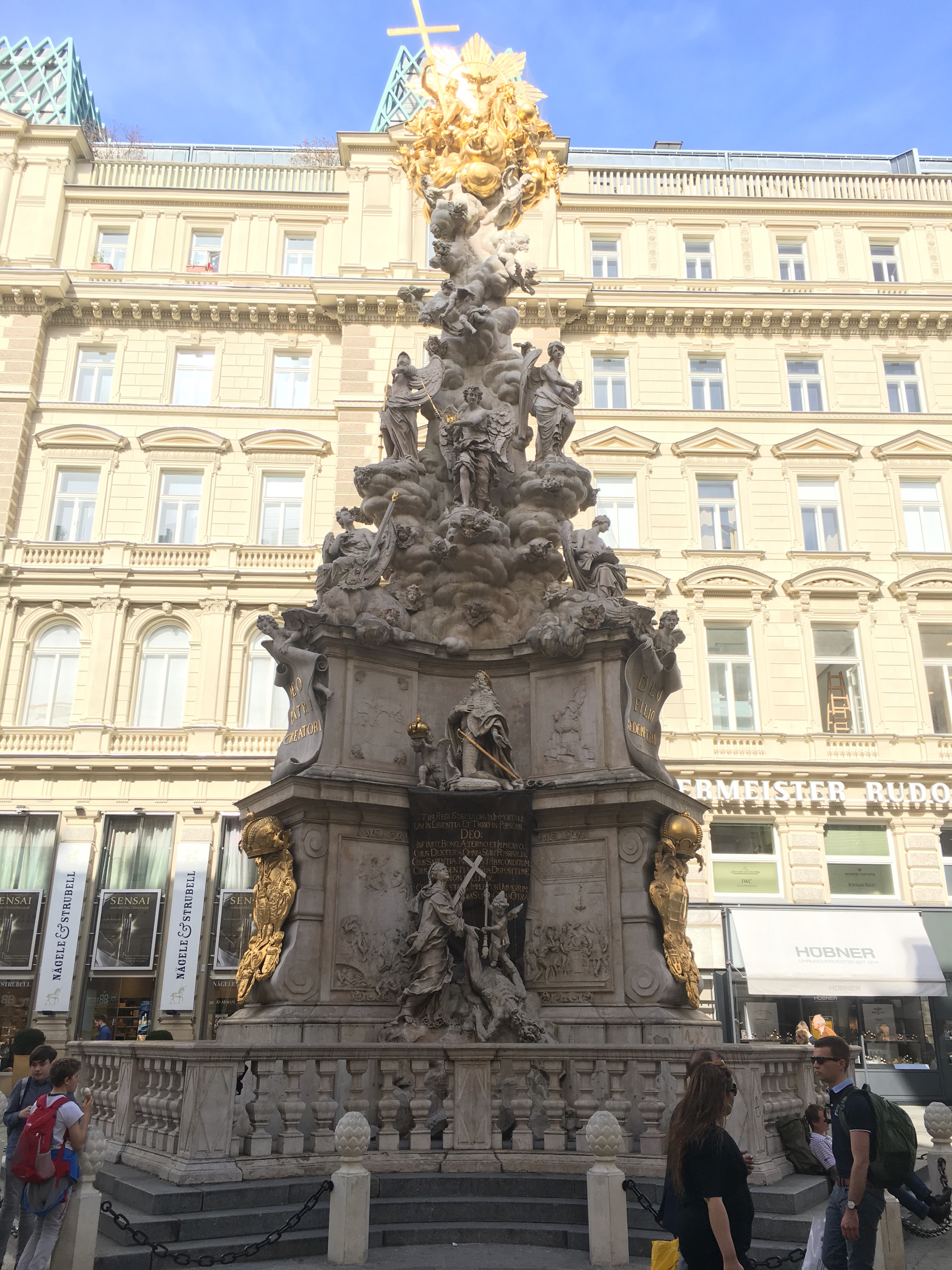 因為茹茹去EGU會場了,下午我就自己一個人在舊城區閒晃。回到昨天拍過照的史蒂芬大教堂,下午的光線下又是另一種壯觀。從旁邊的巷子走到有綠色圓頂的聖伯多祿教堂,再轉到維也納最出名的格拉本大街上,這裏充滿各種精品店和高級咖啡廳,我也就只是看看黑死病紀念碑,走了一圈,又回到了史蒂芬廣場。時間接近傍晚,不知道還要做什麼,就逛逛超市,買些維也納有名的巧克力和夾心酥,就搭地鐵回旅館和茹茹回合了。