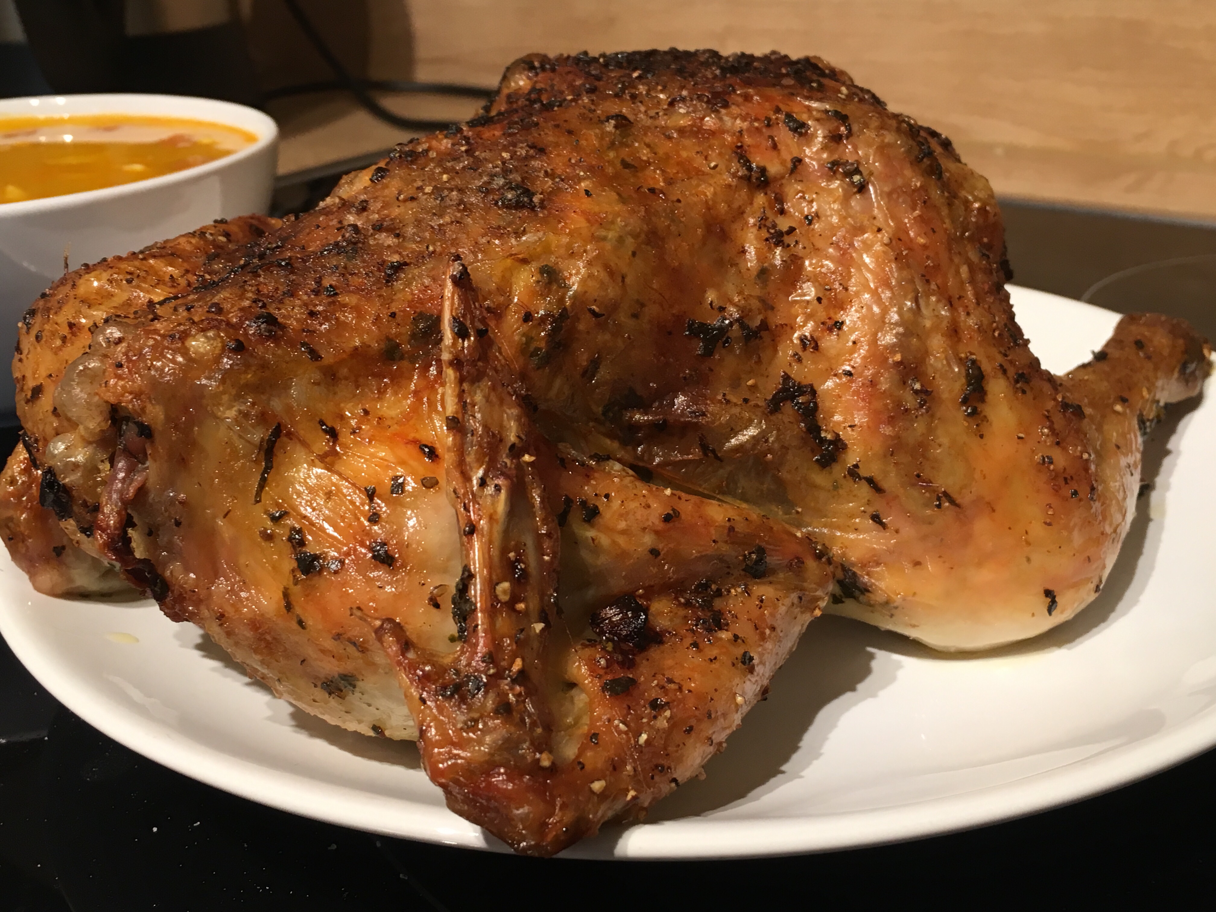 今天吃過自己弄的可頌夾火腿蛋(還配上茹茹同學給的醬油)當早餐,送茹茹去會場後,就開始準備烤全雞的材料了!