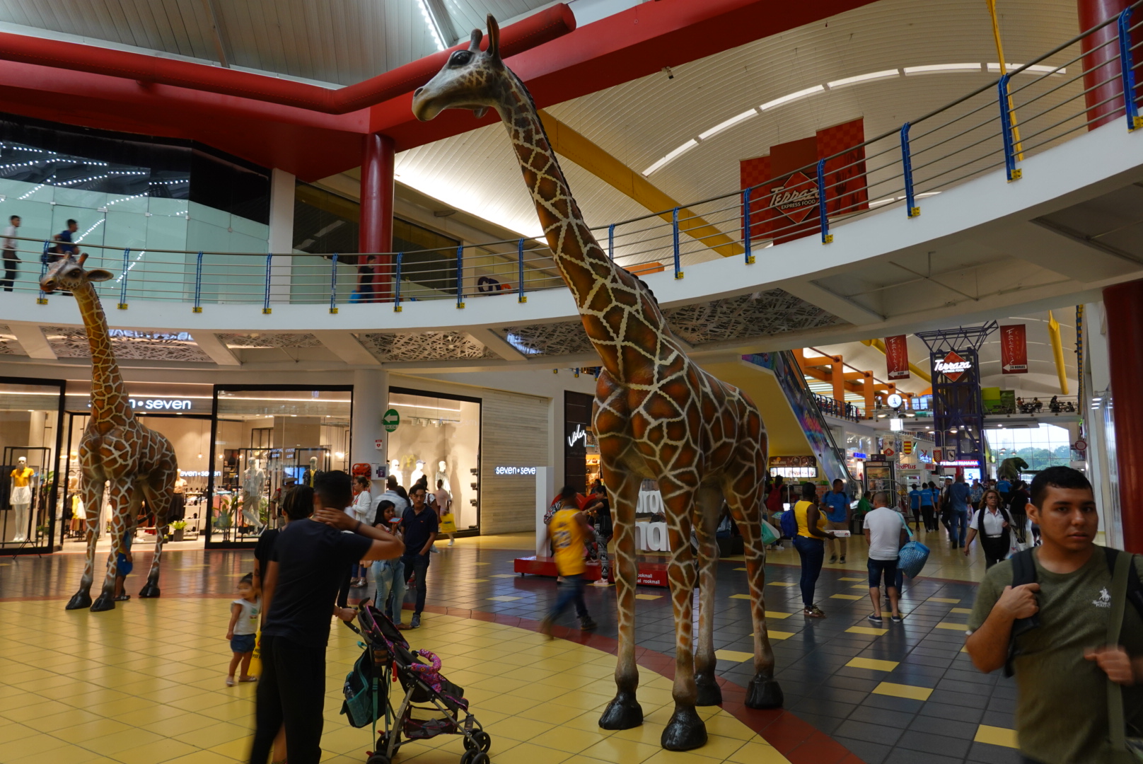 下午一點,天空越來越黑,看起來快下大雷雨了。繞過交流道,再走個十五分鐘左右就看到Multiplaza mall,但mall也是被大馬路環繞,也沒看到哪裡有斑馬線,只好學習當地人勇猛的過馬路精神。這個mall很新,就算是平常日白天,來逛的人也很多,但我其實也沒有要買什麼,只是想躲雨。進了幾家運動專櫃看看價位,基本上就是台灣專櫃沒打折的價錢。Mall的三樓是電影院、旁邊有餐廳和美食街,再過去就看到巴拿馬最主要的四家電信公司Digicel, Claro, +movil, Movistar一字排開,果然+movil雖然貴(門口貼出來的價錢和機場一摸一樣),但店裡滿滿都是人(就像中華電信)。