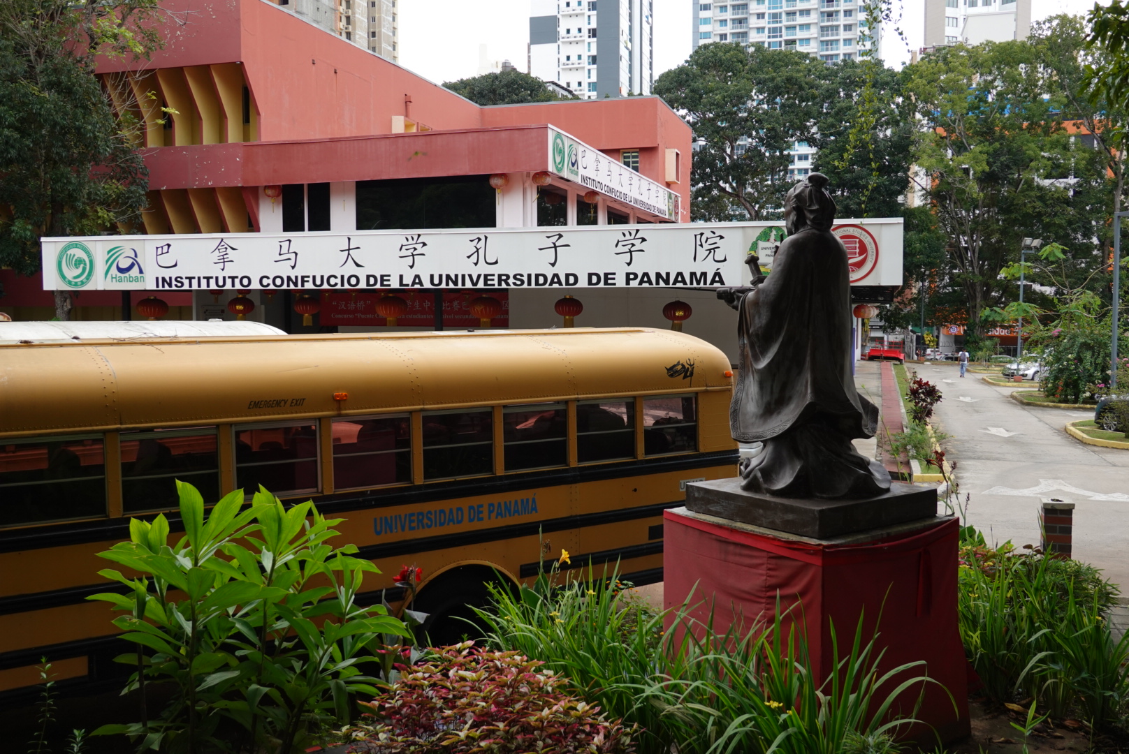 下午自己到離捷運站不遠的巴拿馬大學走走。巴拿馬大學的大門旁邊有個中國的文化輸出機構孔子學院,還有尊孔夫子的銅像,只是完全沒看到人在進出。整座校園建在一個小丘陵上,佔地不大,大概十五分鐘就從前門走到後門。