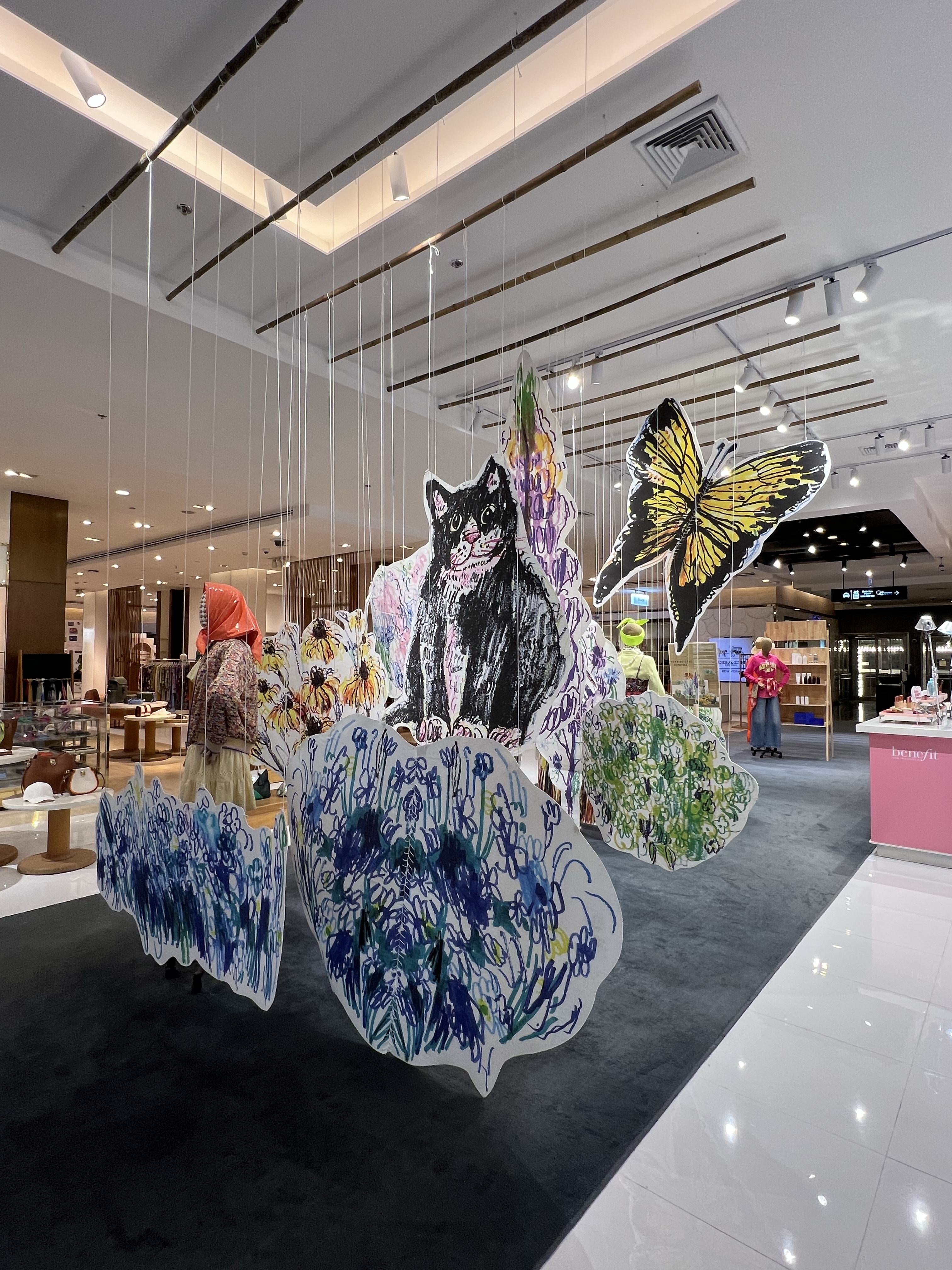走過連通天橋進入對面的Central Embassy高級百貨逛逛,頂級的Park Hyatt飯店就在這間百貨樓上,先幫茹茹的朋友看看精品店,然後到地下一樓逛逛超市和美食街。美食街的入口處會先給你一張卡片,每個攤位的消費都會記在卡片上,在離開時才一次結清付錢,應該是疫情以來發明的措施;茹茹買了一根冷凍榴槤,我則吃了一盤芒果糯米,一解熱帶水果之渴。