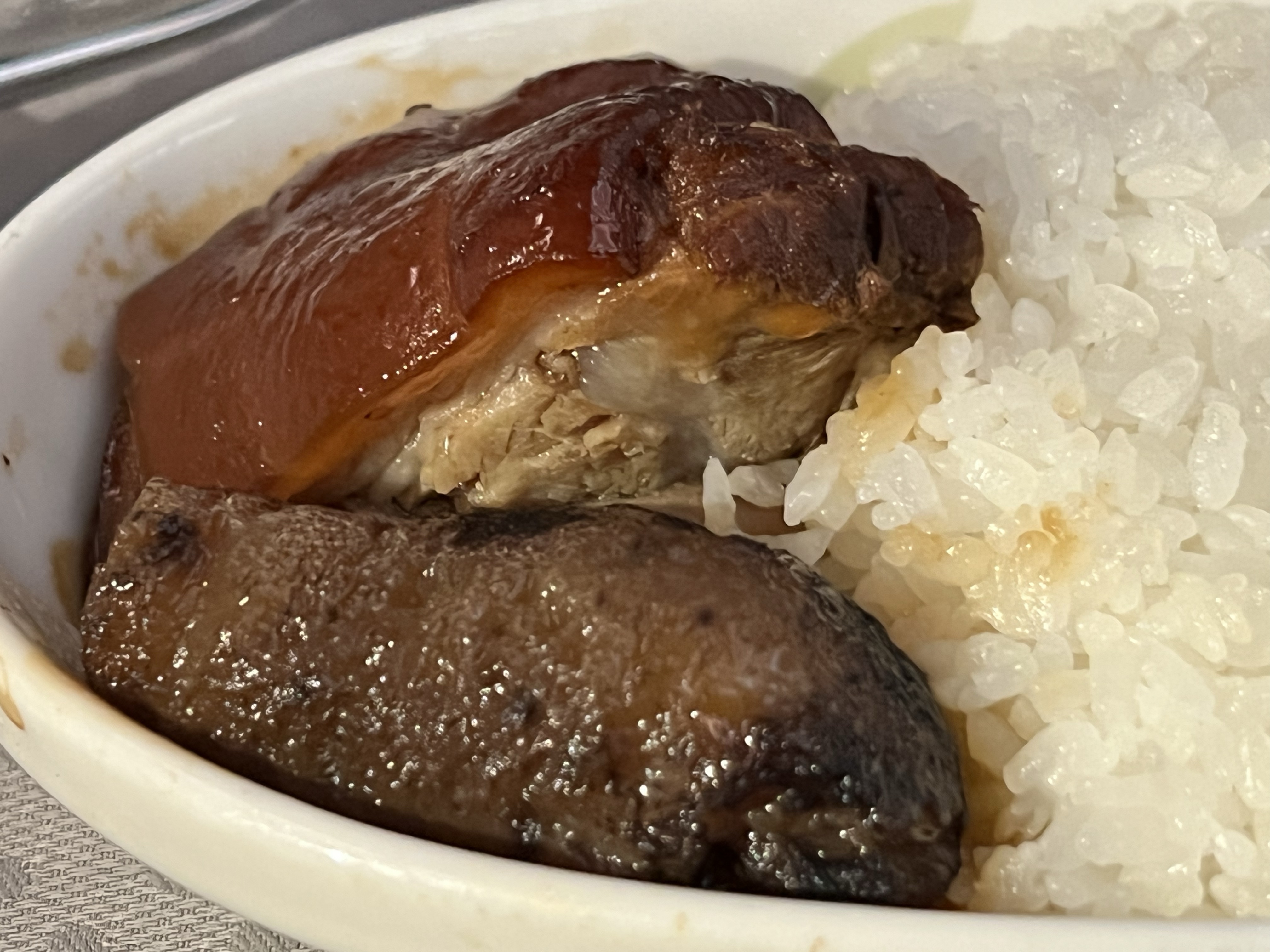 這次點的豬腳海參飯還挺讚的,雖然白飯不太行,但主餐好好吃!用機上的耳機看羅伯派丁森的新蝙蝠俠,耳機比以前進步很多,舒適度不錯、抗噪能力很好,空姐跟我講話完全聽不到🤣。看到最後決戰前就快到曼谷了,怕被卡在一個最後刺激的地方,索性先關掉、等待會飛維也納再看完。(新蝙蝠俠有夠讚,氣氛和配樂的營造超強,很多畫面的美感也超好,羅伯派丁森演的稚氣未脫蝙蝠俠也有夠香!)
