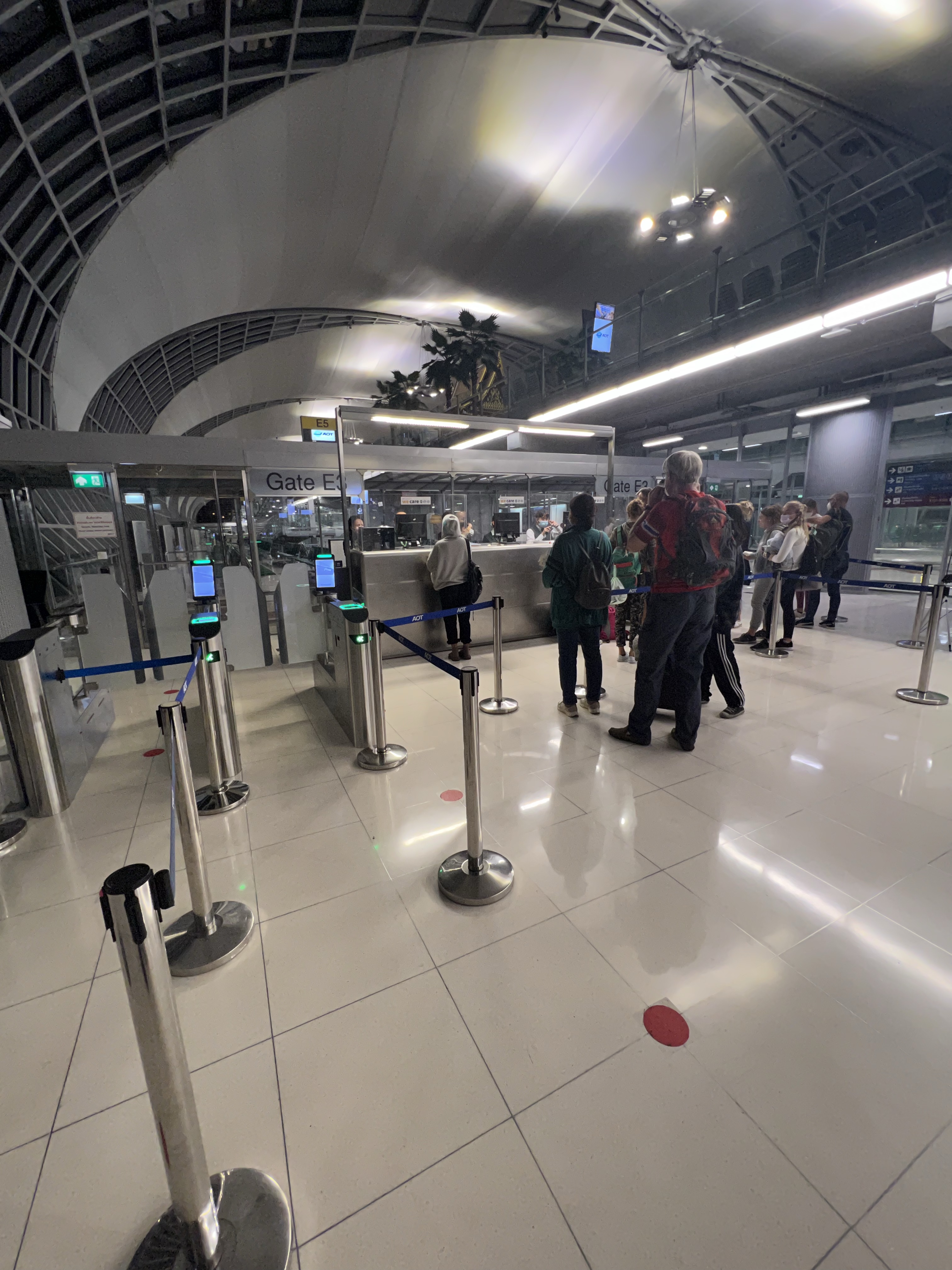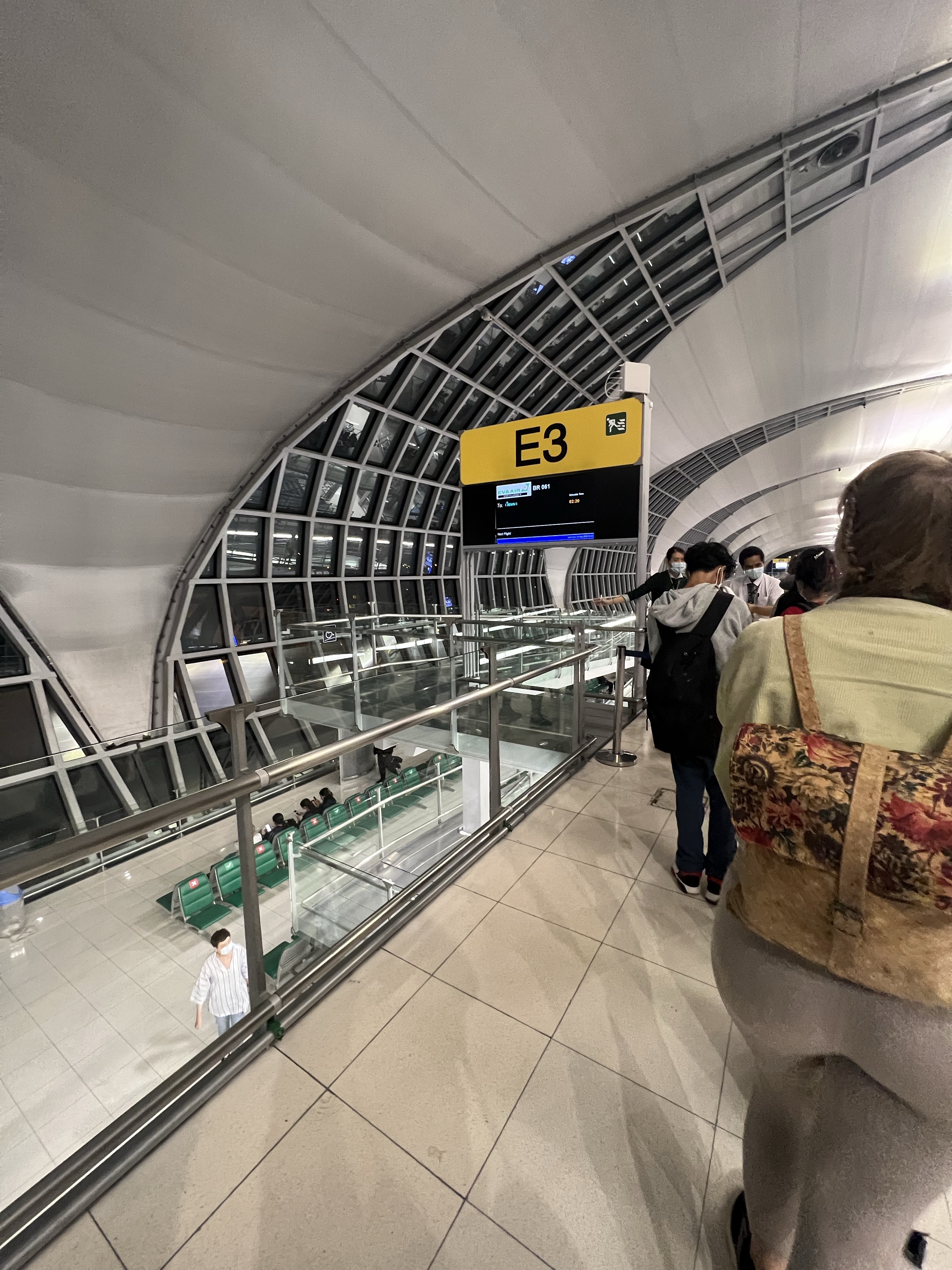 在曼谷下機之後就是繞一圈再過一次行李檢查,到樓上一模一樣的位置重新上機。雖然說起來簡單,但我每次在曼谷機場轉機都深怕迷路,幸好這次順利完成。曼谷有超多西方人等著搭這班飛機去維也納,難怪長榮總是要繞來曼谷賺一票。我準時到登機口等著,但櫃檯有超多人要處理機票,不知道是什麼事,也不知道多久才會讓我登機。曼谷機場的wifi等於沒有,還好我的Google fi有抓到訊號,有滿格的LTE訊號實在不錯。最後在登機口站了30分鐘後才登機,下次還是乖乖坐在椅子上等好。