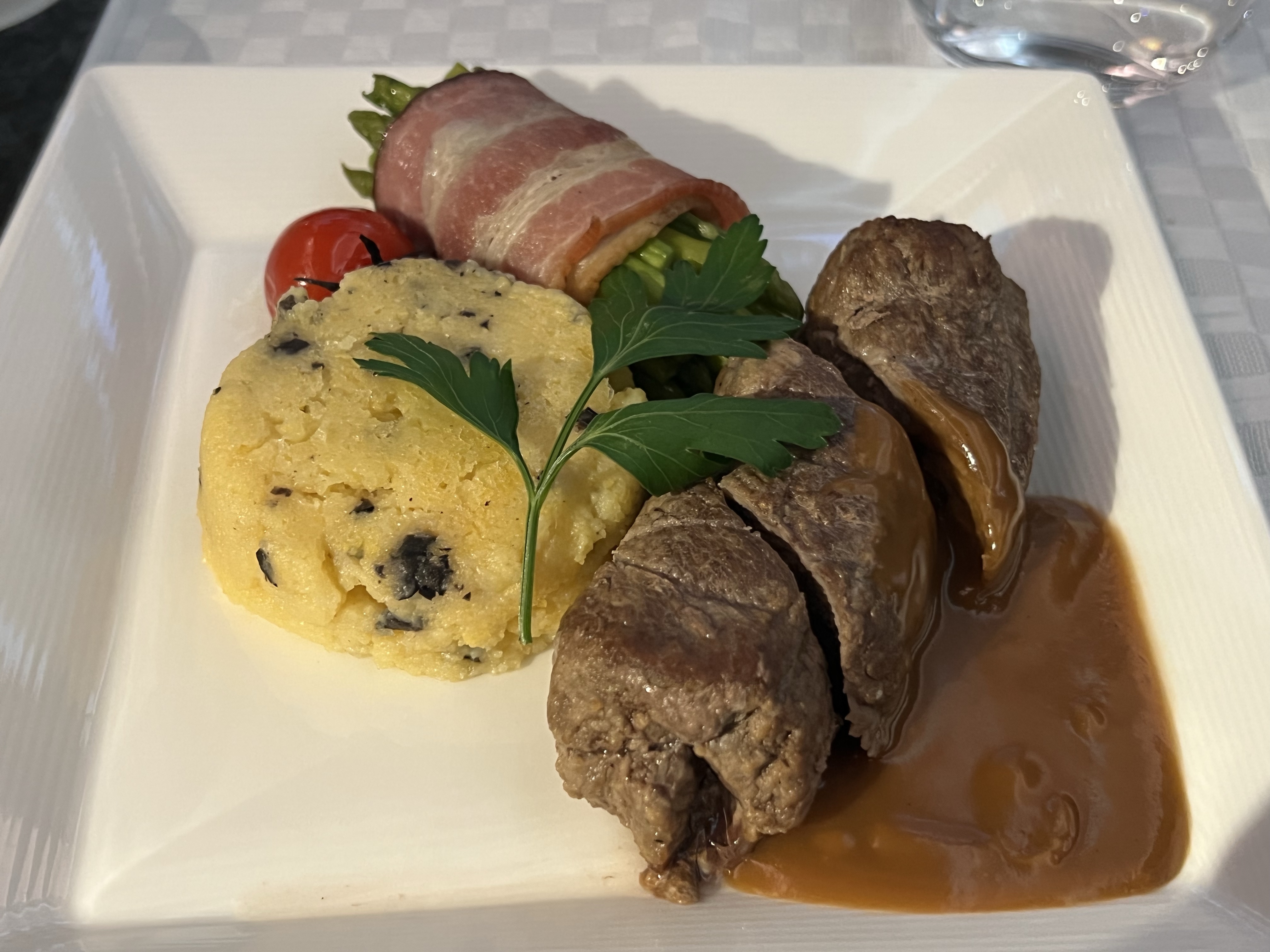 看完蝙蝠俠吃飽飯,換上睡衣後就睡覺了。不知道新款商務艙是不是真的有比較好睡,雖然中間有小小醒來幾次,但還是一路睡到被叫起來吃早餐。早餐的蝦仁粥只有蝦仁有味道,白粥就是白粥,有點失敗。之後還看了幸福綠皮書,實在好看。不久後就降落在維也納機場了,一到機場就有網路的感覺還是很讚!
