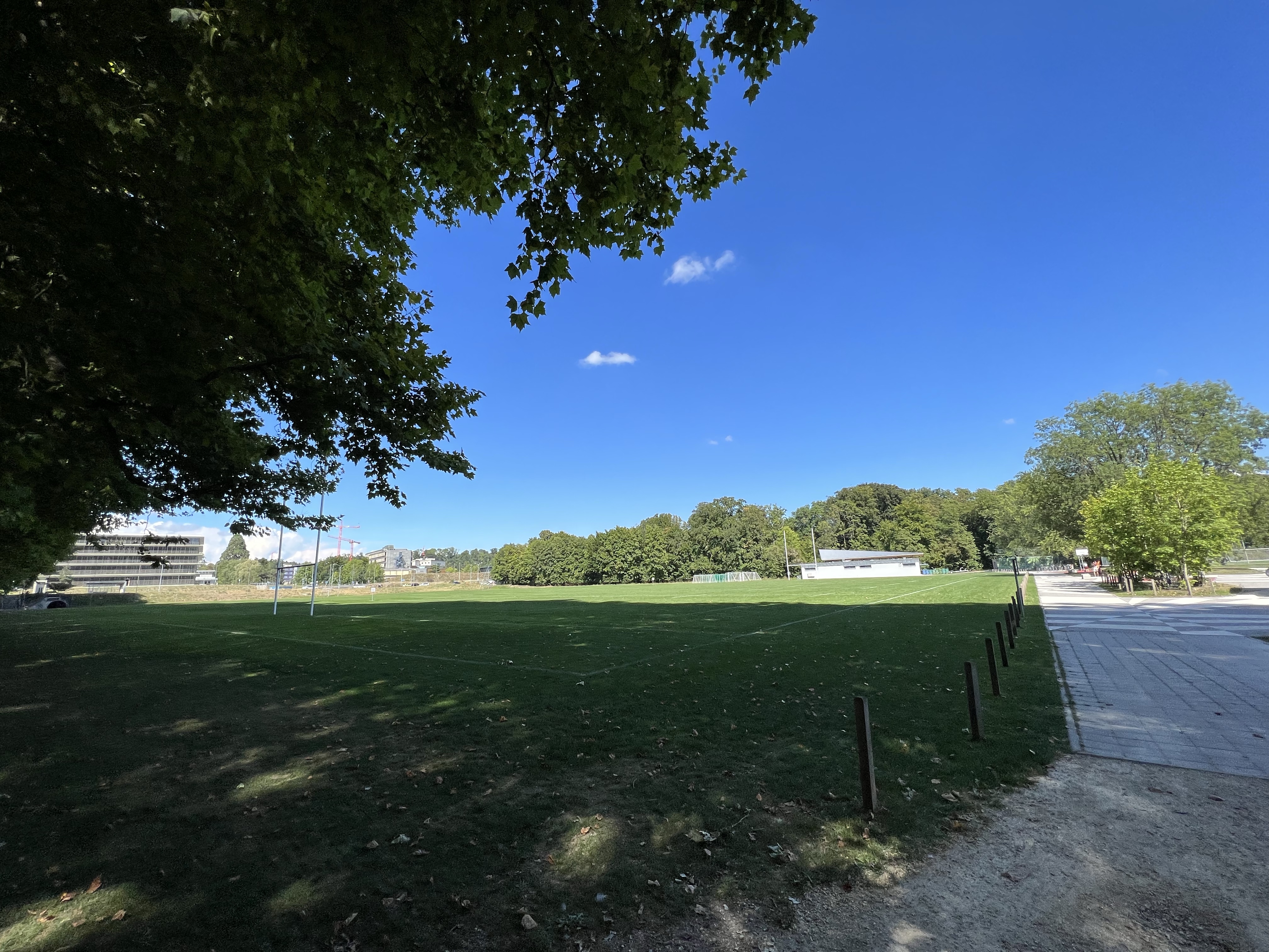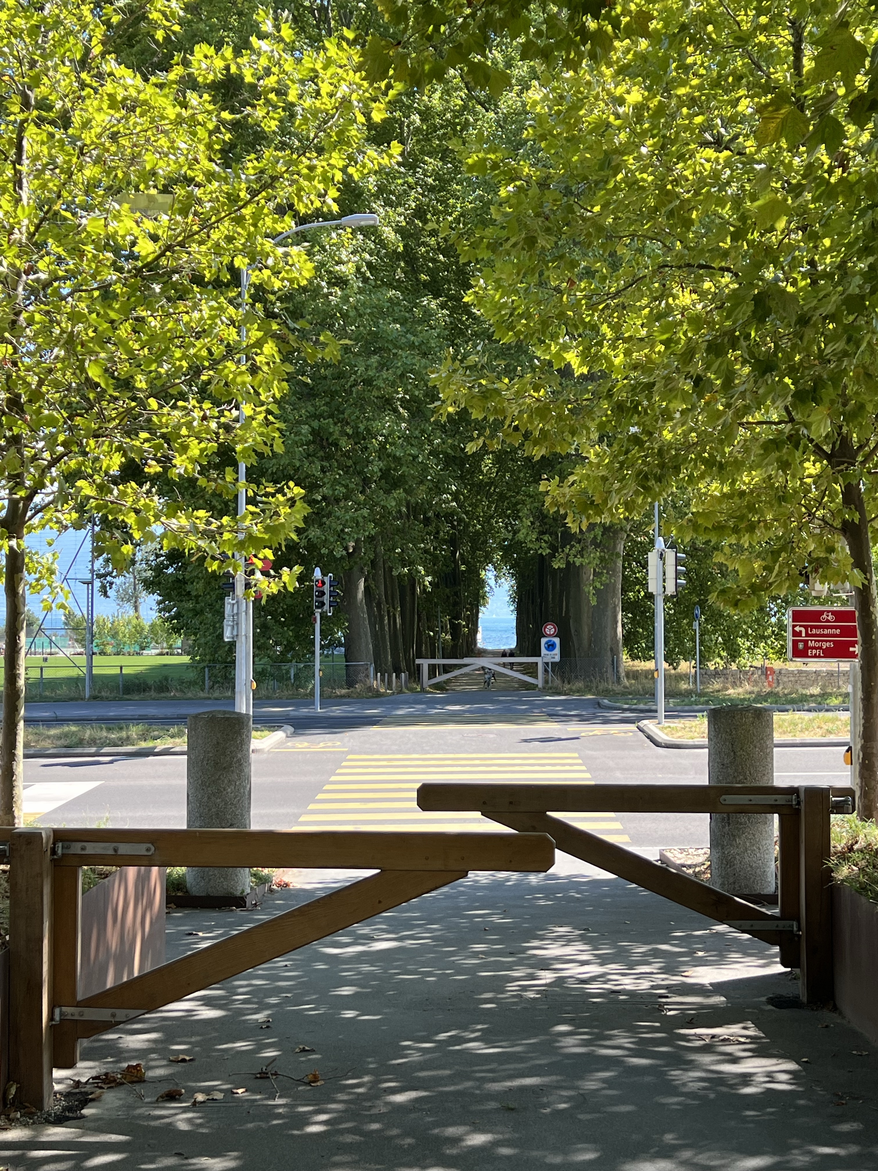 下午三點跟陳博士約了打球,一回到宿舍就趕著出門,因為已經遲到了,就索性用跑的過去;中間剛好遇到通路線的25號公車,就跳上去搭兩站再繼續跑。到球場前有一段楓葉小徑,盡頭就是湖,可以遠遠看到湖面上的帆船。