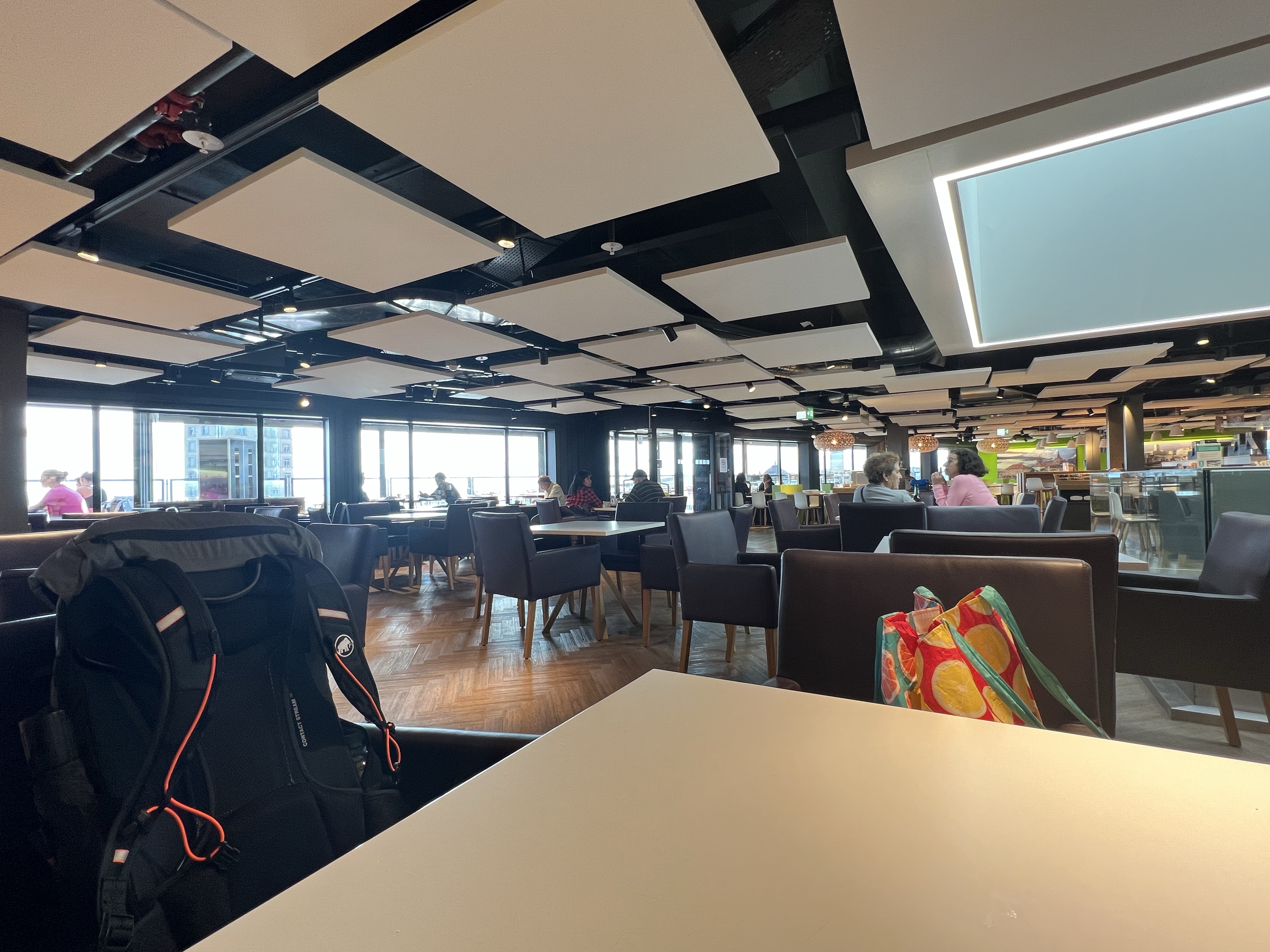 之後走到Swisscom的店面詢問解約事宜,等了好一陣子,把店裡所有的展示機都看一輪了才終於輪到我們,還好接待我們的大哥非常專業,英文也很好,很快就確定狀況幫我們立刻處理,一下就完成了。之後去旁邊的Coop city逛逛,地下室是超市,其他層就像是百貨公司,有化妝品區、家居用品區、電器區等等,頂樓是自助餐廳,餐廳風景超好,可以一覽湖景,拿一個盤子堆到滿都是同樣價錢,不過我們去的時候已經收了,就點了一杯果汁喝一喝上個免費廁所。