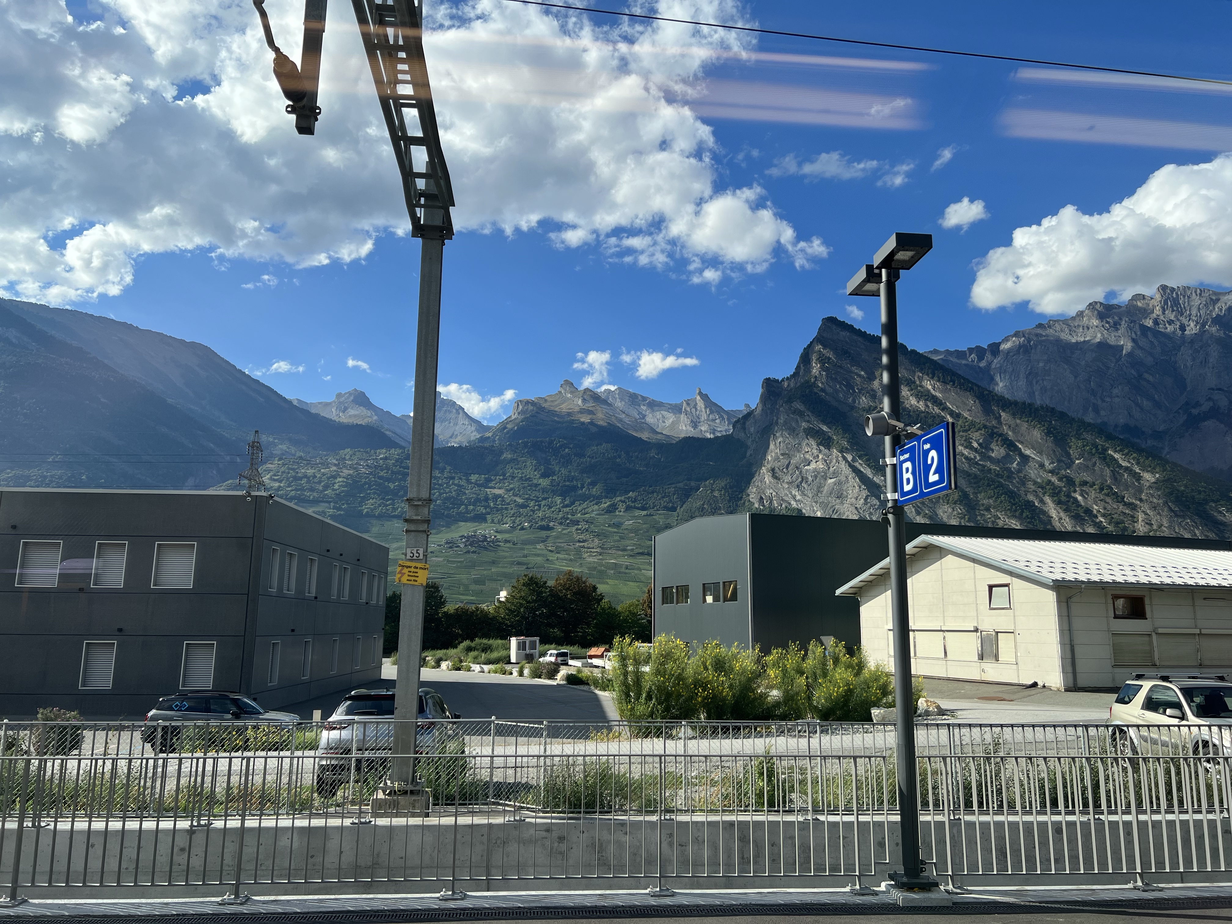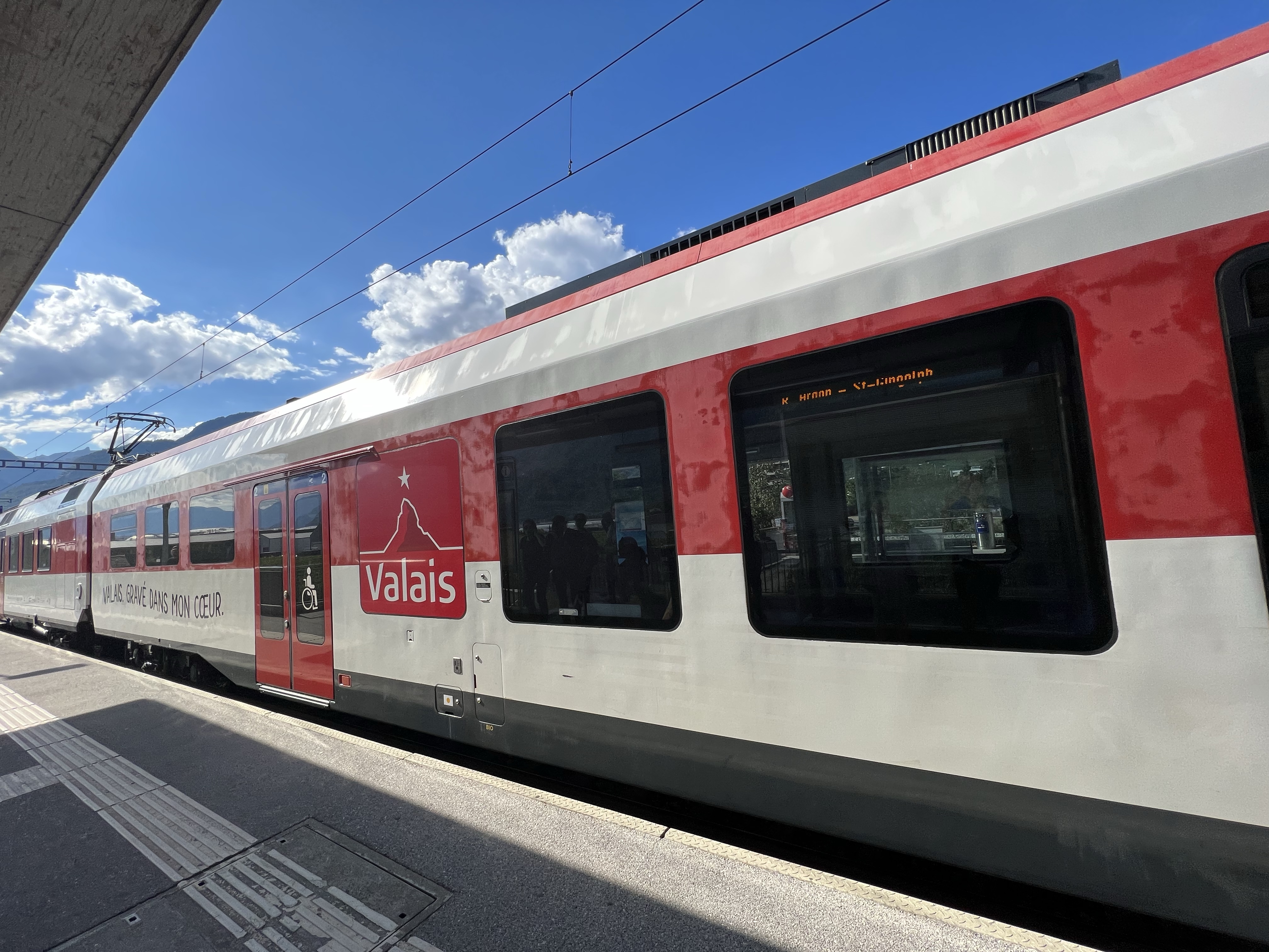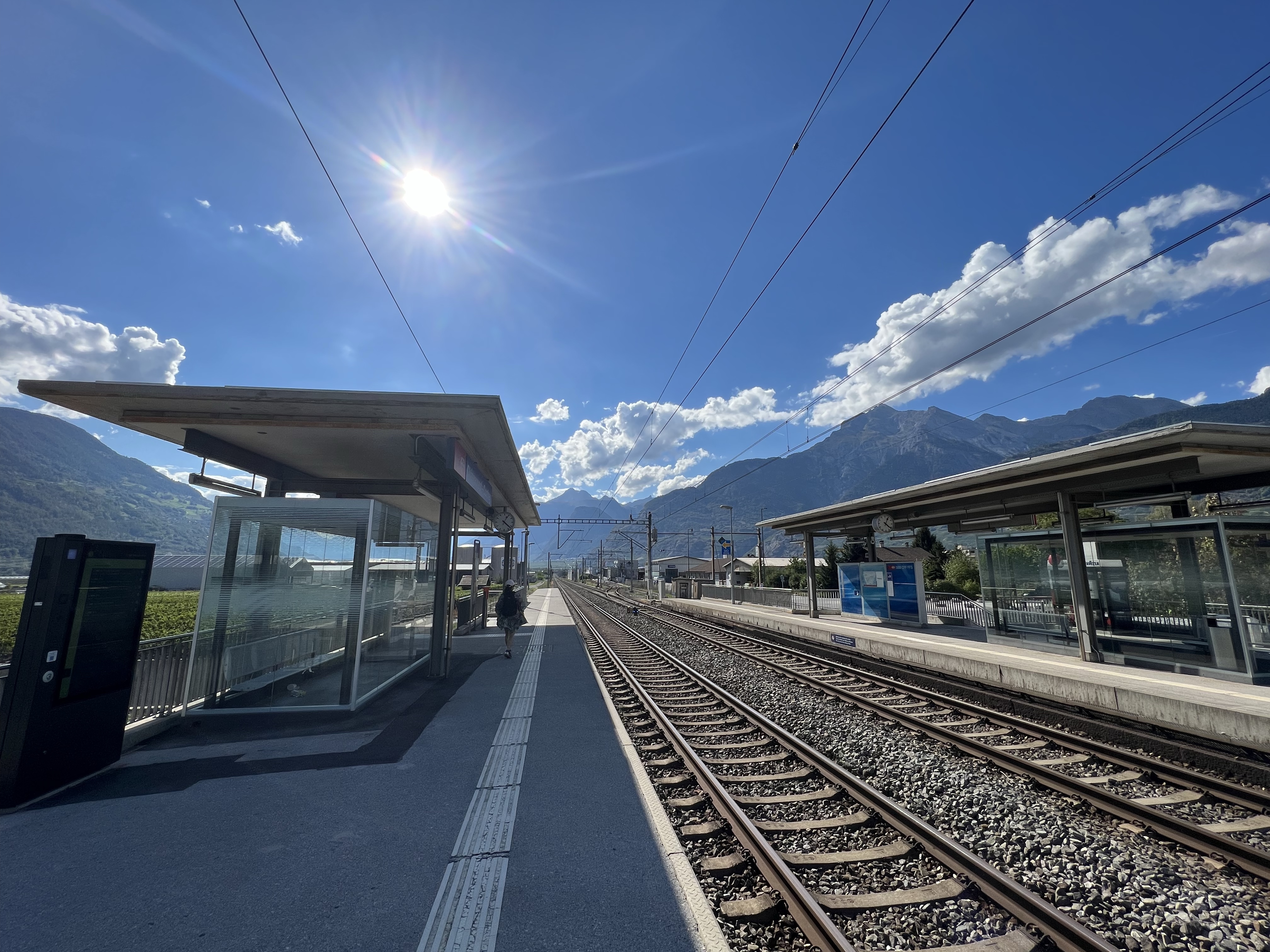 車站非常小,就走樓梯上去兩側各一個月台,但還是設了一間透明的候車室,也是貼心。因為是小站,只有區間車停靠,從Sion開來的(我們原本要搭的)快車經過時的風壓有夠嚇人。等了大概二十分鐘搭上區間車,再轉了一次車回到洛桑,接著搭捷運轉公車回旅館,我也是熟門熟路了。
