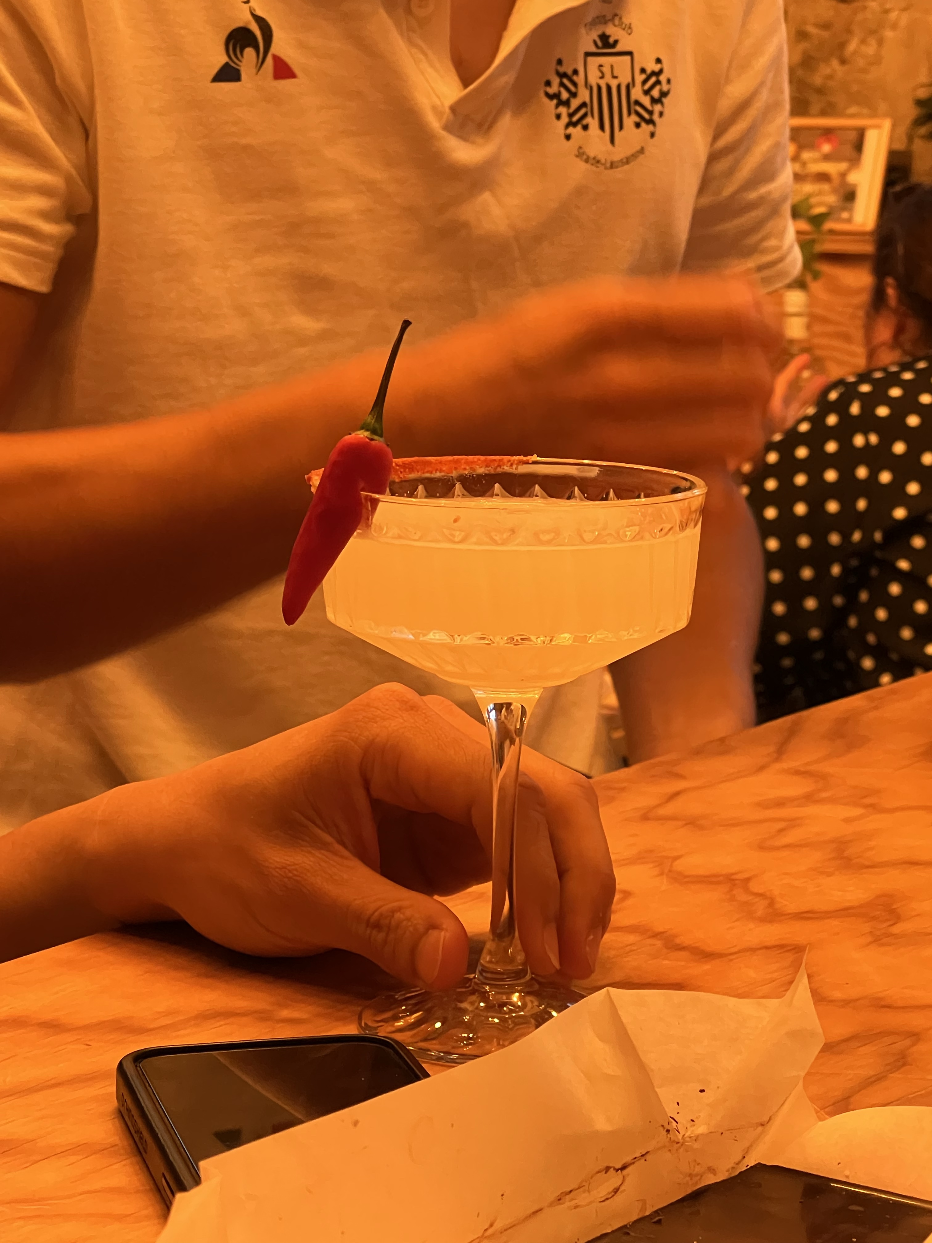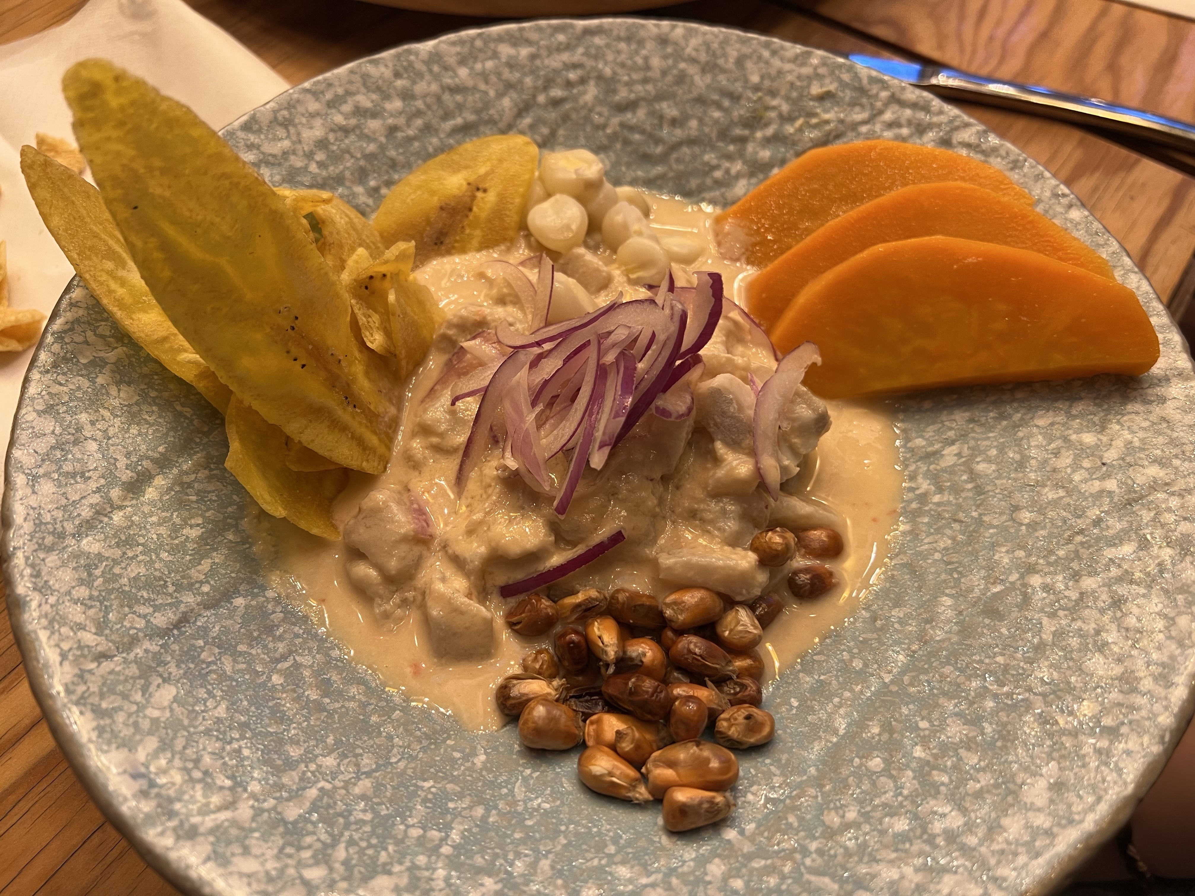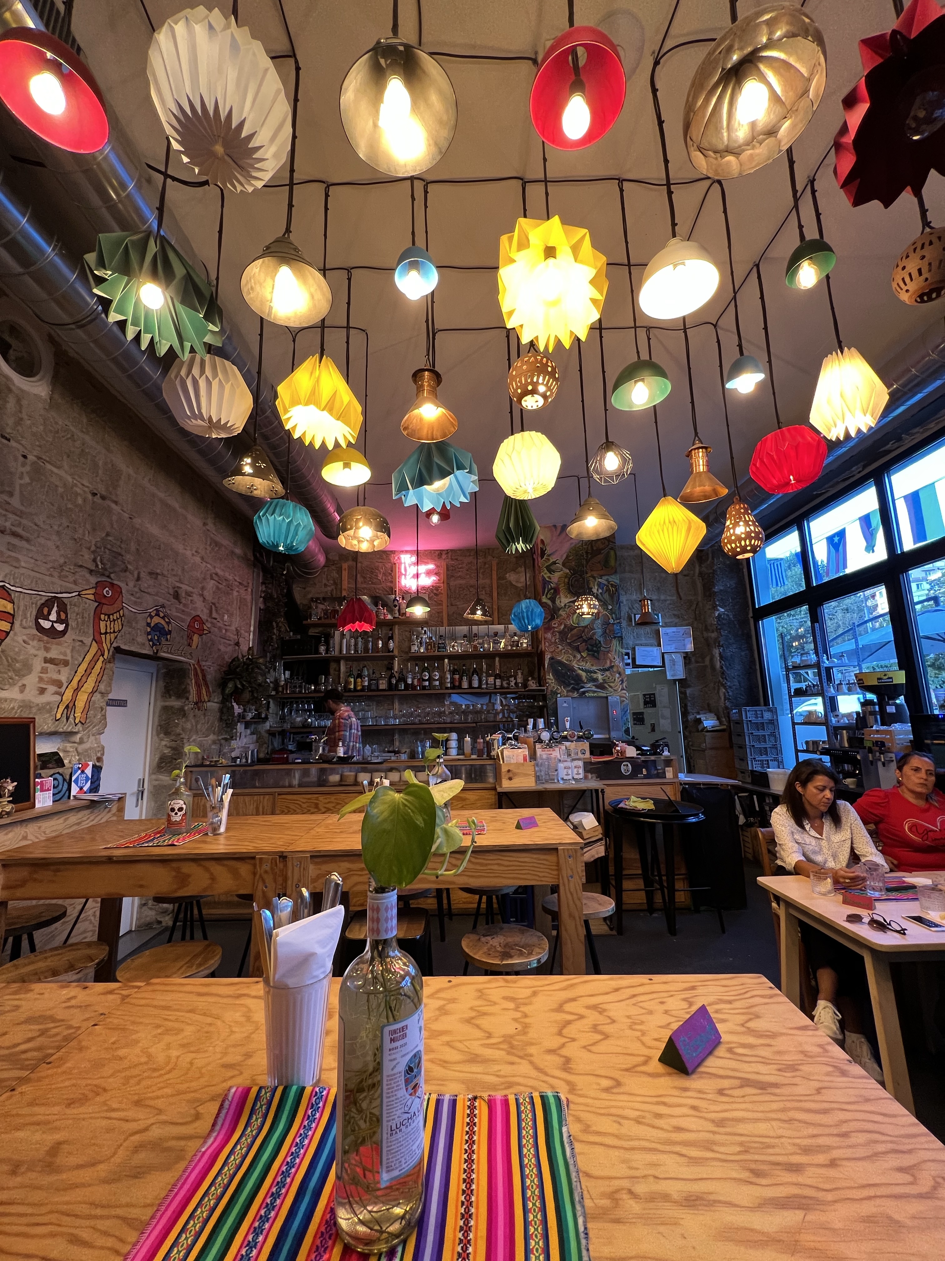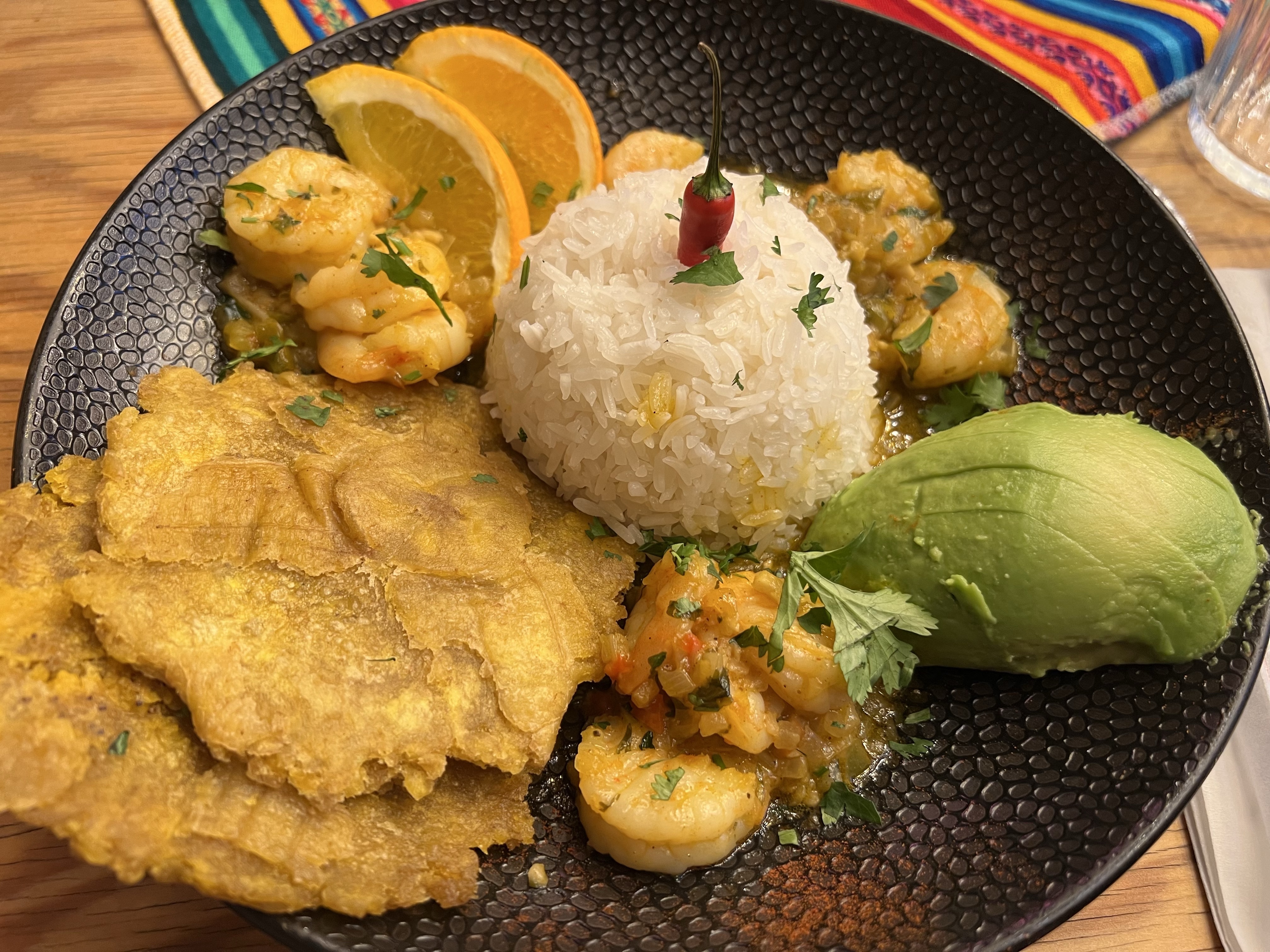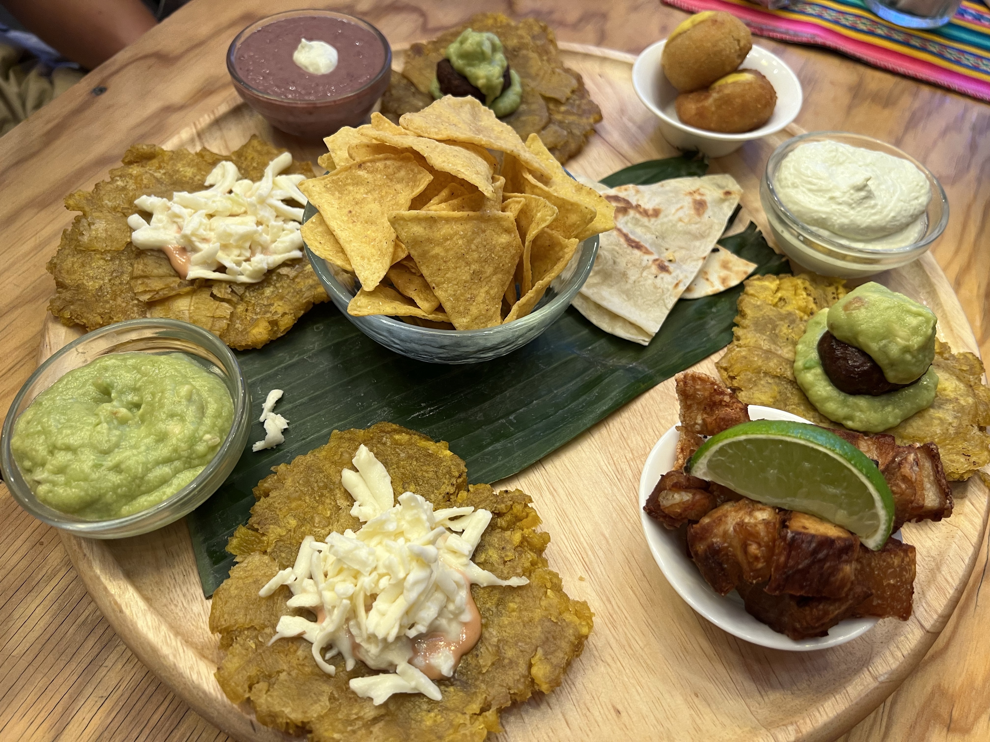 晚上要跟台灣人在洛桑吃飯,看起來大概有二十個人要來,非常驚人。我們記錯時間,提早了半小時到,餐廳已經預留了兩個大桌給我們,拿了菜單酒單看半天還是霧煞煞,這時大家陸陸續續出現,就偷偷拿出台灣帶來的玉蜀黍餅乾分食(也是符合中美洲風情)。菜單和酒單還好有救生員教練解惑,基本上是中南美混合的菜單,招牌是南美酸魚(用酸讓生魚蛋白質變性)。茹茹點了招牌菜,好吃是好吃,但又冷又酸實在沒辦法當主食吃完;我基於昨天吃到好吃的蝦子,就選了一道類似蒜頭蝦的菜,果然是好吃的安全牌,還附上酪梨和香蕉餅作配菜。我們還點了一杯椰子加鳳梨的調酒,像是東南亞風味的果汁;很多人點了招牌調酒,是帶煙燻味的調酒,邊緣有一圈辣椒粉,有些人覺得讚有些人覺得怪,還有人一拿到就整杯打翻,店員除了驚訝外也沒多做表示,可憐哪。