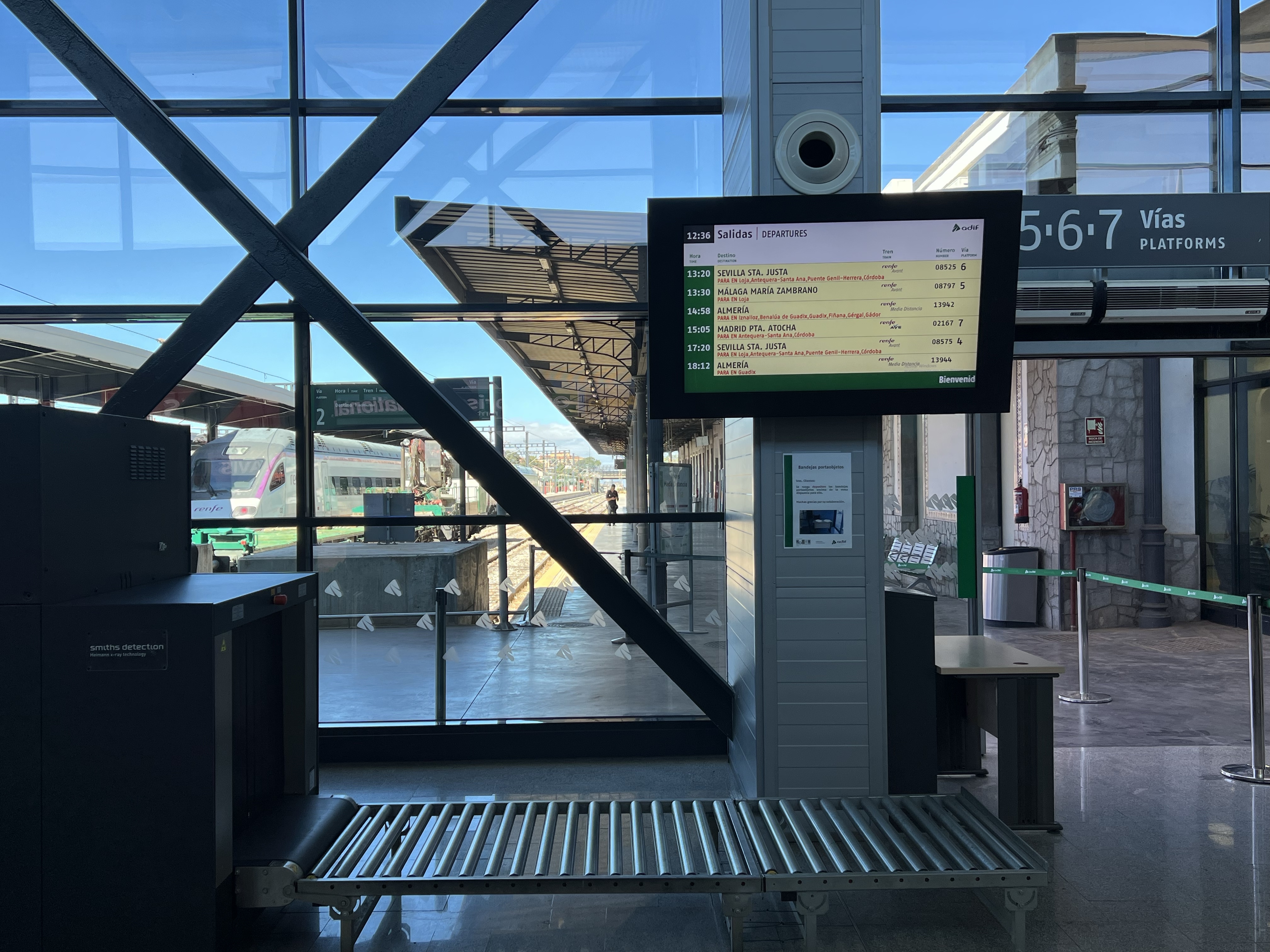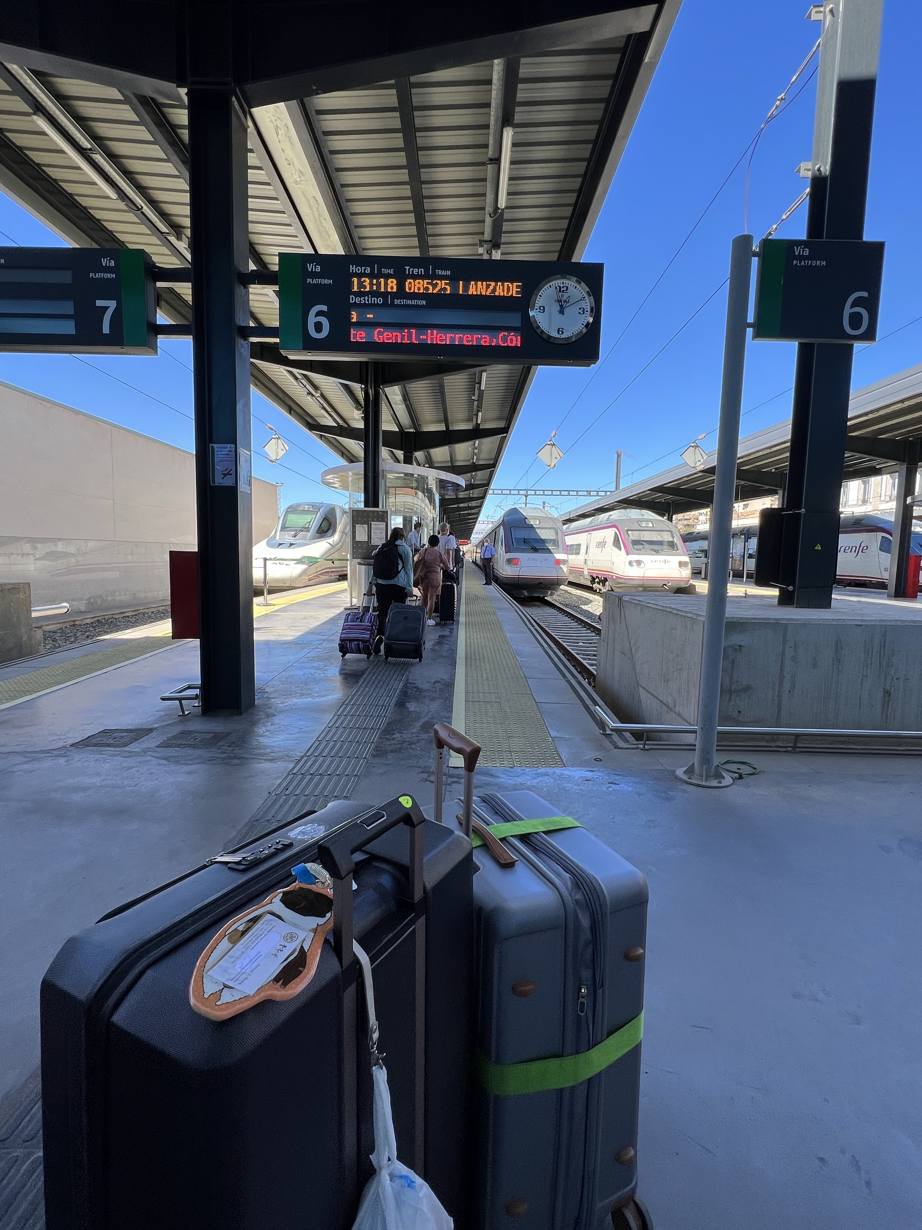 到車站後發現已經有一堆人在排隊了,看來我們是下午的第一班車,要等安檢人員中午吃完飯回來才會開門。總算在開車前三十分鐘隊伍開始前進,安檢還算快速,一下就上了車。這次坐的方向是順向,車子也沒上次擠和吵雜,相對舒適不少;但車子開到哥多華後,再發車就變成反著坐了,我其實沒什麼感覺(不如說我還蠻喜歡反著坐的),但茹茹很慘,馬上頭暈,還好只剩一個小時車程。