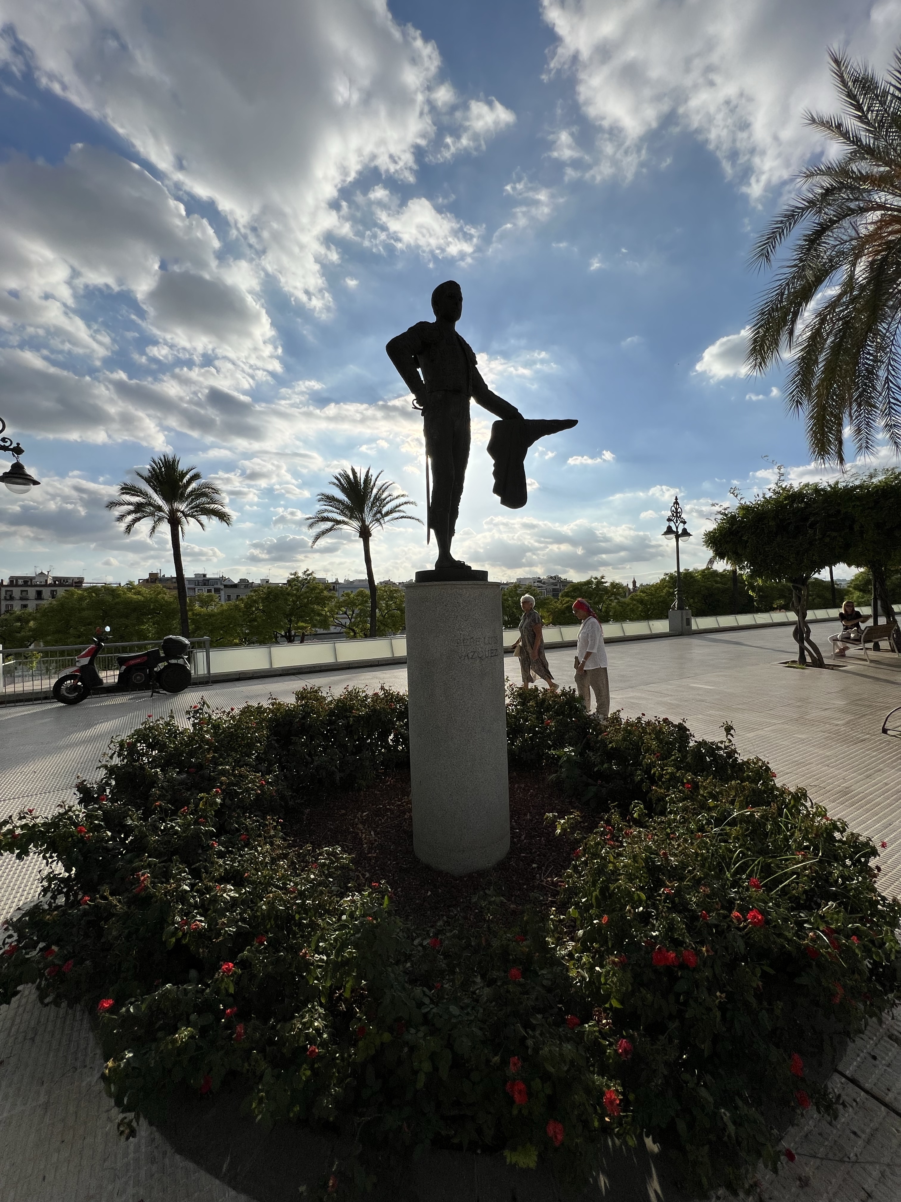 飯後往市中心的方向走,晚上十點路上還是不少人,一群年輕人提著大包小包的pizza看來要去開趴。走到塞維亞的都市陽傘,是二十世紀某次的世博會建的木造裝置藝術,佔地超大,白天可以買票上屋頂觀景,晚上傘頂會不斷變換顏色,底下大柱子的弧度邊緣有很多人在練滑板。塞維亞的晚風也不是太涼,和馬德里或格拉納達差不多,薄外套晚上也用不太到。散散步消化一下胃裡的食物就回去了。
