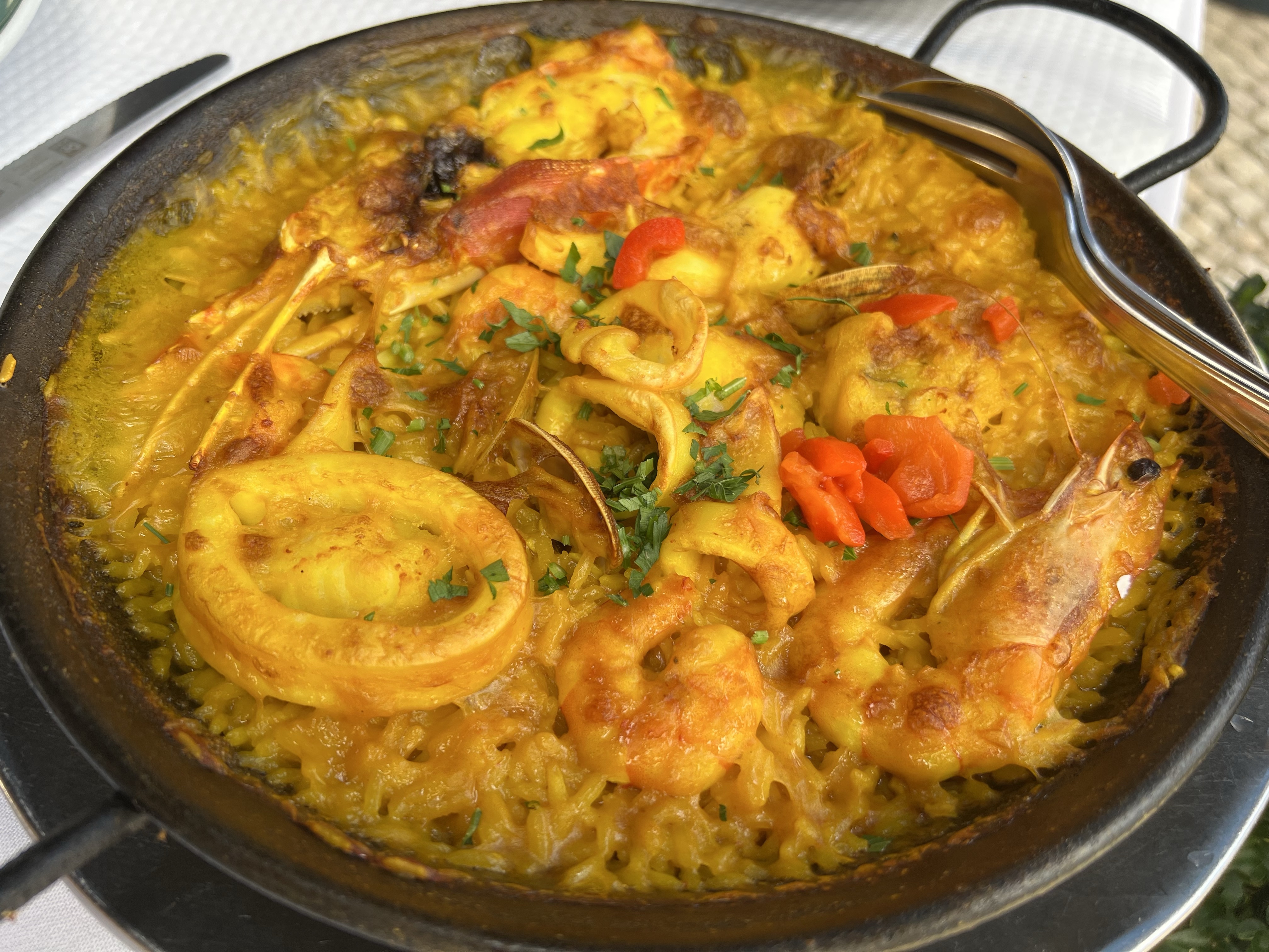 回到旅館跟茹茹一起出門,決定先在樓下的餐廳吃午餐,我們點了一份葡式的海鮮飯(海鮮粥)和一份西班牙海鮮飯(烤飯),等待上菜的時間我正好去拿烘好的衣服回來。葡式海鮮飯真的就像海鮮粥,海鮮豐富,鮮味十足,配上香菜真是美味!西班牙海鮮飯則是這間餐廳修改的版本,飯粒是我們喜歡的稍軟狀態,調味也十分美味,雖然我們點了兩種飯類實在是吃太飽,我還是把海鮮飯全吃光了。