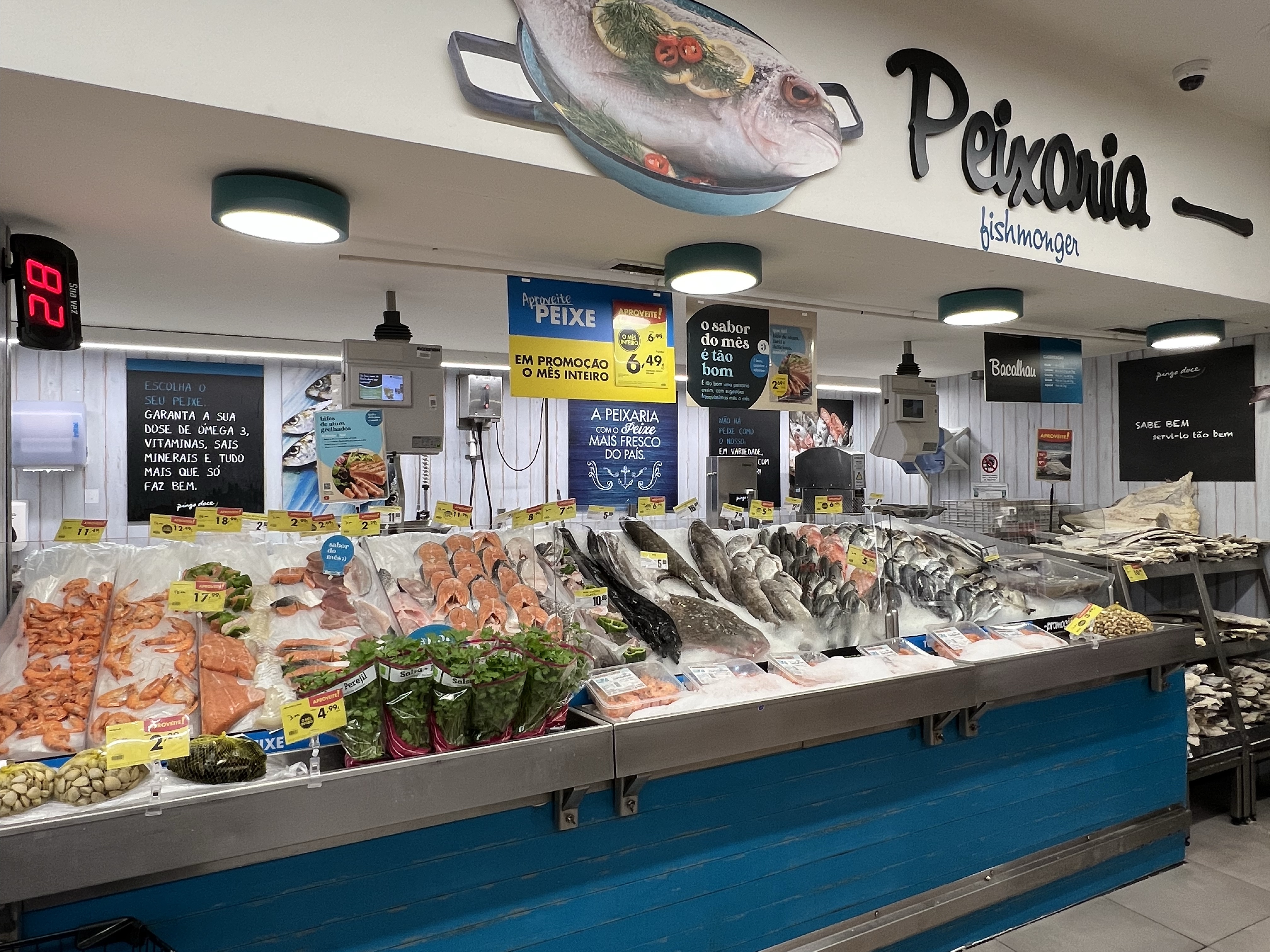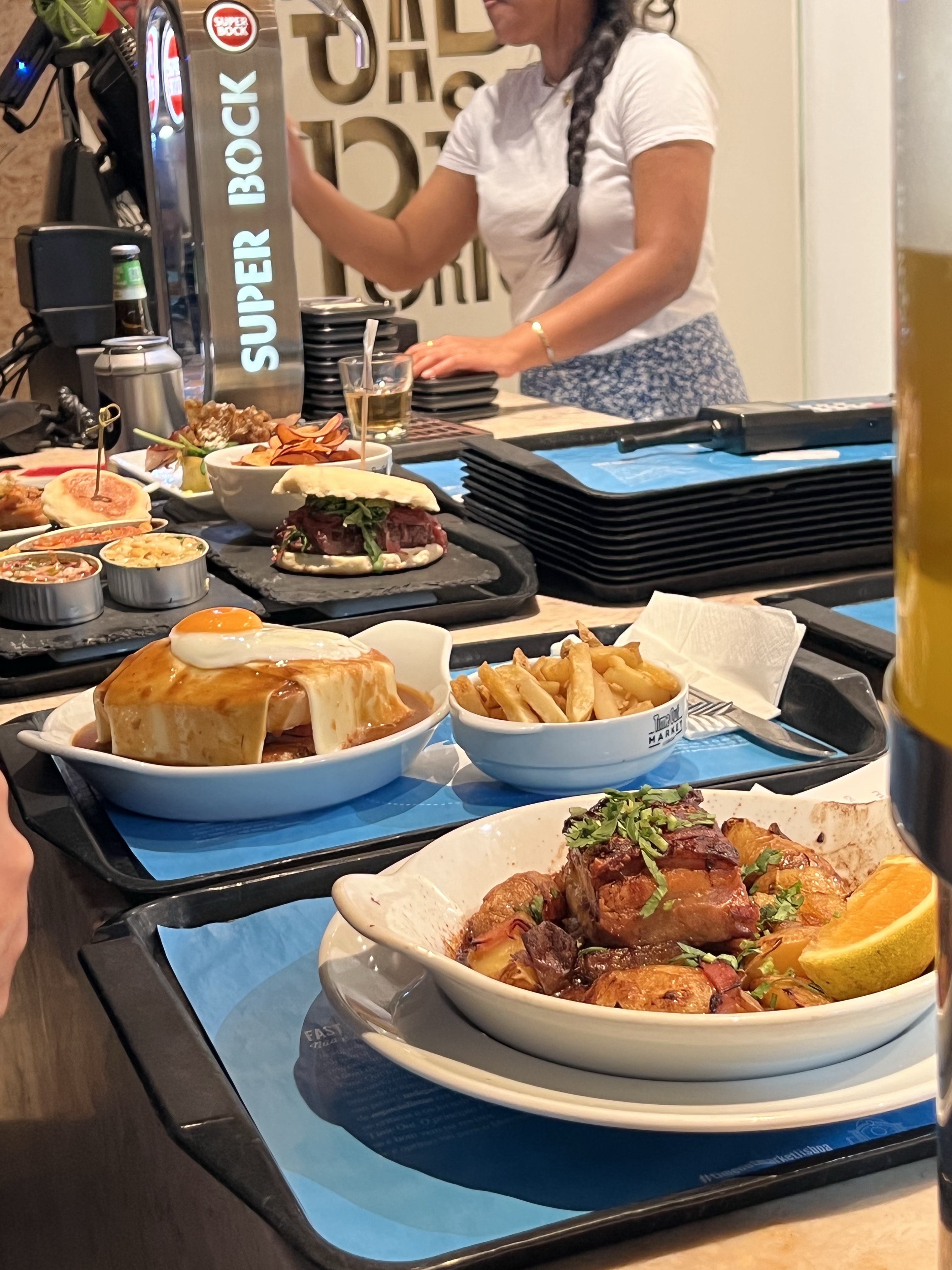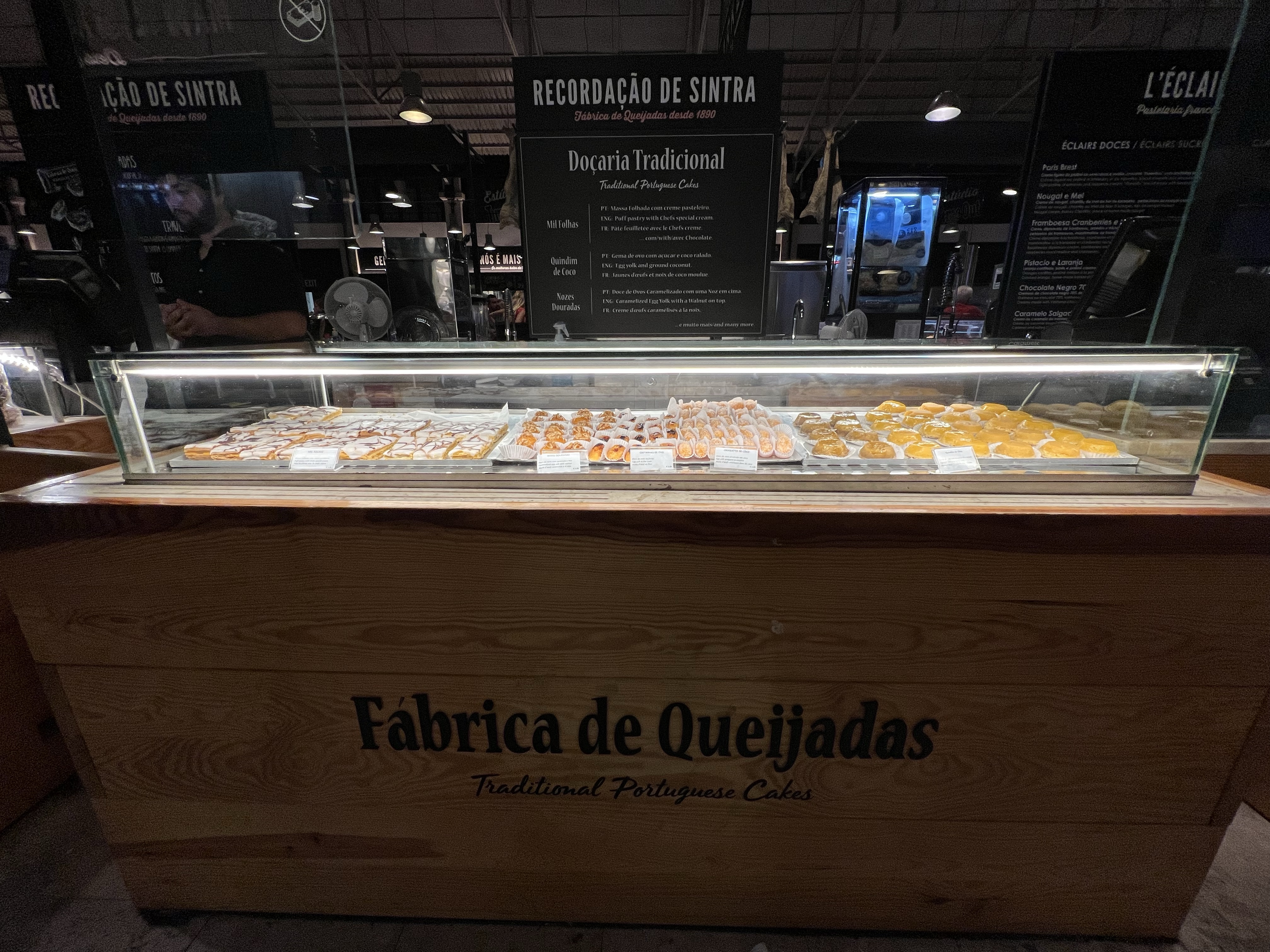 TimeOut美食廣場是一個類似上引水產的地方,外圍是生鮮市場,在我們到的時候已經通通關門了;中間美食廣場的部分則是人聲鼎沸,一整圈大概有五六十家以上的餐廳,有點像是百貨公司美食街,點完菜自己找中間的位子坐,等手上的發信器逼逼叫去領餐。餐廳的選擇也很多元,有當地的現烤海鮮、生切火腿、生蠔、tapas小點、壽司、pizza,我居然還看到刈包和魯三層肉!甜食的部分則有蛋撻、傳統糕點、冰淇淋名店等,中間還有賣調酒啤酒果汁等等的中島。