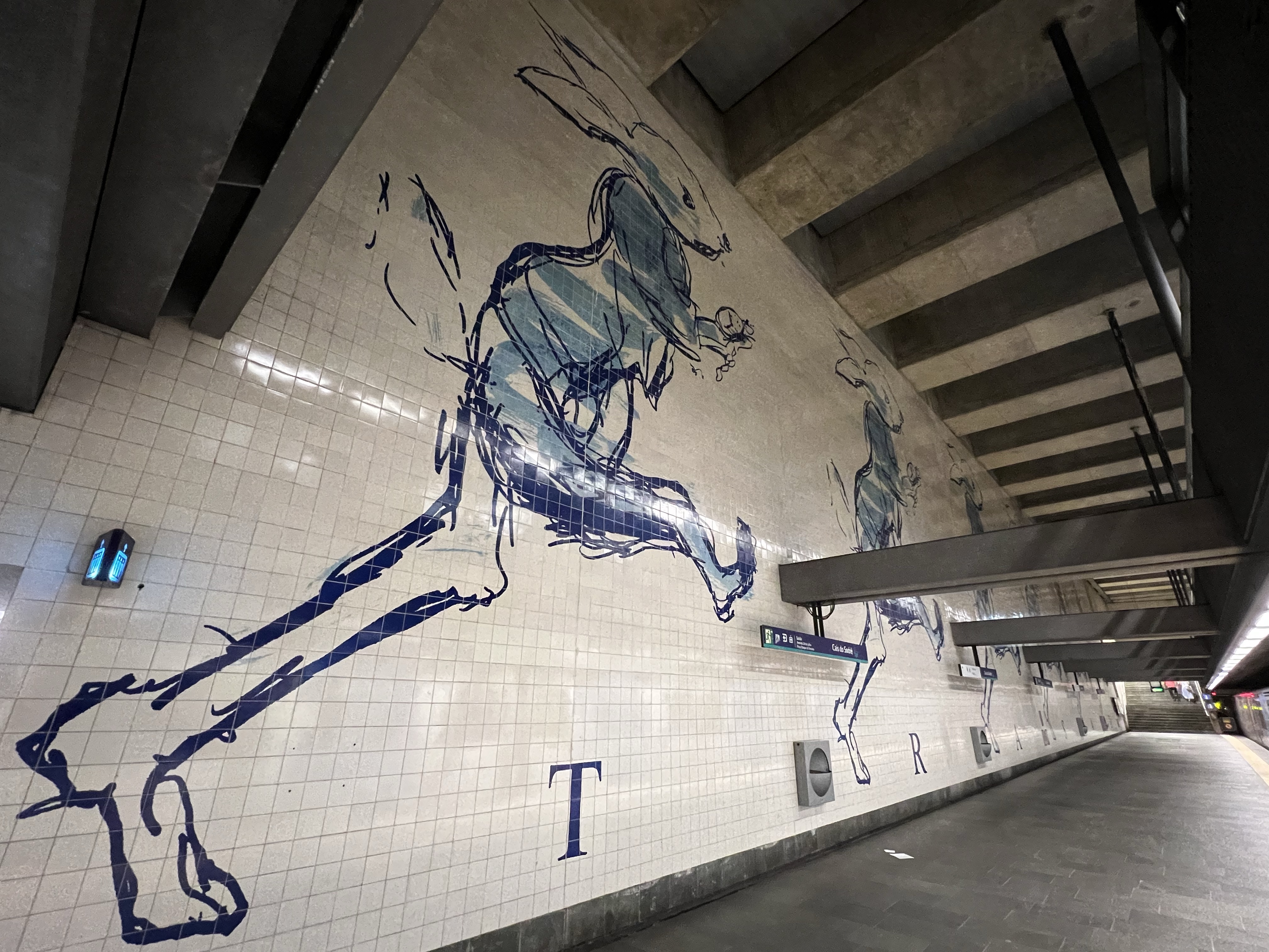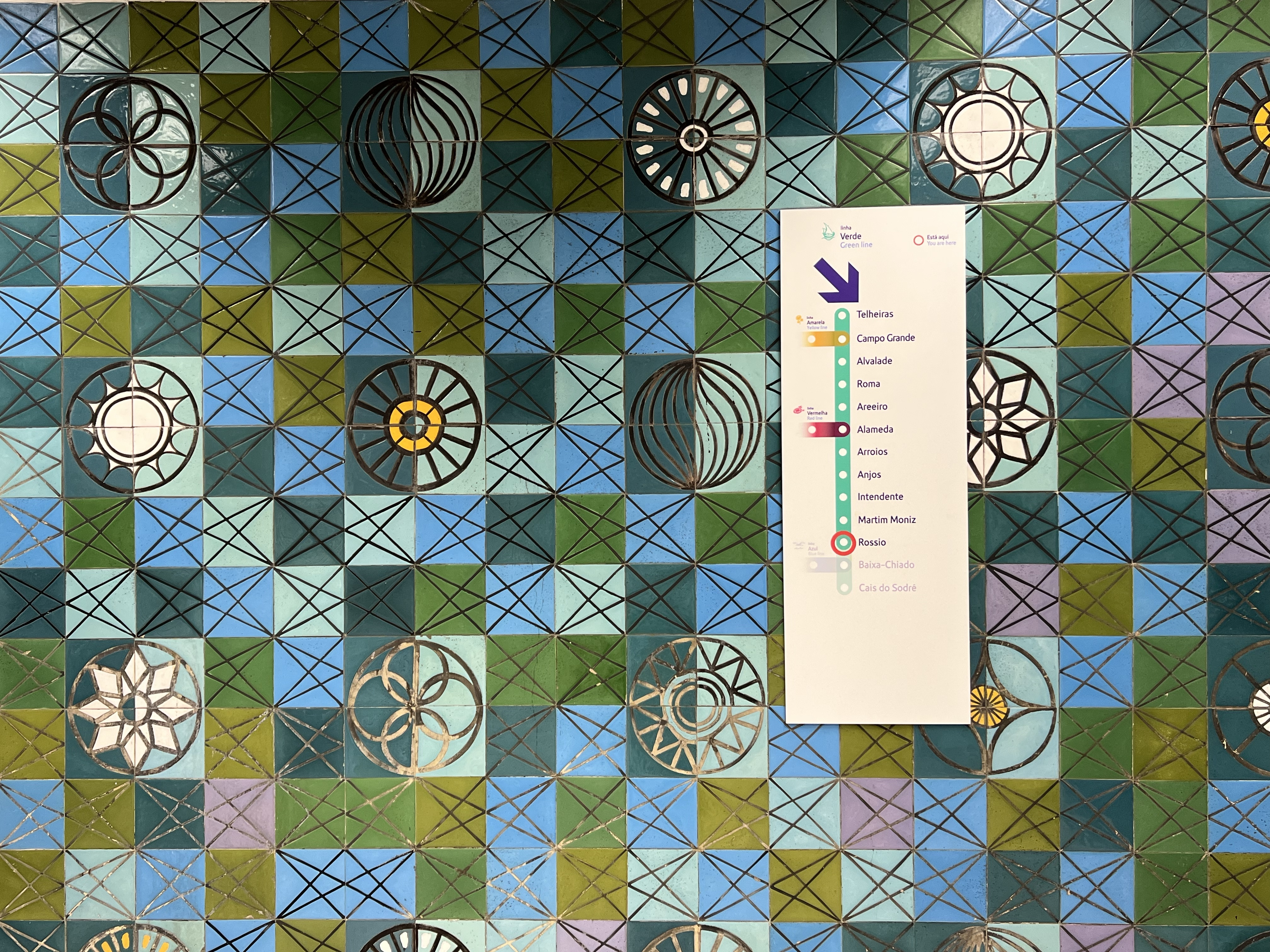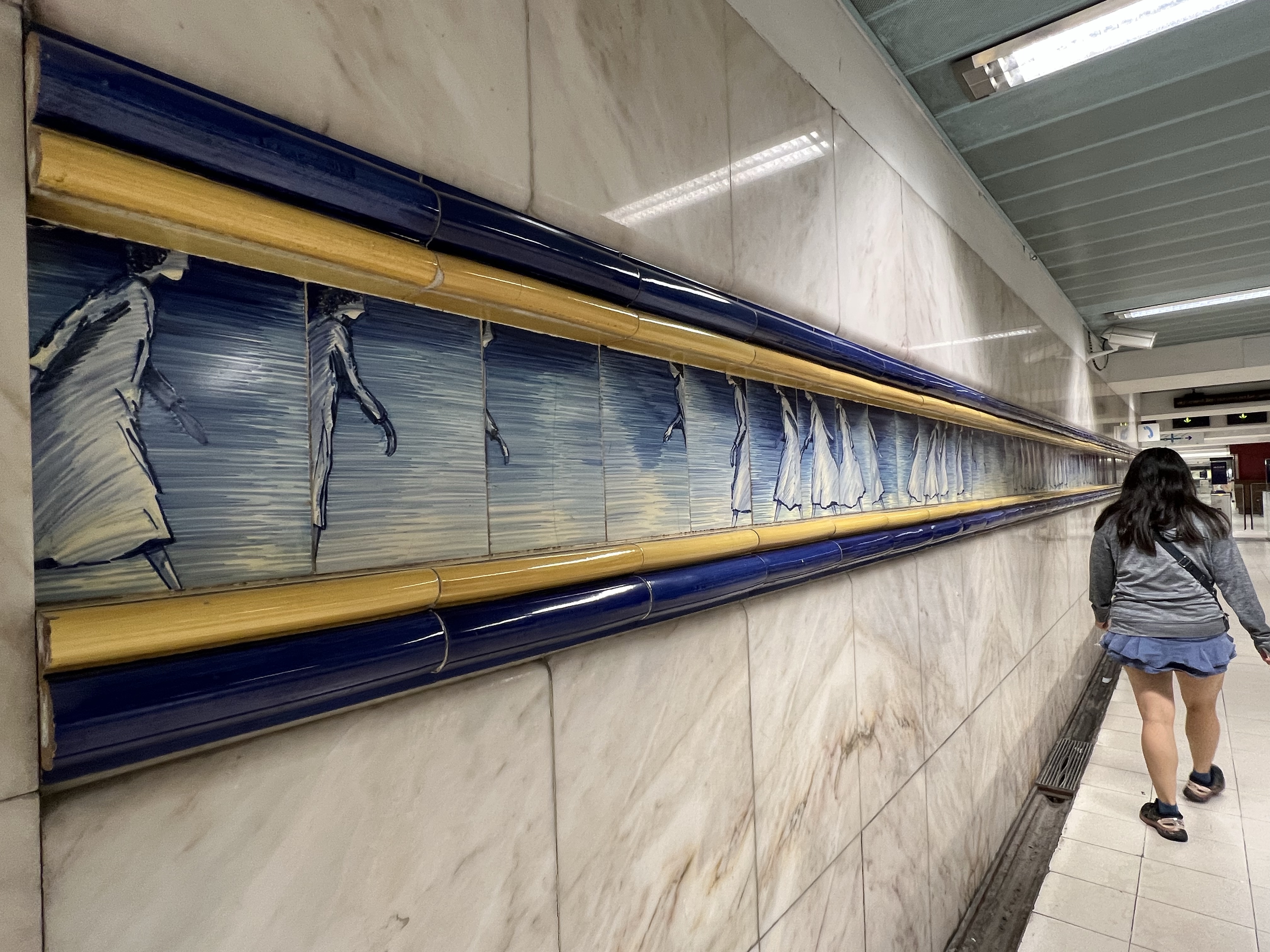 走到Rossio搭地鐵,只要搭兩站就到港邊了,地鐵站真是每一站都有驚喜,有人在走路的動畫圖和超級大的兔子在跑步,里斯本的磁磚藝術是我覺得這城市最大的亮點。