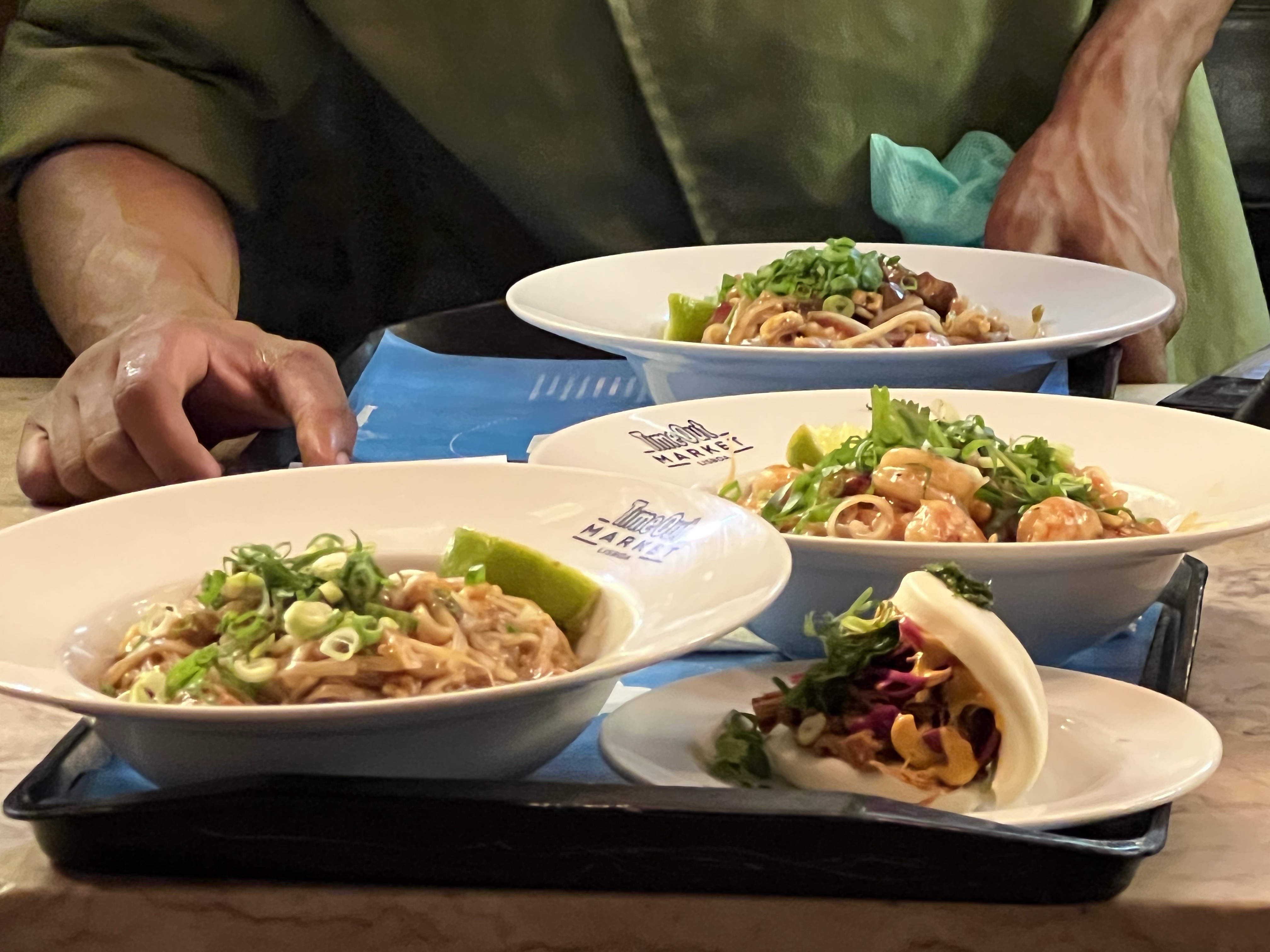 之後去超市買個水果,發現居然有香水椰子,買了兩顆回去開;還買了不管去哪裡都要買的現榨柳橙汁。回旅館喝了還算不錯的椰子之後就繼續發懶,到太陽下山,肚子覺得有點餓了,才決定要出門去港邊的美食廣場找東西吃。