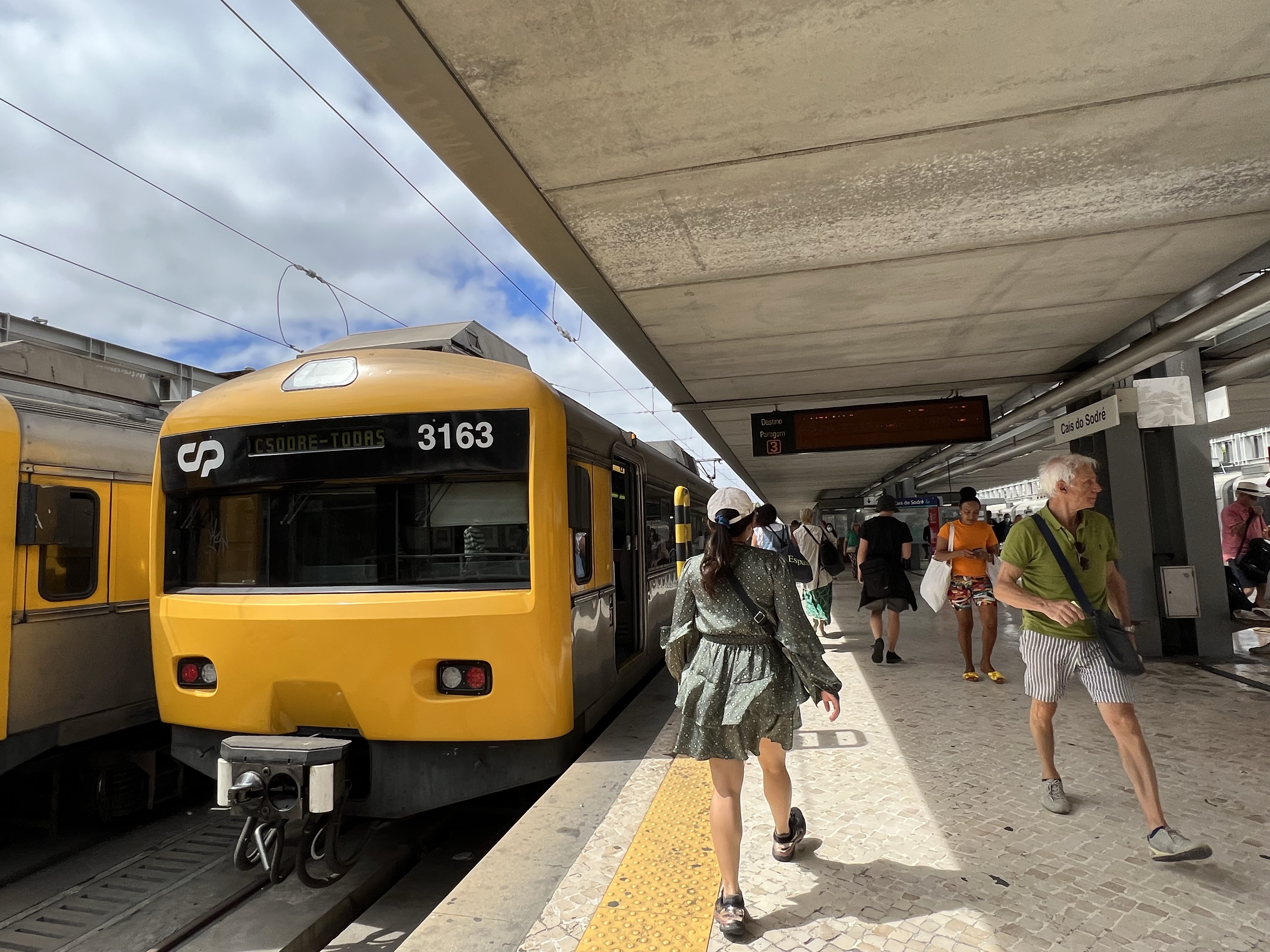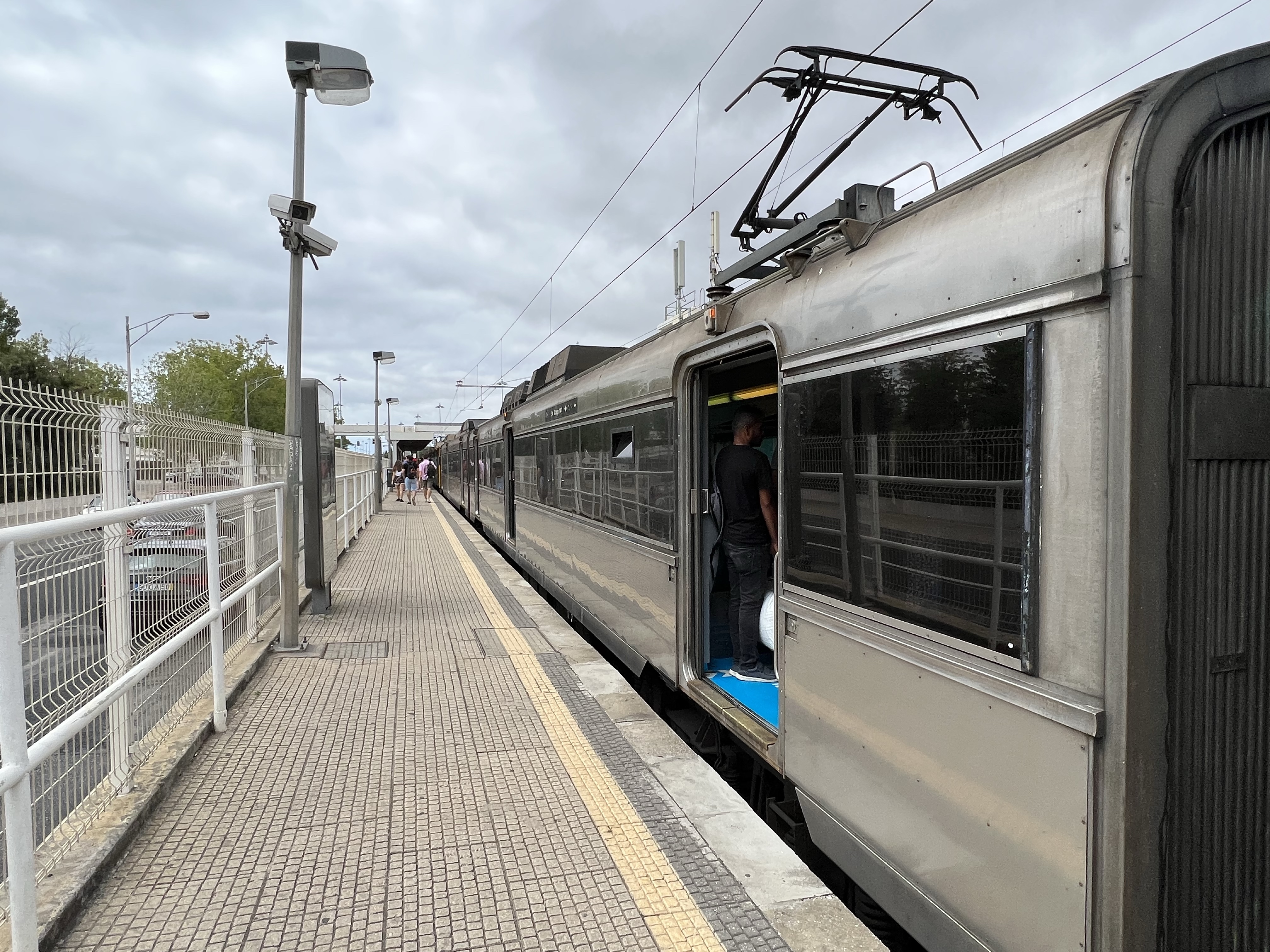 地鐵搭到港邊的終點站,上到地面後再轉乘隔壁的鐵路,因為我們有Interrail pass,理論上葡萄牙也可以用,但車站根本沒有掃QR code的閘門,只好去問問售票櫃檯。櫃檯小姐看了一下,就通知同事來幫我們開人工閘門。進站是沒問題了,但回來時如果他們已經下班了怎麼辦?售票小姐一臉無奈的說「看看到時候有沒有人能幫我們開門囉」,看來我們只能且戰且走了。