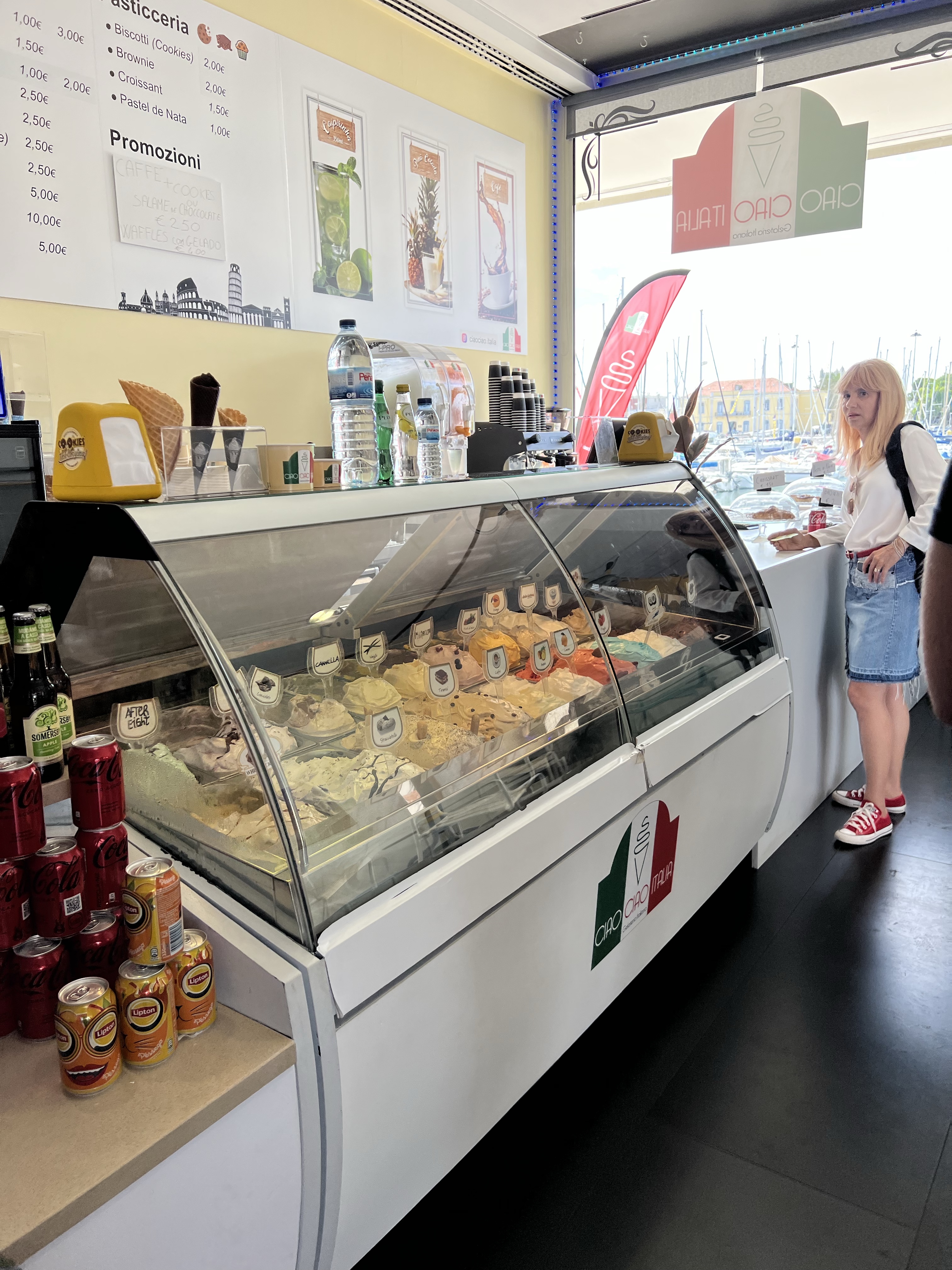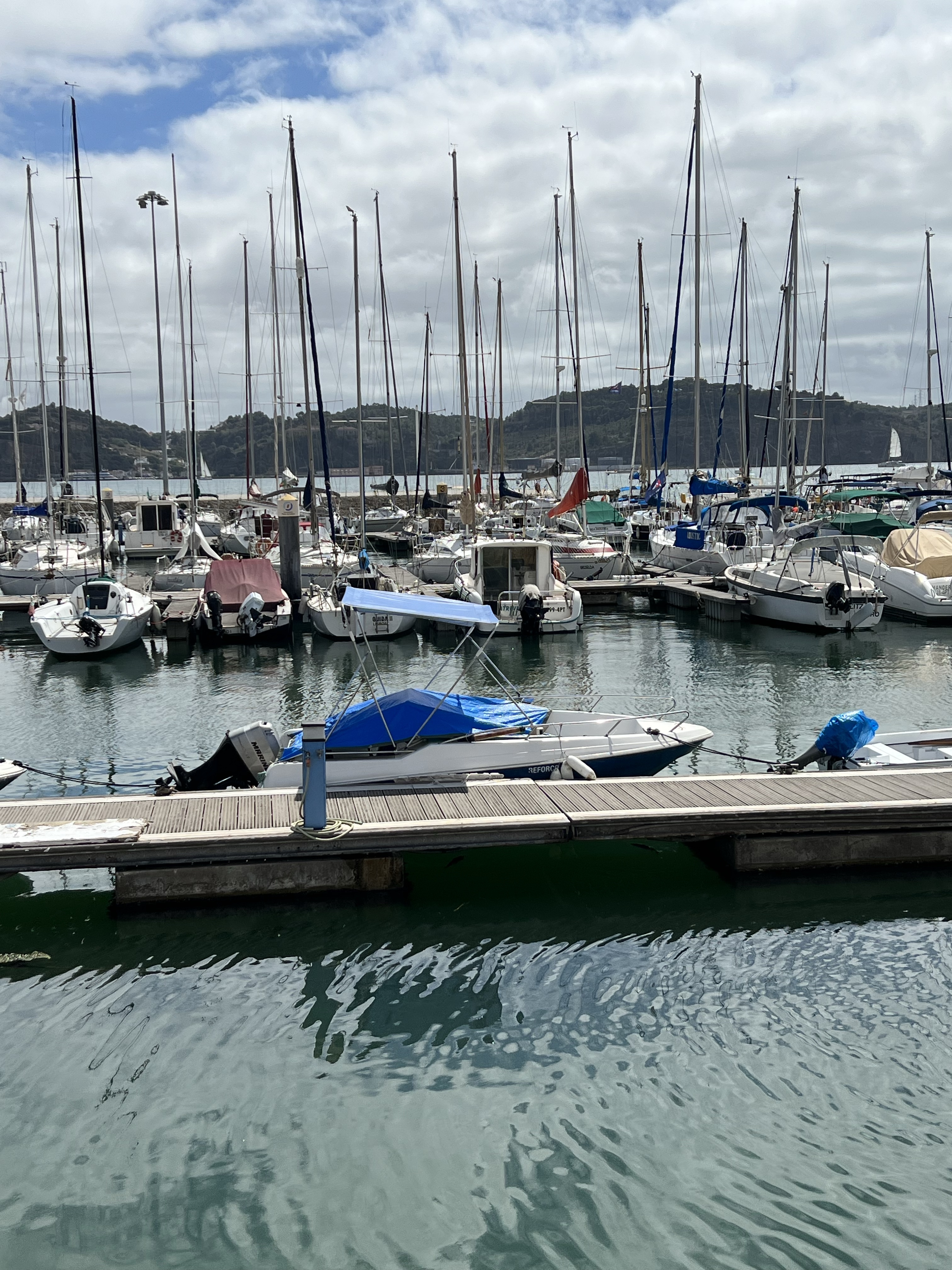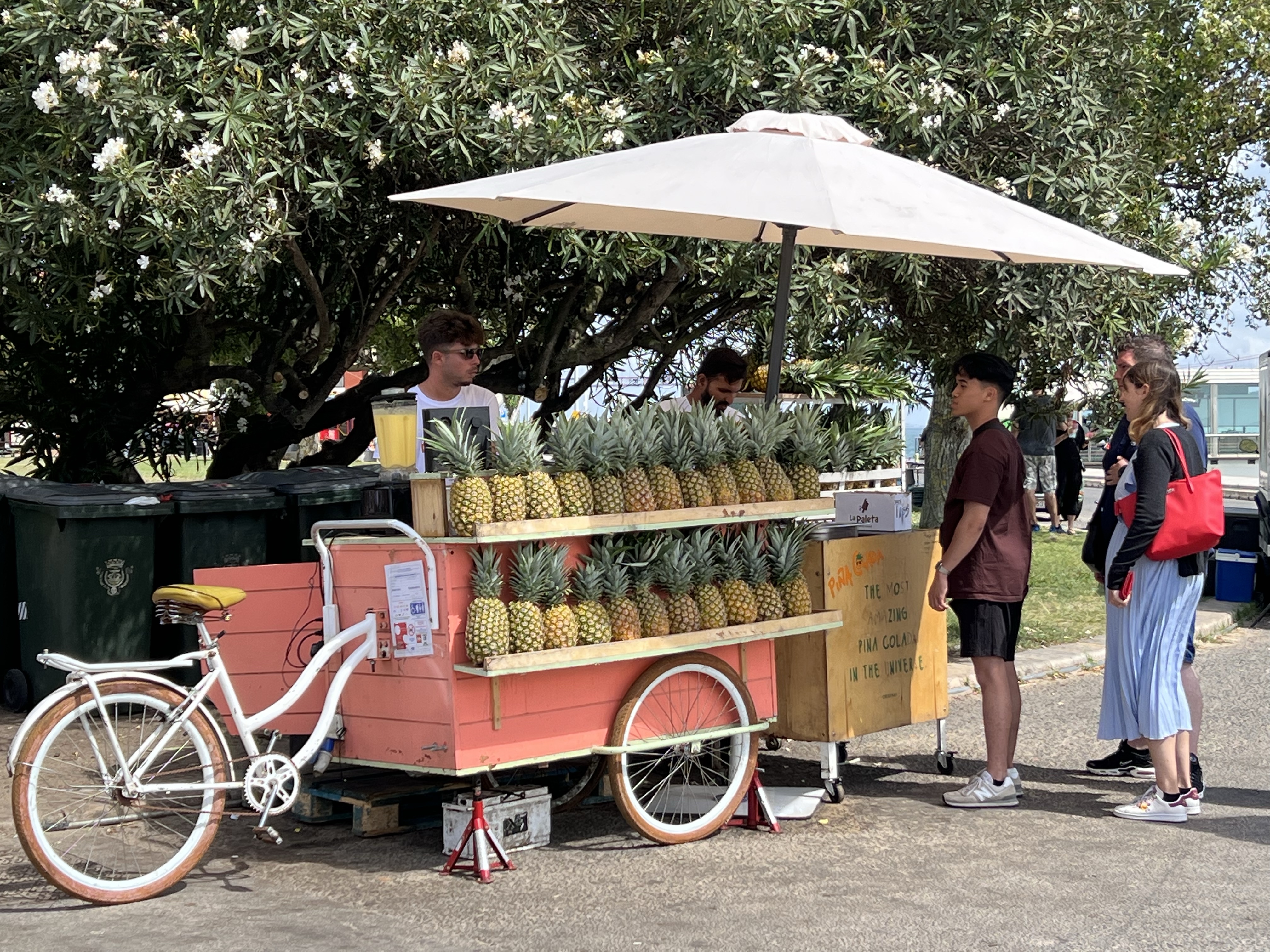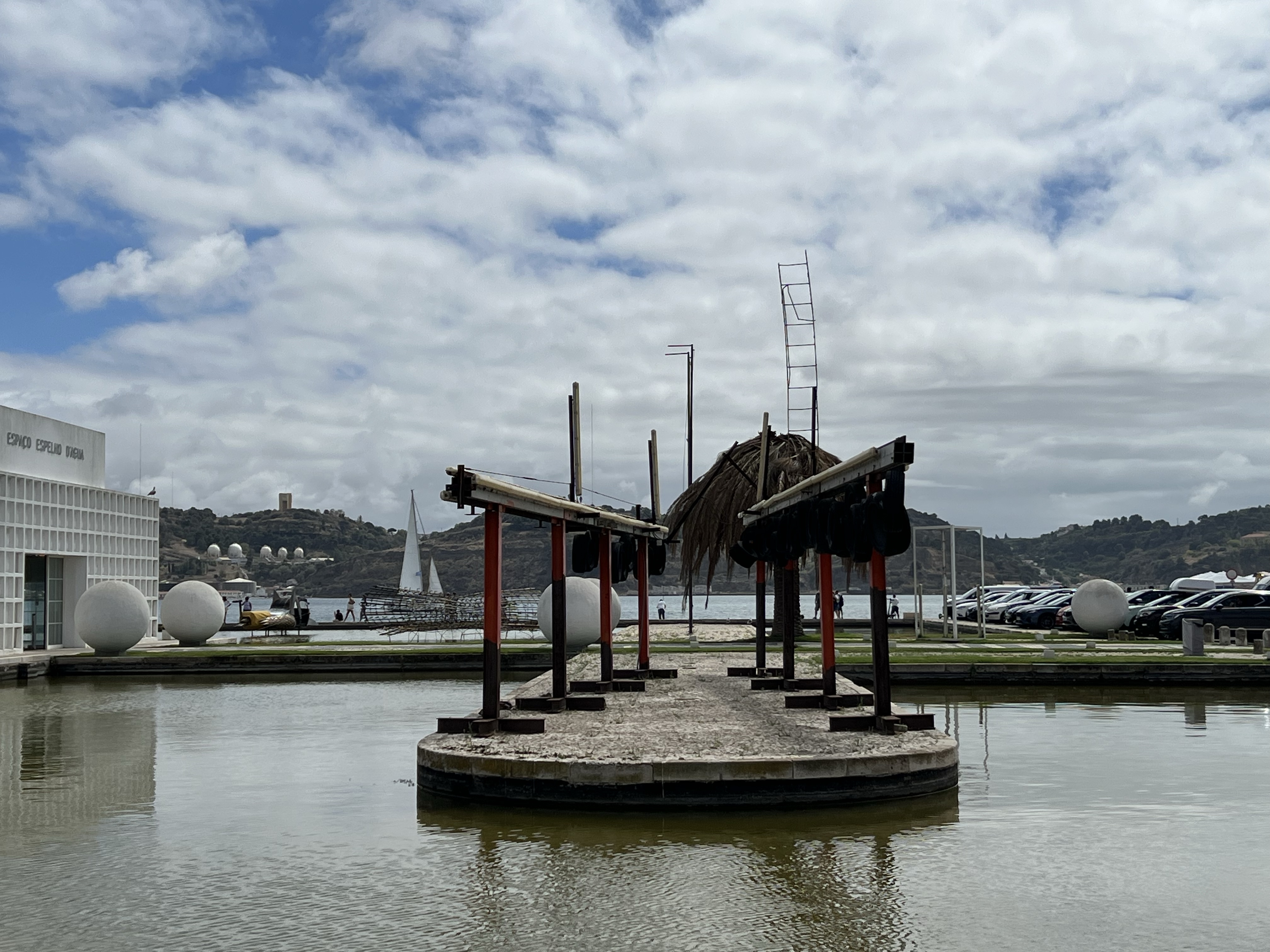 再繼續沿著海邊走,途中經過一間博物館,就在底下的冰淇淋店買了冰,吃了再上。港邊的帆船停泊區裡有很多魚,還有水母漂來漂去。貝倫塔前有一座公園,有不少樹蔭可以乘涼,還有畫家在賣畫。最靠近貝倫塔處有一攤賣鳳梨汁的,是拿整顆鳳梨挖空裝現打的鳳梨肉,生意非常好,不過我覺得喝純鳳梨汁應該不太解渴,沒什麼興趣。