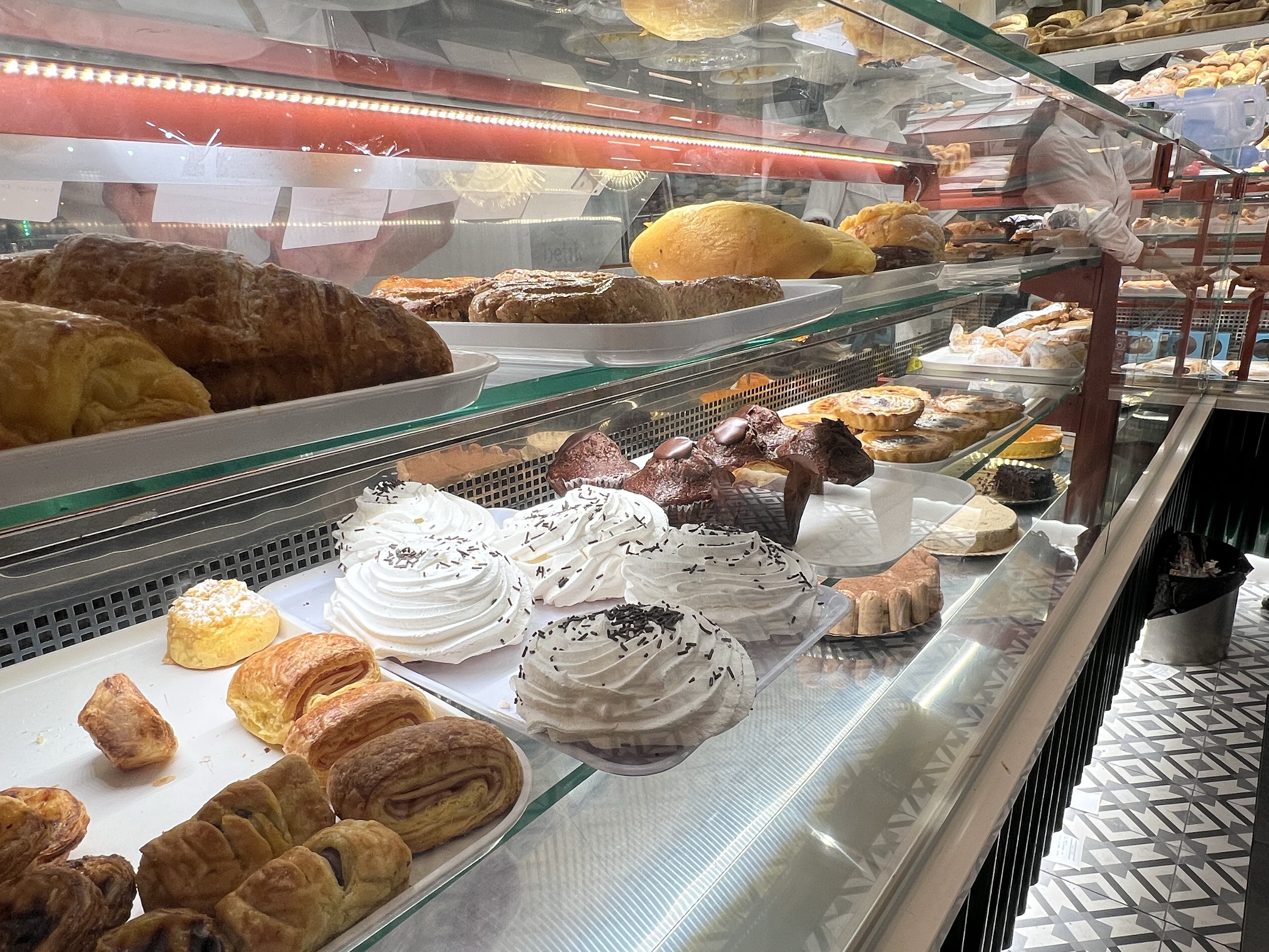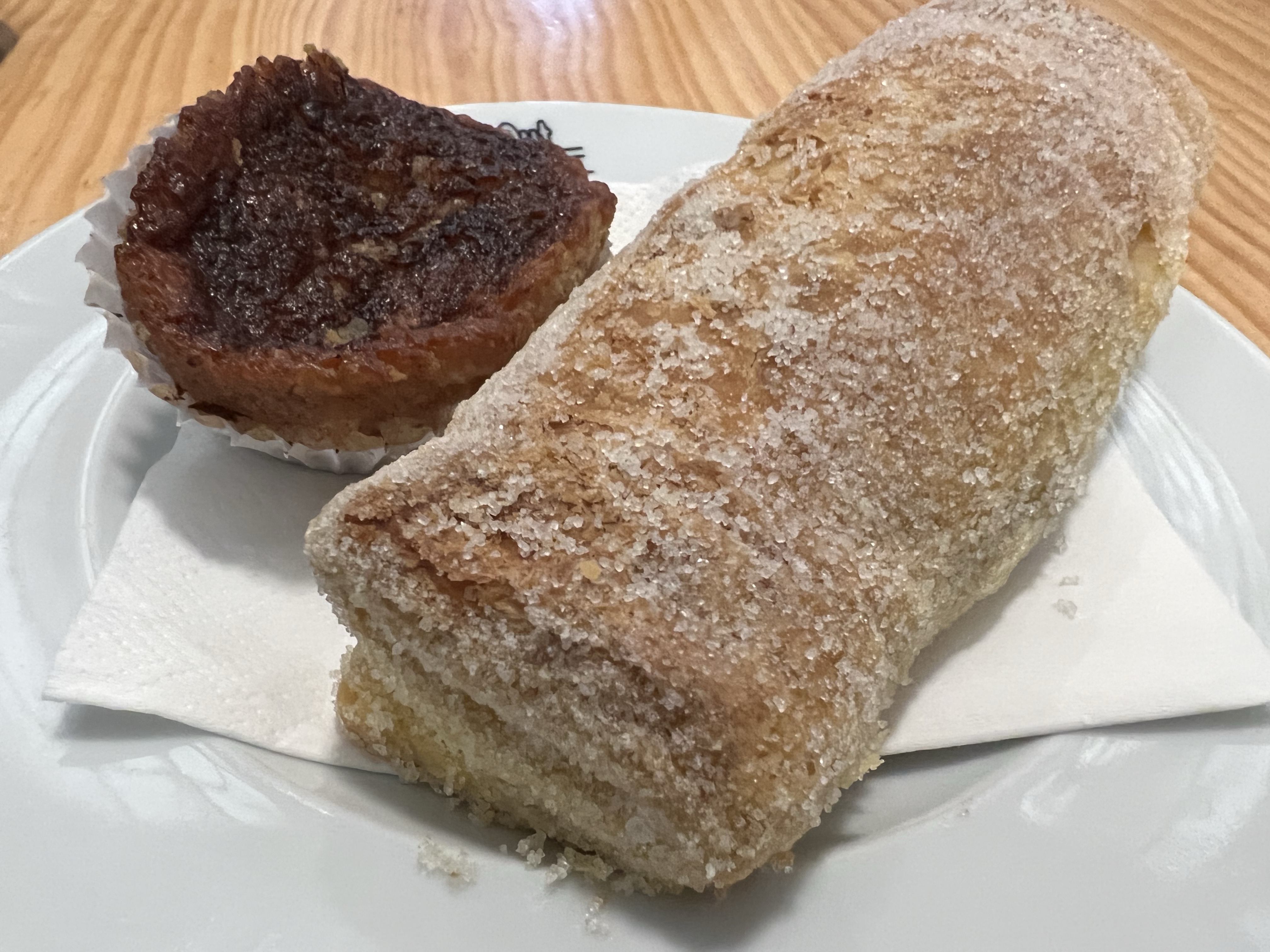 繼續往下走就到我們一開始出發的廣場了,不放棄的我在廣場旁的甜點店又買了幾樣甜點和一個大可頌,結果吃起來依然單調,酥皮儘管優秀,內餡除了清甜外也說不出有什麼不同;可頌外層不錯,裡面居然也是包了甜餡,感覺就是同樣一個味道換了不同的外觀,一天一份足矣。