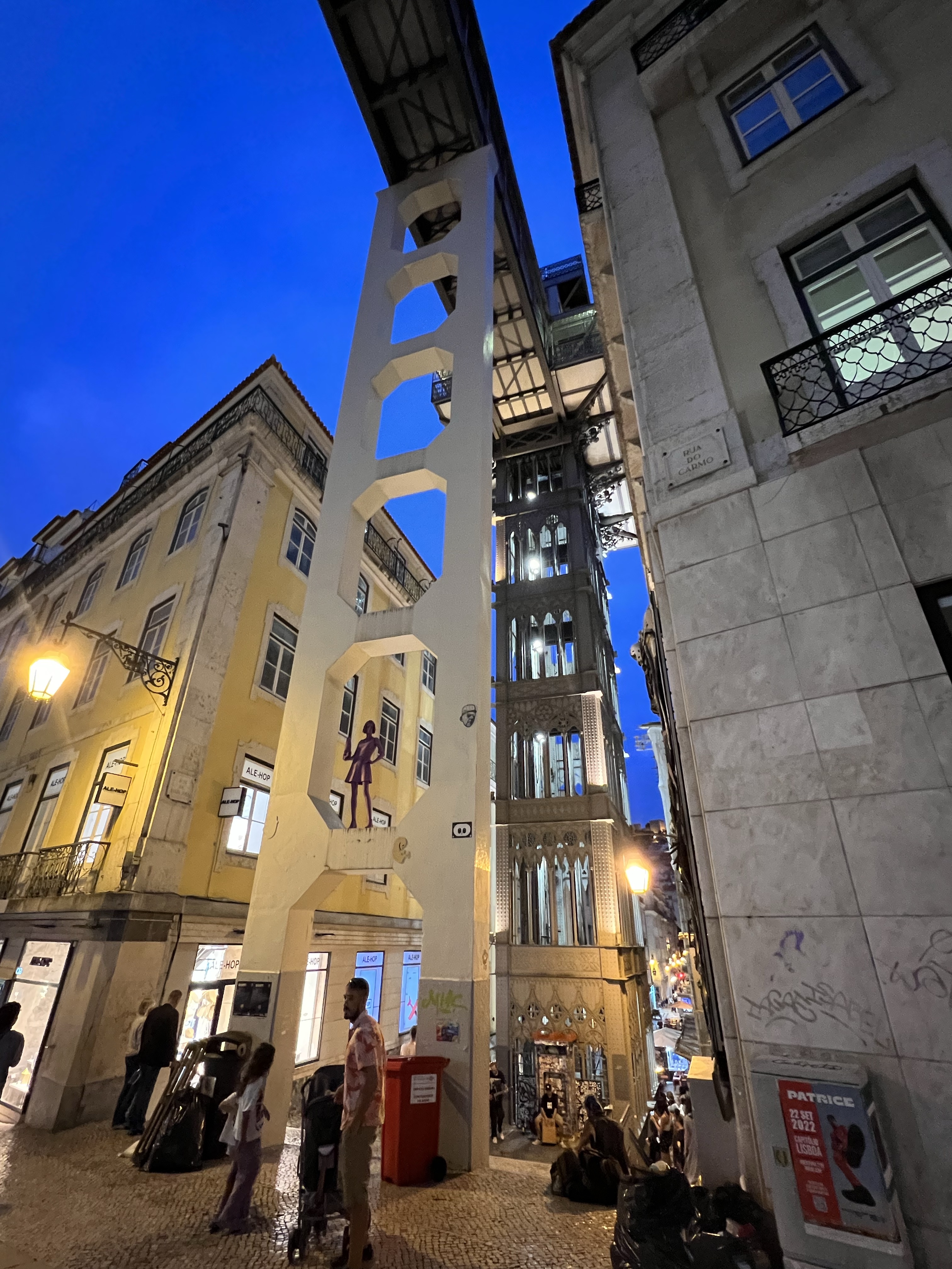 走到底端的百貨公司,隨意逛了一下,晚上八點還有百貨公司逛也是感人。接下來往下坡的方向走,到一半就看到我心心念念的聖胡斯塔升降機,就是一座約莫五層樓的電梯,走近看就覺得沒那麼特別了,倒是夜間打燈還蠻漂亮。