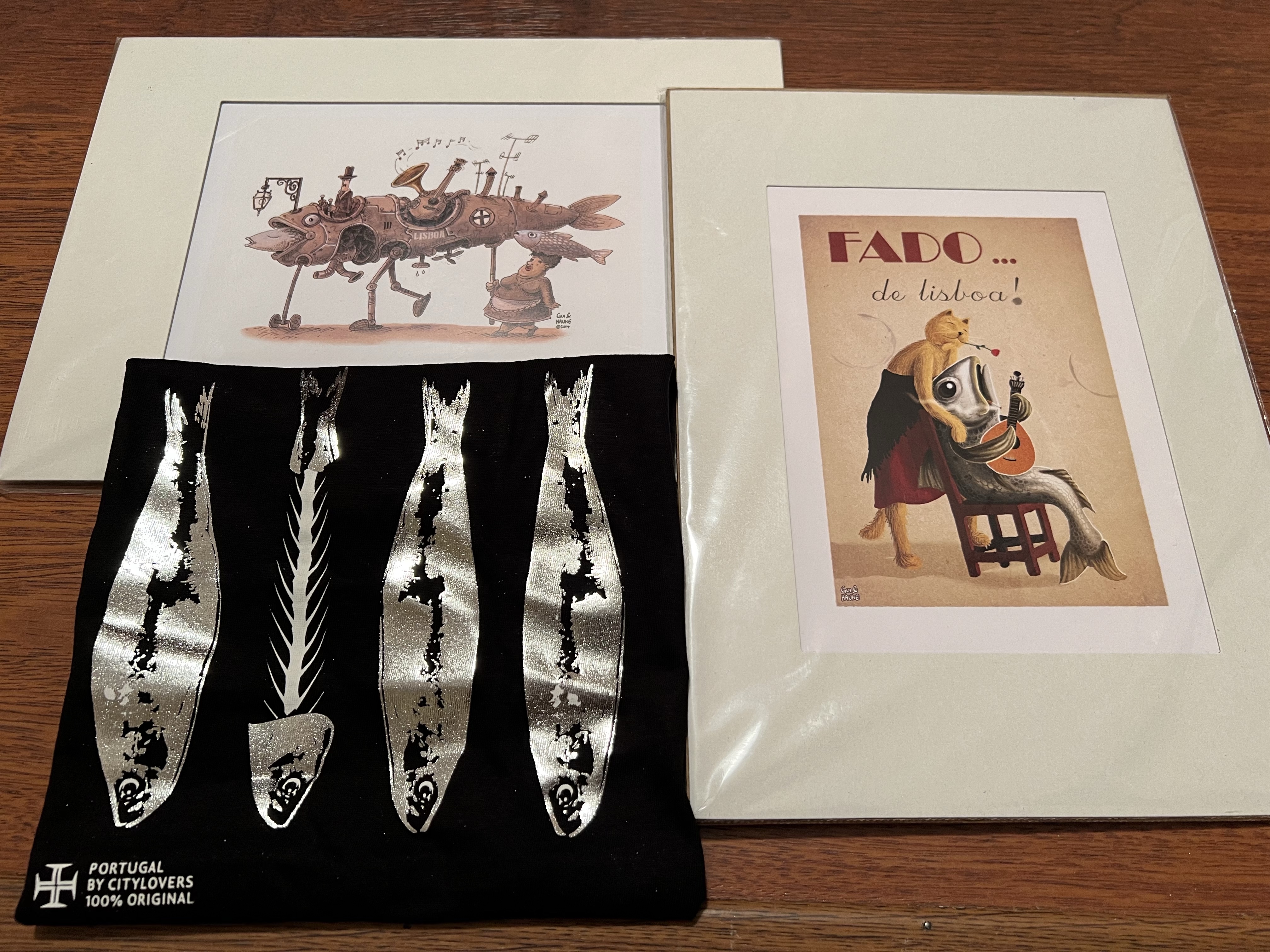 走到Baixa的大教堂旁,有間羊毛店,除了衣服配件外還有羊毛做的各種玩偶,實在太可愛,最後小小忍住只買了一個沙丁魚造型的鑰匙圈。對面有間老書店,門口放了一疊很簡單卻很有意境的畫,翻看了一陣決定要買一幅有沙丁魚和黃色電車的畫,回國讓新家充滿藝術氣息。