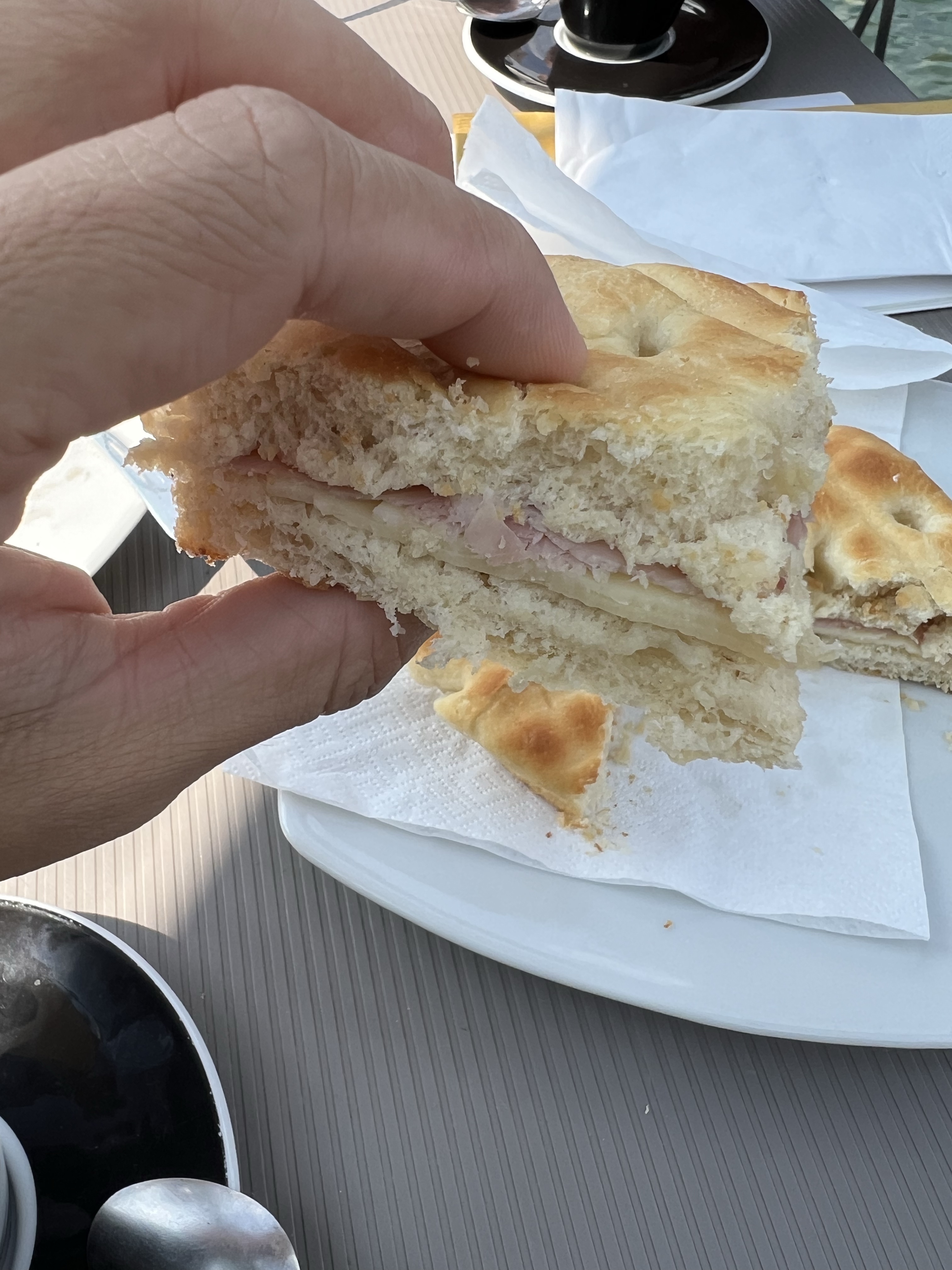 湖中的島其實就是一個迷你城鎮,有座小教堂、一些高高低低的巷弄和小店。上島後的第一件事就是找東西吃!我們在湖畔的一間簡餐糕點店就座,旁邊正好有兩隻天鵝帶著好幾隻毛茸茸的超可愛小鵝,在旁邊漂來漂去感覺在等著撿屑屑吃。我們點了一份佛卡夏火腿三明治、一塊檸檬蛋糕、和一份提拉米蘇,佛卡夏考得鬆鬆脆脆,意料之外的好吃;提拉米蘇的蛋糕體十分濕潤,和上層的cream搭得很合拍;只可惜檸檬蛋糕太乾了不好吃。