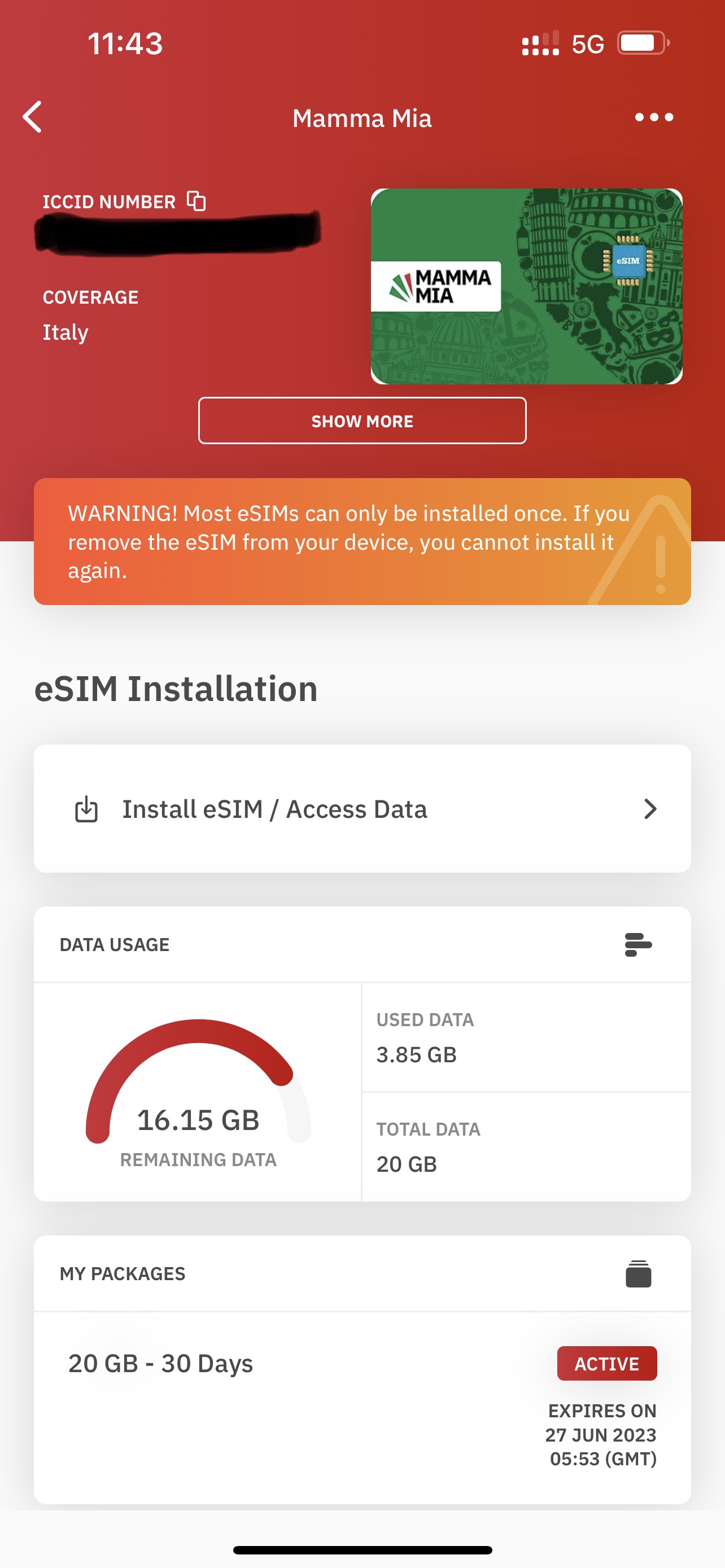 落地後打開手機訊號,在台灣就線上買好的Airalo eSIM卡果然立刻抓到訊號,馬上就有4G速度,真是有夠方便!偶爾從WINDTRE切換到Vodafone還是會小斷一下,但多半都是在各家訊號都不好的地方。這次買了20G/30天的方案,33USD略貴,但這樣的收訊品質我覺得還行,加上我的Google Fi從去年就因為太久沒有在美國使用被暫停使用,未來大概都會用這一類eSIM服務,至少不用到當地還要找地方買SIM卡了。