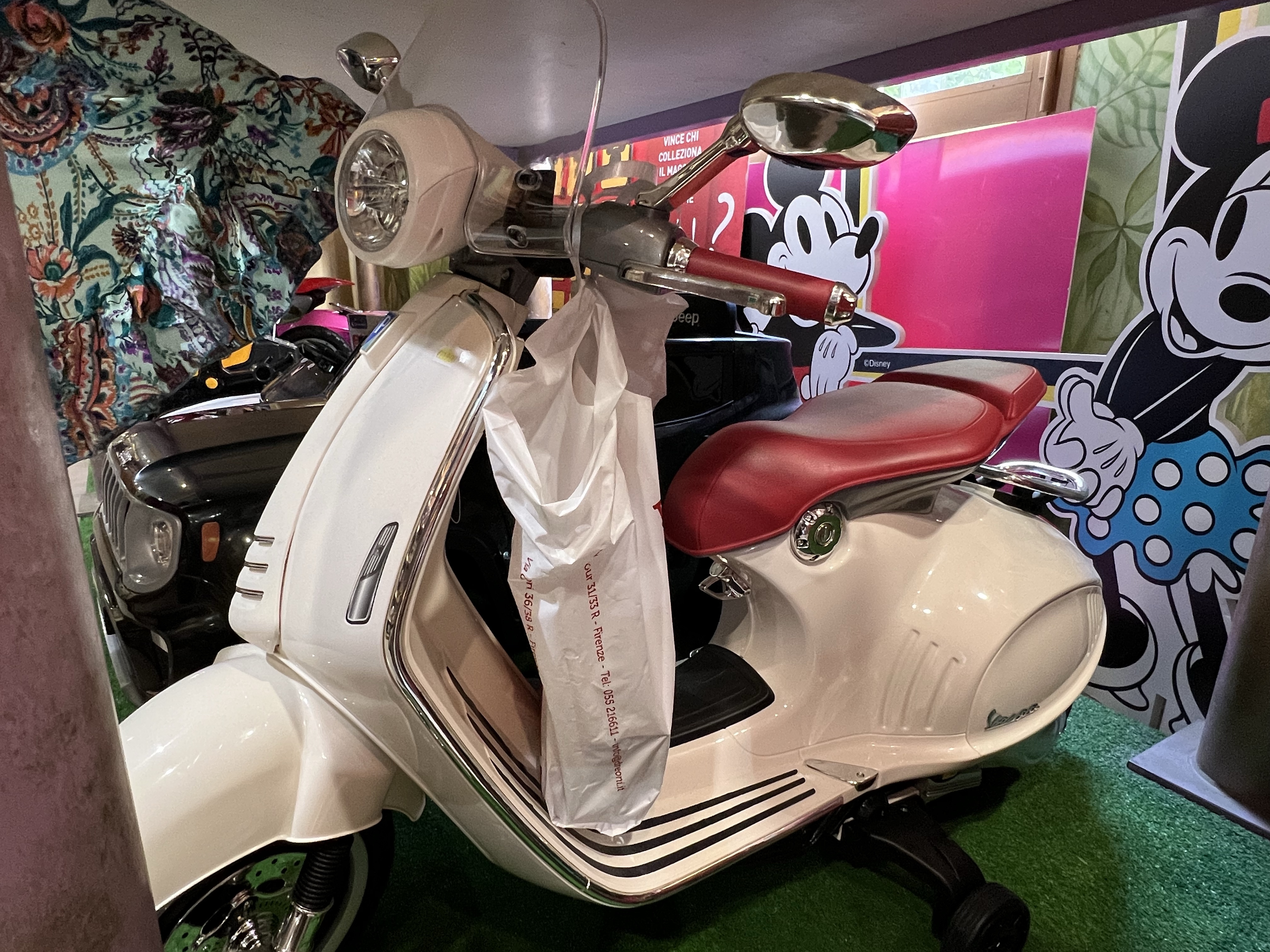 吃飽休息一下,十點半多出門。才走沒兩步就被附近的玩具店吸進去,裡面超大一間,居然有超專業的模型修復櫃檯,還有各種小孩用的跑車和偉士牌機車。