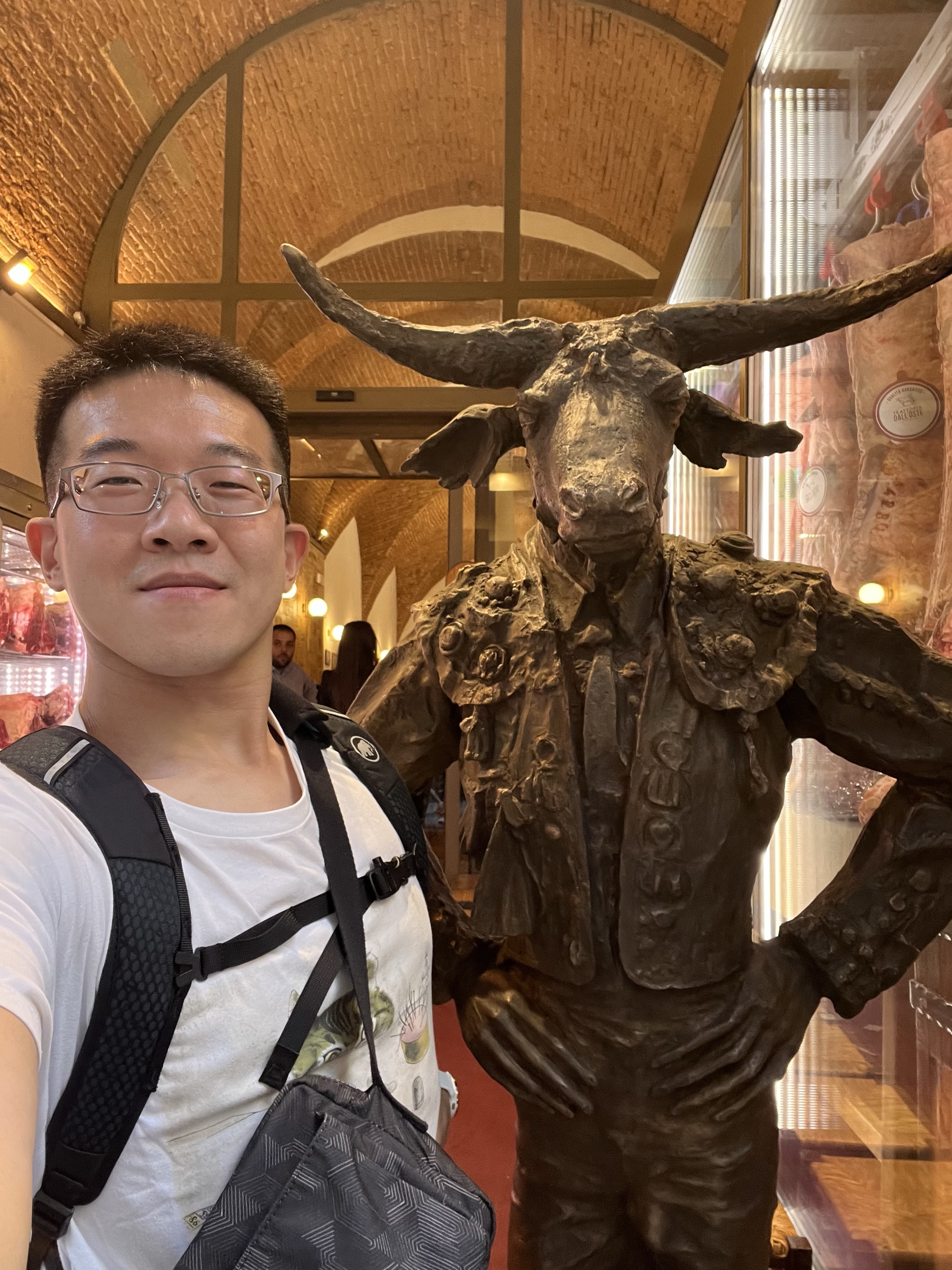 離待會去主教堂圓頂還有不少時間,就先去附近的中央市場補充能量。市場外面全都是皮件小販,一樓則是生鮮食材攤,也有一些伴手禮店,一不小心就買了松露油和松露蜂蜜,結果後來才發現有點貴啊!走到一處轉角看到間賣牛肚包的店,店面上還貼著日文的告示寫著燉煮內臟。店面舊舊的,座位區也就是幾張不起眼的桌椅,有很多人坐在位子上等餐。茹茹問顧店的阿伯能不能外帶牛肚包,沒想到阿伯立刻插起一片燉鍋裡的牛肚,剁剁剁剁,拿著切半麵包沾點燉牛肚的湯,夾起來就完成了!超級快根本不用等!而且牛肚是清燉口味,清爽又軟嫩,配著半濕潤的麵包簡直極品!後來看Google maps的評論發現只有3顆星,一堆人抱怨太貴或等很久,感覺是間外帶牛肚包限定的店,運氣真好!