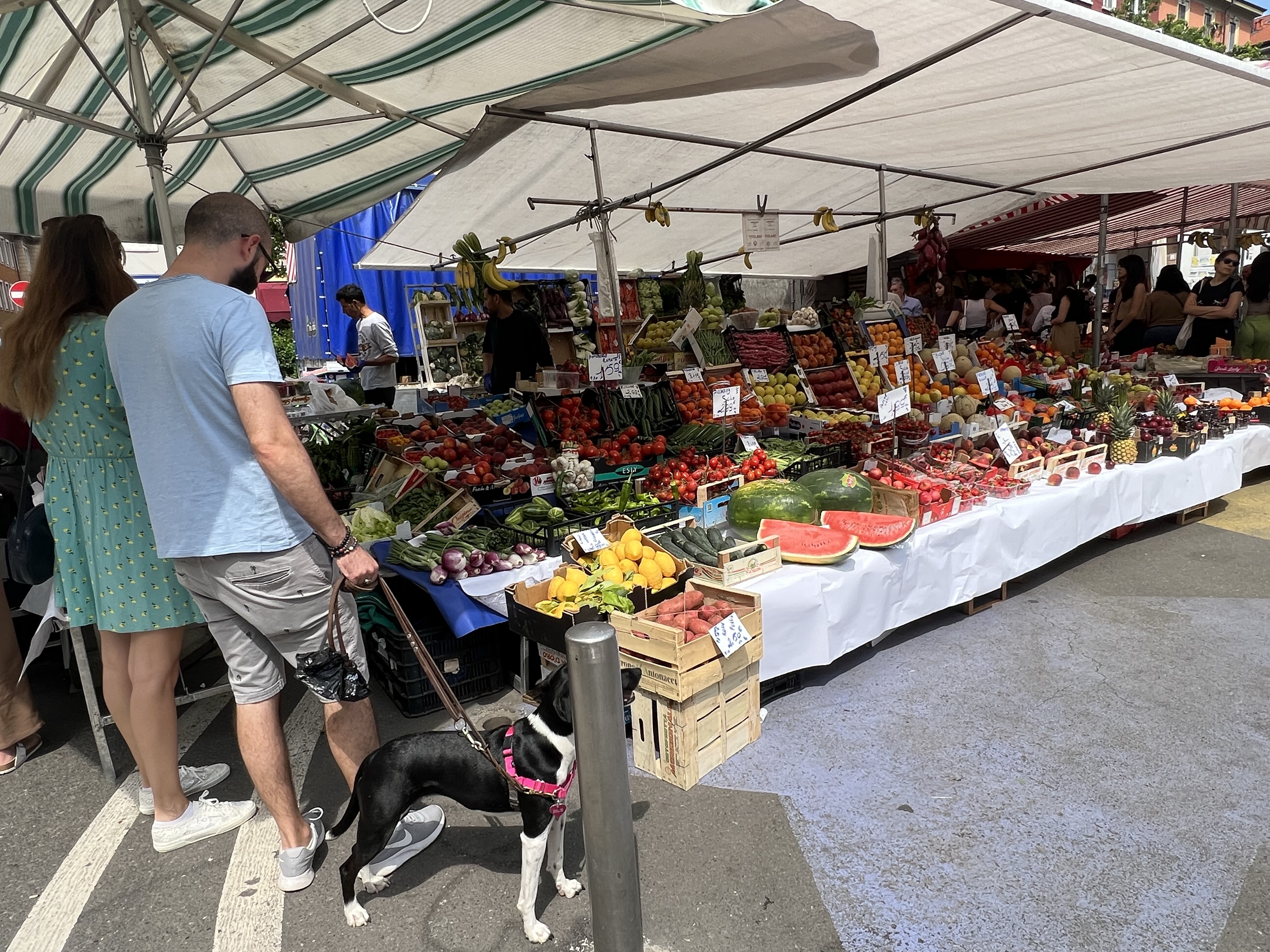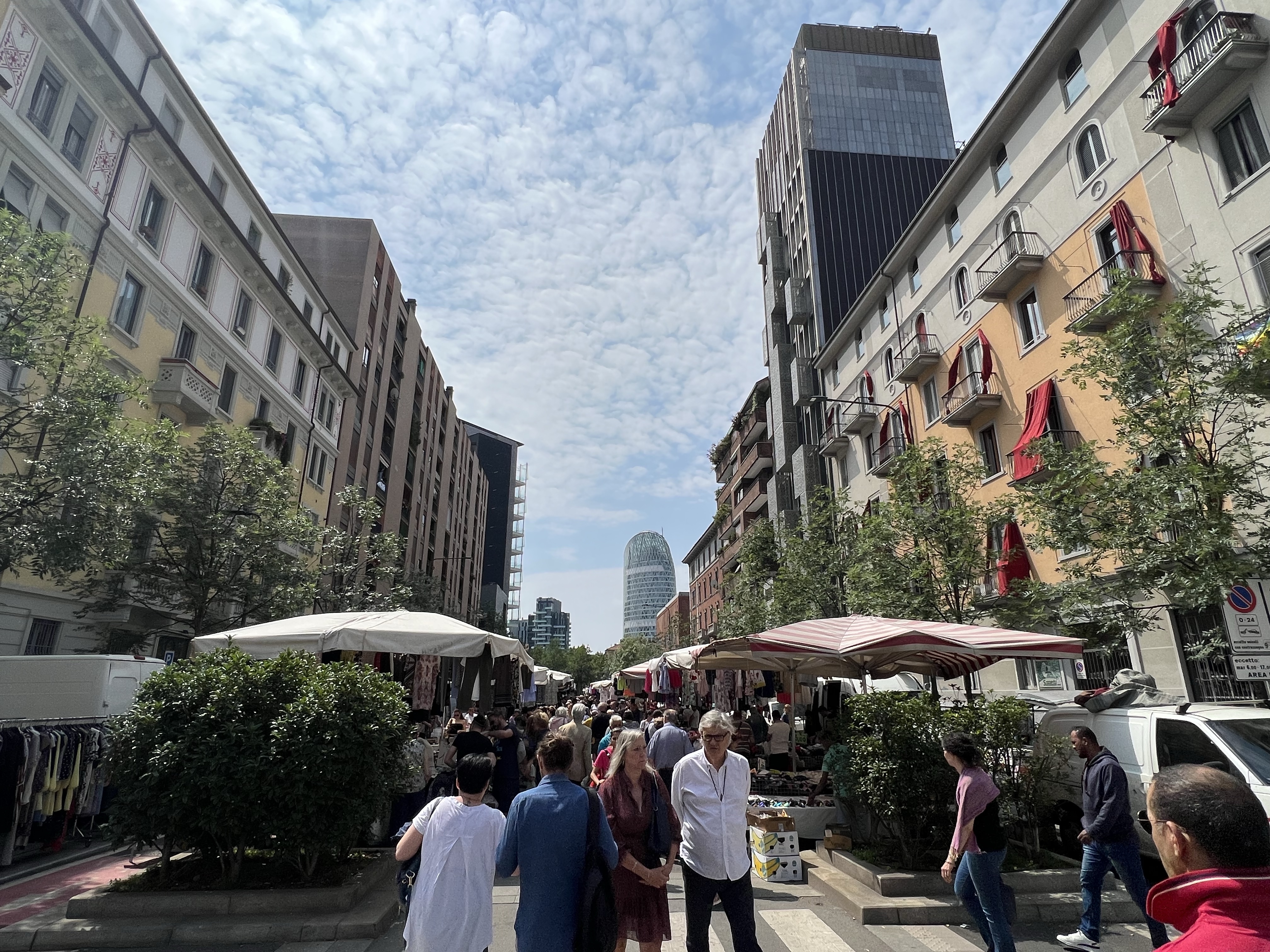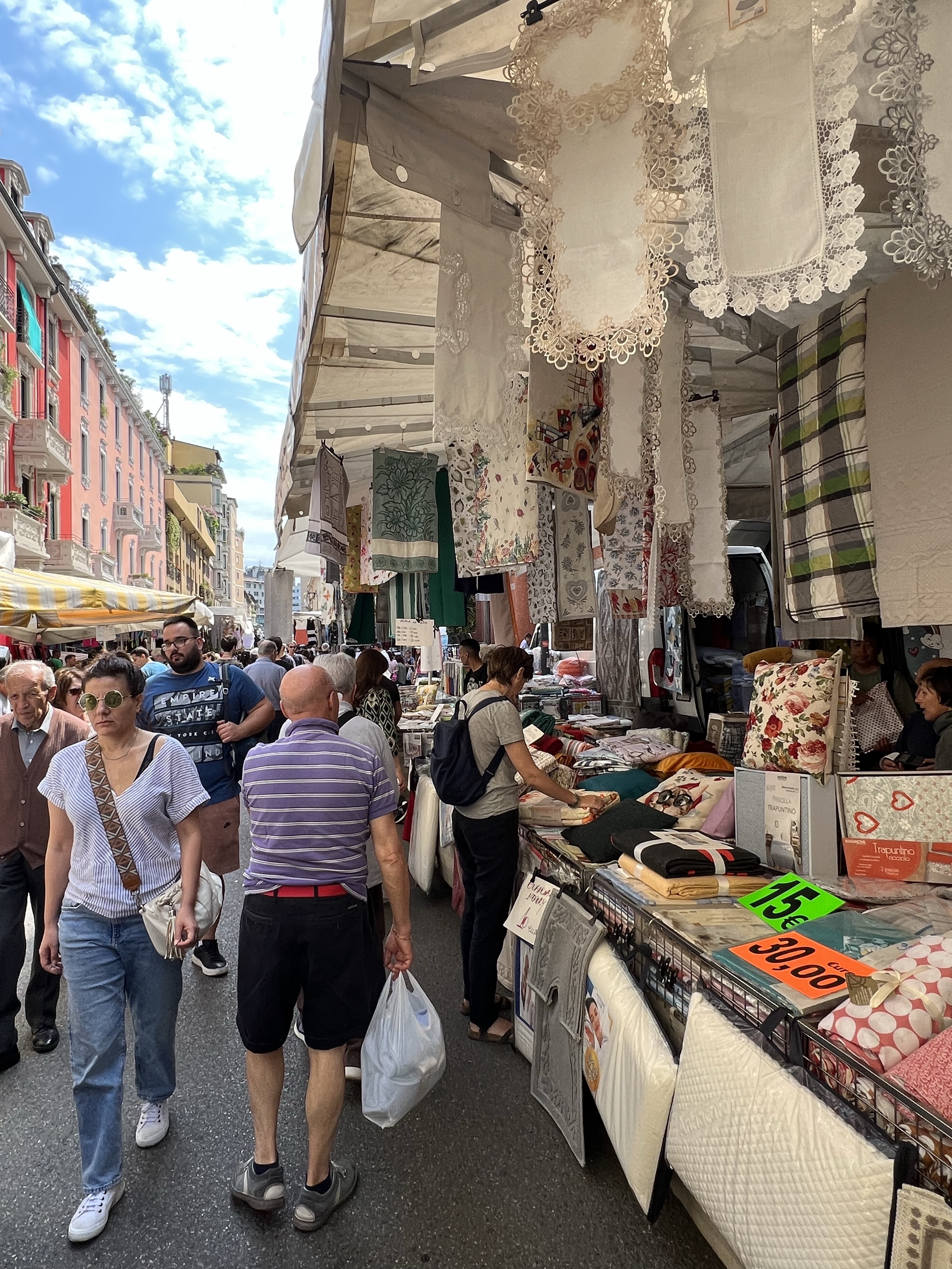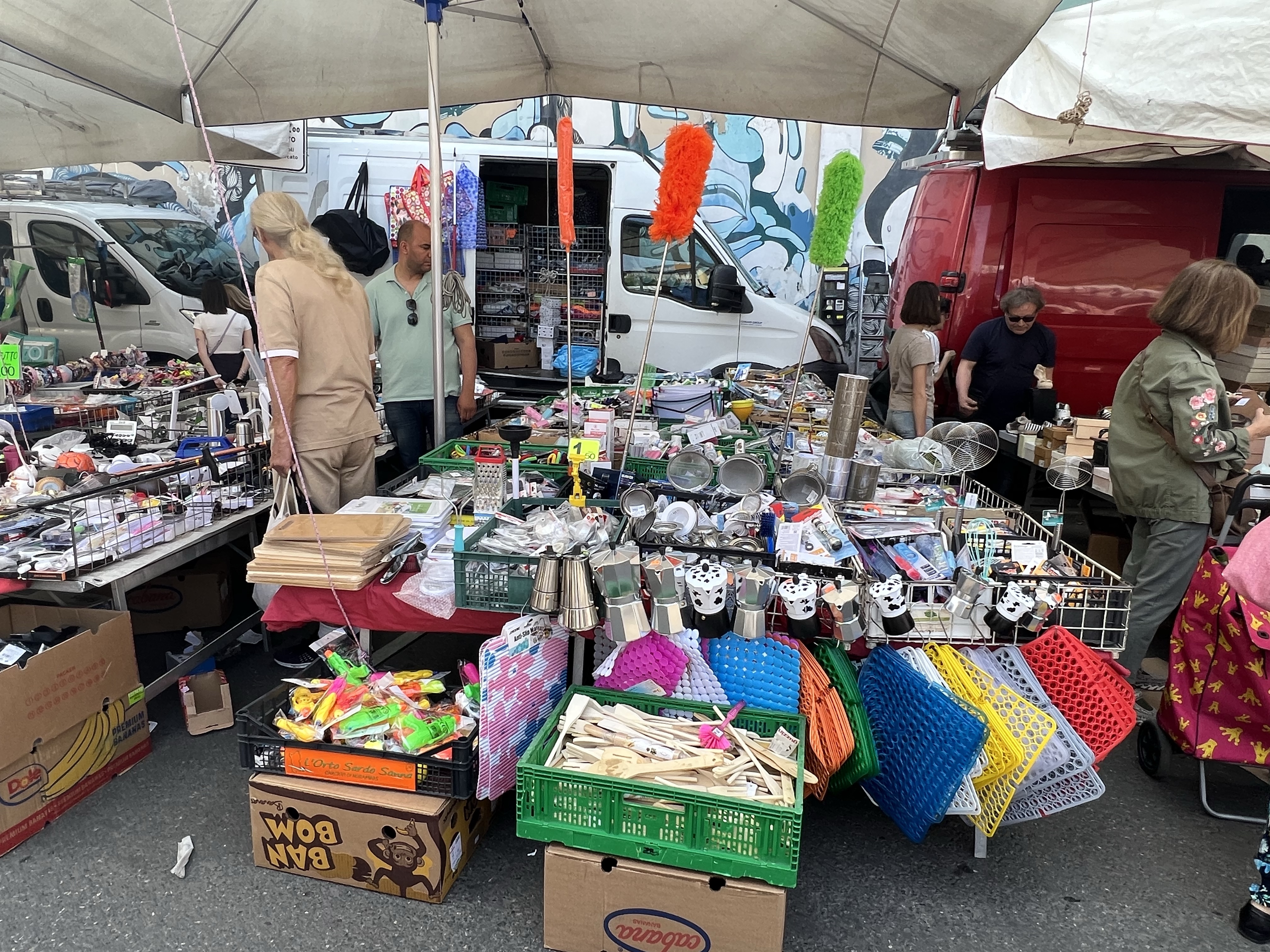 吃完飯往地鐵站走,今天禮拜六正好有市集擺攤,廣場上以新鮮的蔬菜水果攤為主,道路兩邊則是衣服和居家用品店,還有不少「一元店」,跟台灣菜市場其實蠻像的。