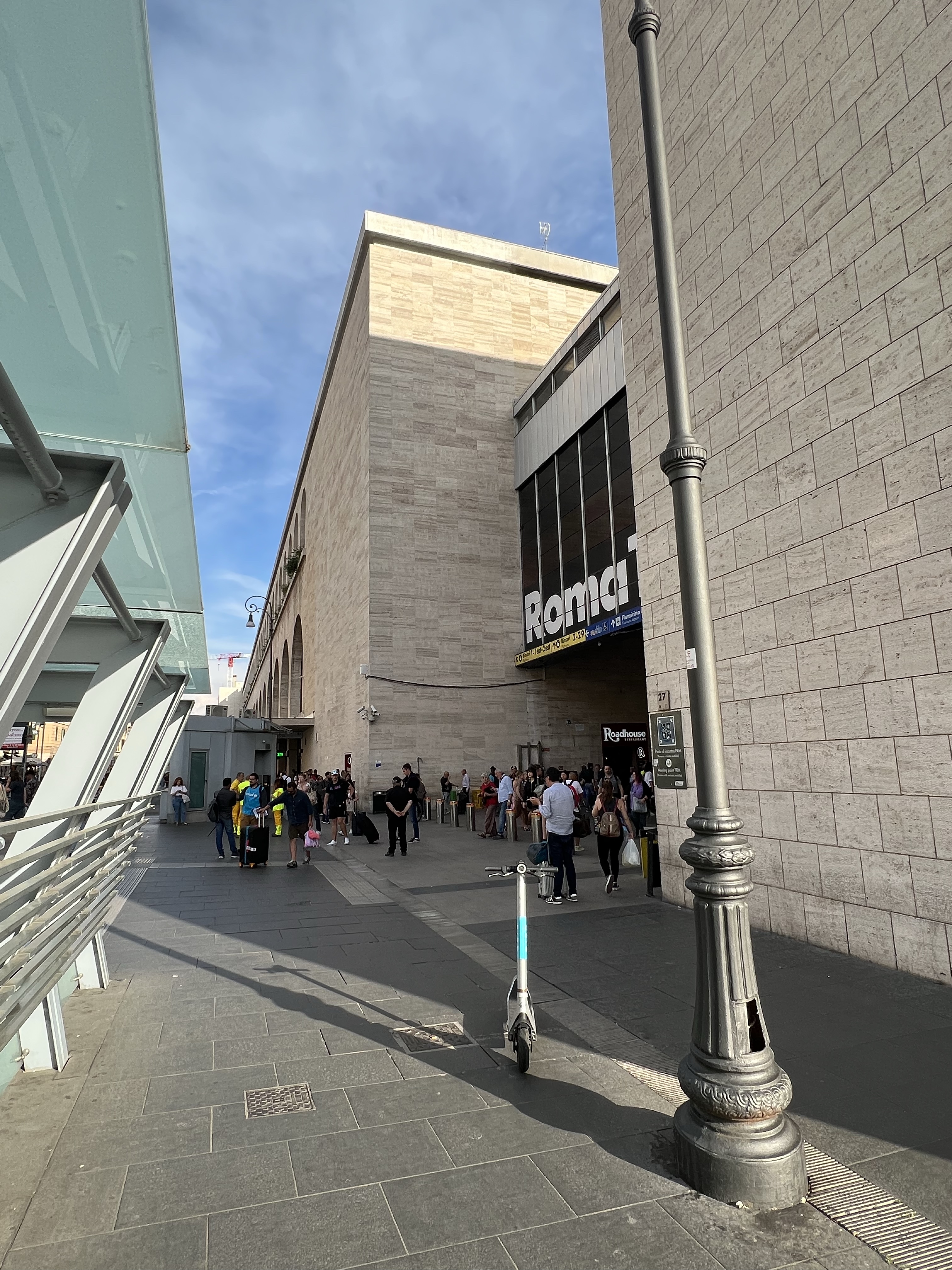 在會場聽完最後兩場大場演講,就又趕回公寓拿行李,要趕上一個鐘頭後往羅馬的火車。沒想到原本以為時間還算充裕,結果拖著行李走到加利波底門站的通道口,被正在進行塗鴉藝術的人擋了下來,只好繞了一點小路走;進到車站後看到車子快來了就趕著上車,問了旁邊的女生說是不是往火車站,她回說是,結果上了車門一關她就跟我道歉說好像不是,我只好趕緊在下一站下車。偏偏下一站的另個方向月台需要上下樓梯,我扛著行李奔跑到另一側,看著下班地鐵要七分鐘後才來,心想完了!看來是絕對趕不上了。