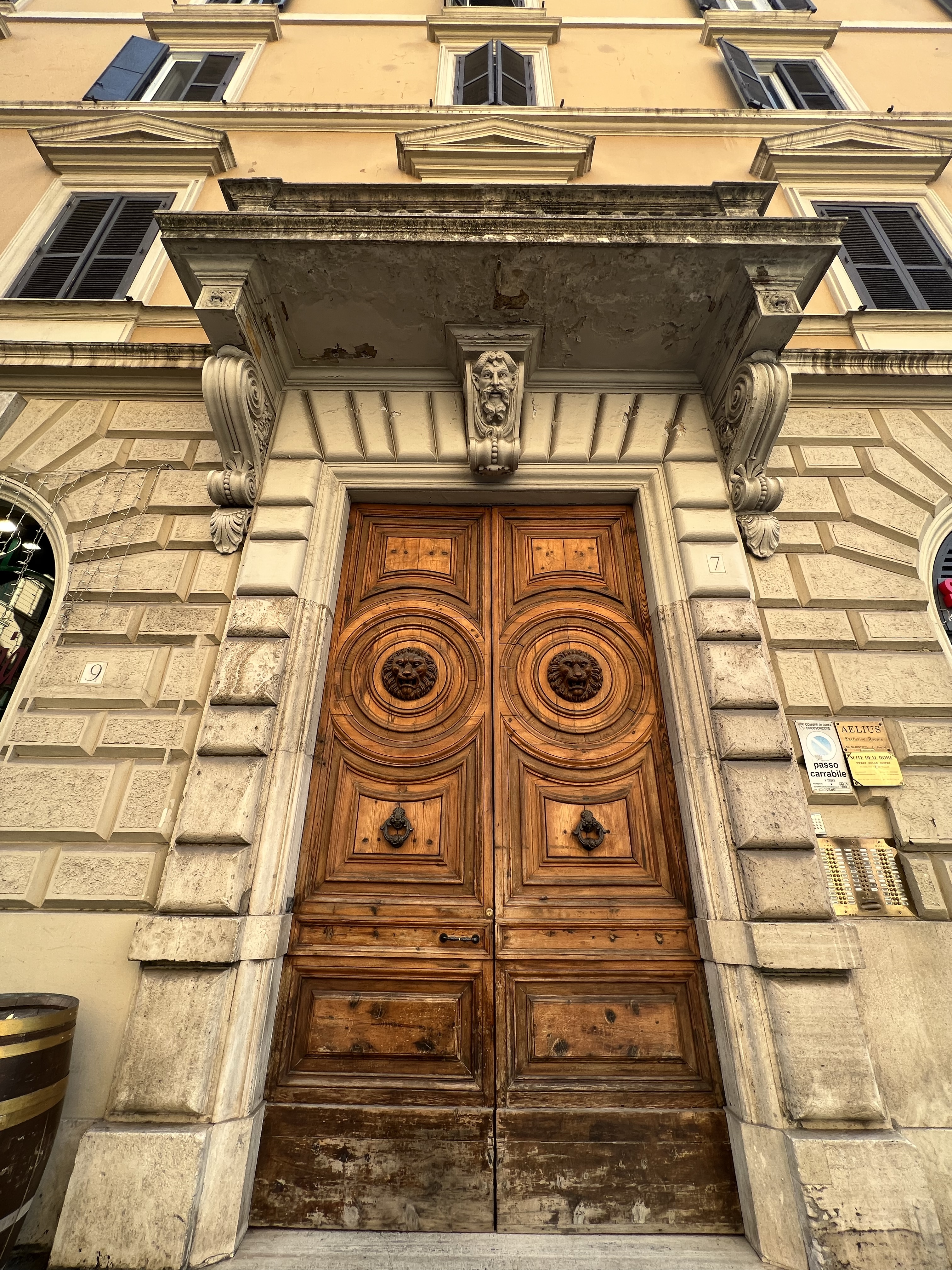 抵達羅馬大約六點半,正是氣溫最熱的時候。出站後沿著人行道直走五分鐘就到我們住的Airbnb了,房東給了一個網頁連結,可以直接用手機開啟大門。大門大概有三公尺高,非常厚重,有種試煉之門的感覺。進到公寓內放好行李上了廁所,跟茹茹會合後,再一起出門和瑞士台灣人在餐廳見面。
