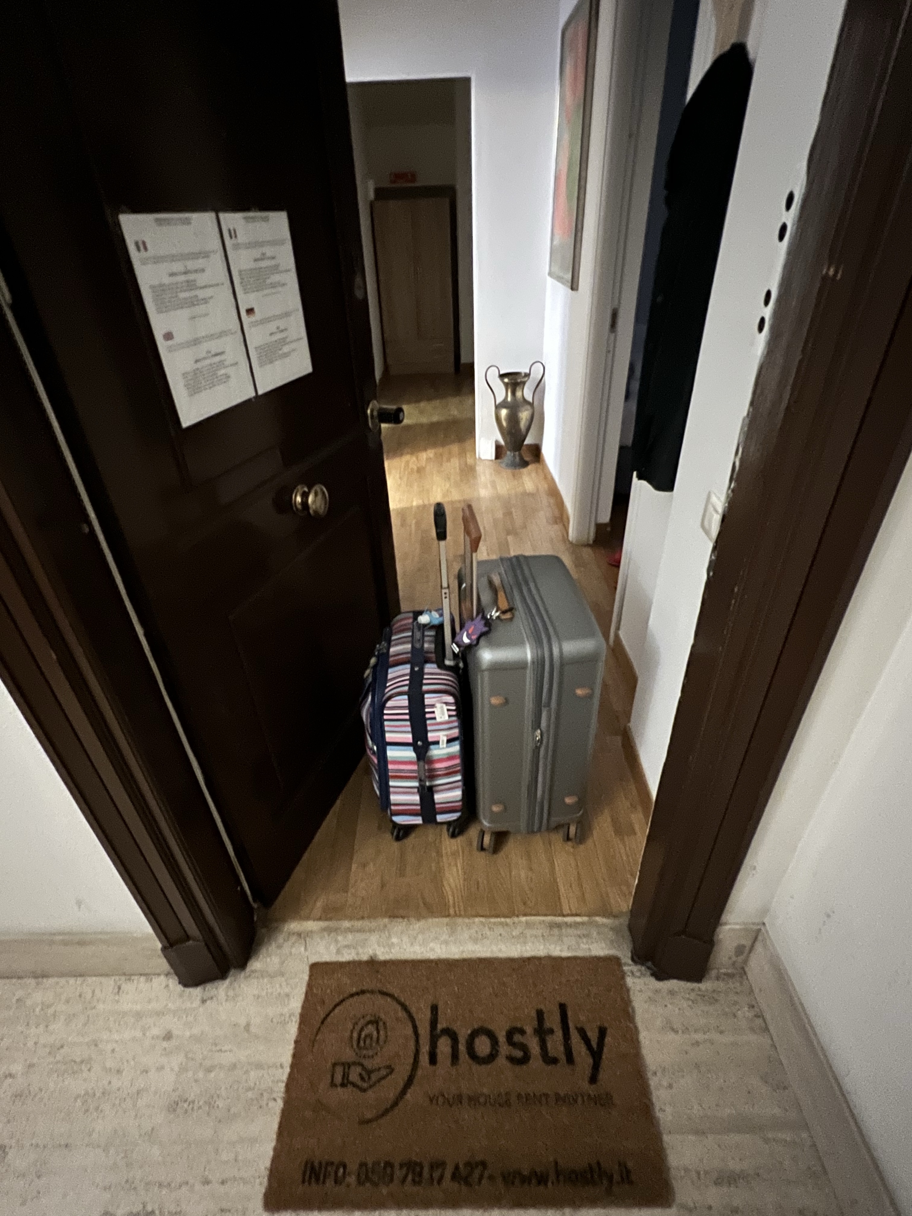 公寓有兩間房間,每間都有一張單人和一張雙人床,給我們五個人住還算寬敞,但浴室只有一間、廁所又在浴室裡,實在是有點困擾。我在餐廳的沙發床上窩著查隔天想去的地方,不過其他人從前一天就瘋狂趕行程,幾乎已經去過所有的大景點,我其實也沒特別想去的目的地,只想體驗羅馬假期那種放鬆的城市氣息;可是今天看到各處都是人類,實在是沒什麼情調,對於要去哪裡也都興趣缺缺,只想找個人少點的地方散散步就足夠了。