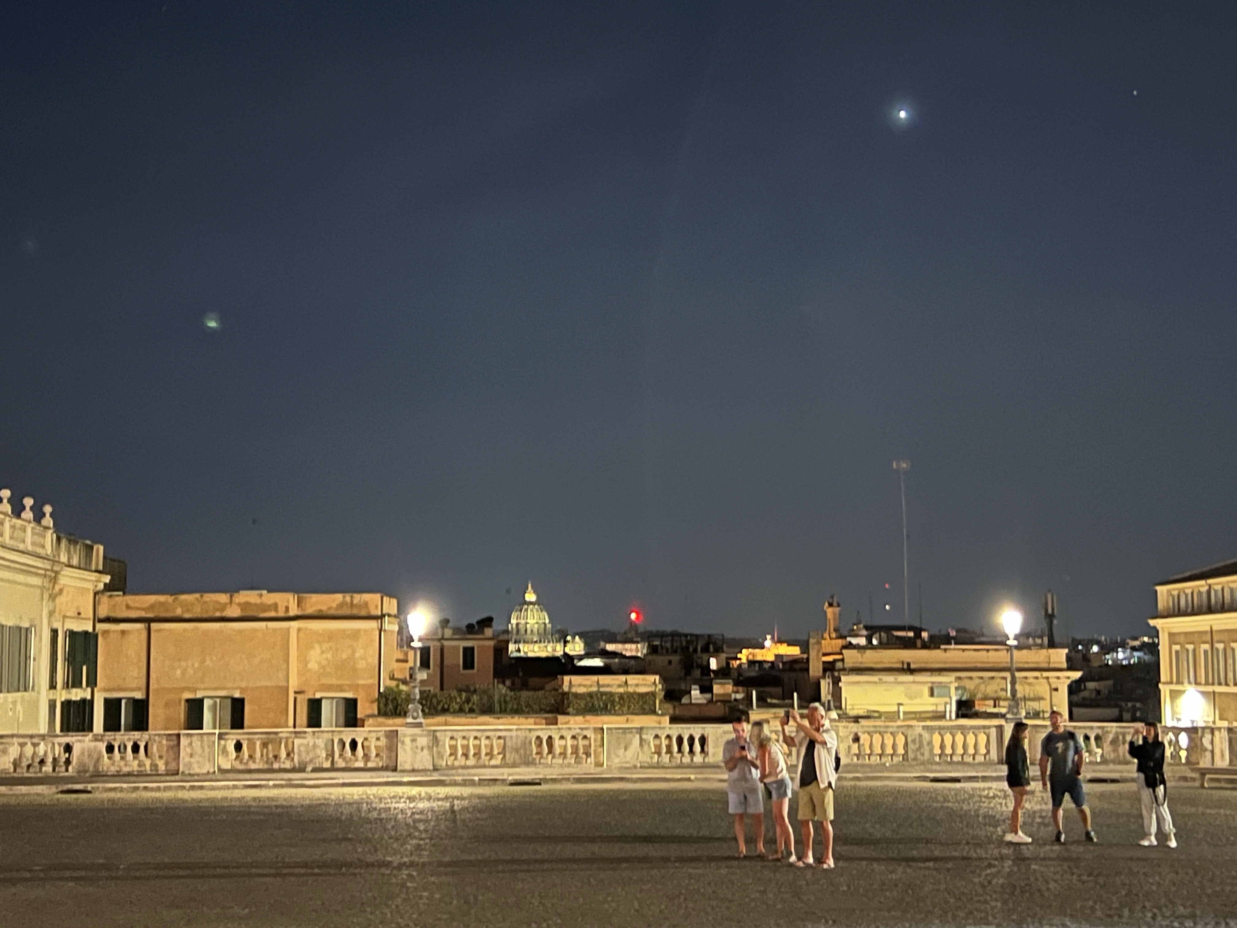 西班牙階梯上滿滿的都是人,聽說白天更是人滿為患,根本別想靠著扶手吃冰淇淋!我們站到階梯上感受一下氣氛,沒想到晚上十點鐘一到,警察就吹著哨子叫所有人都起身離開,不知道是不是疫情後的政策。