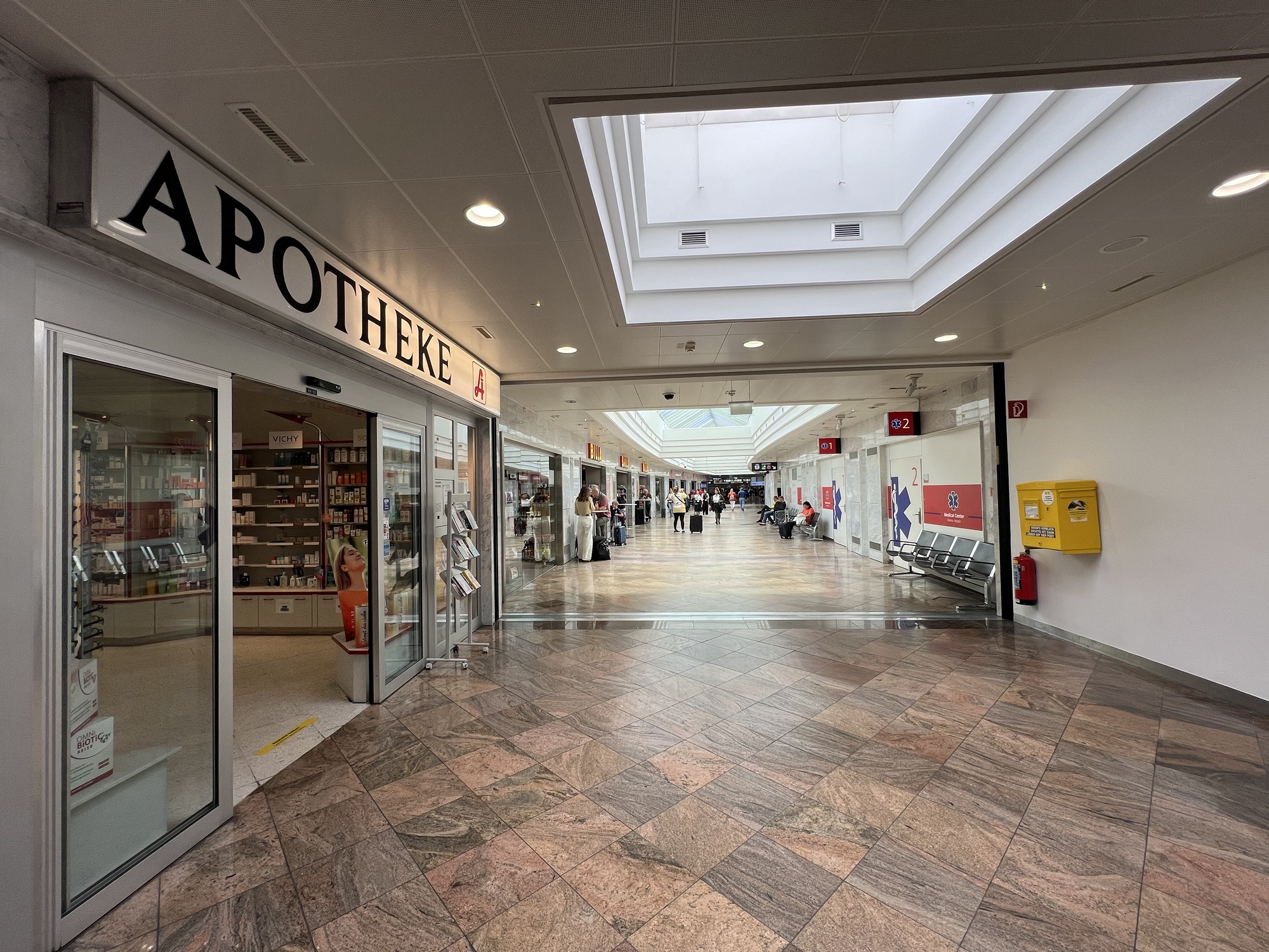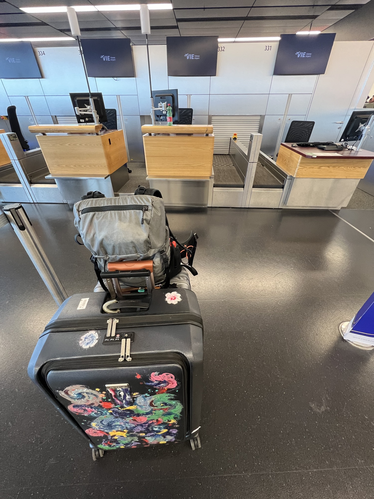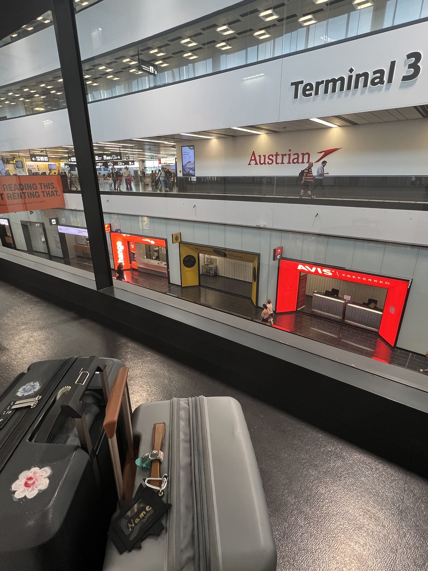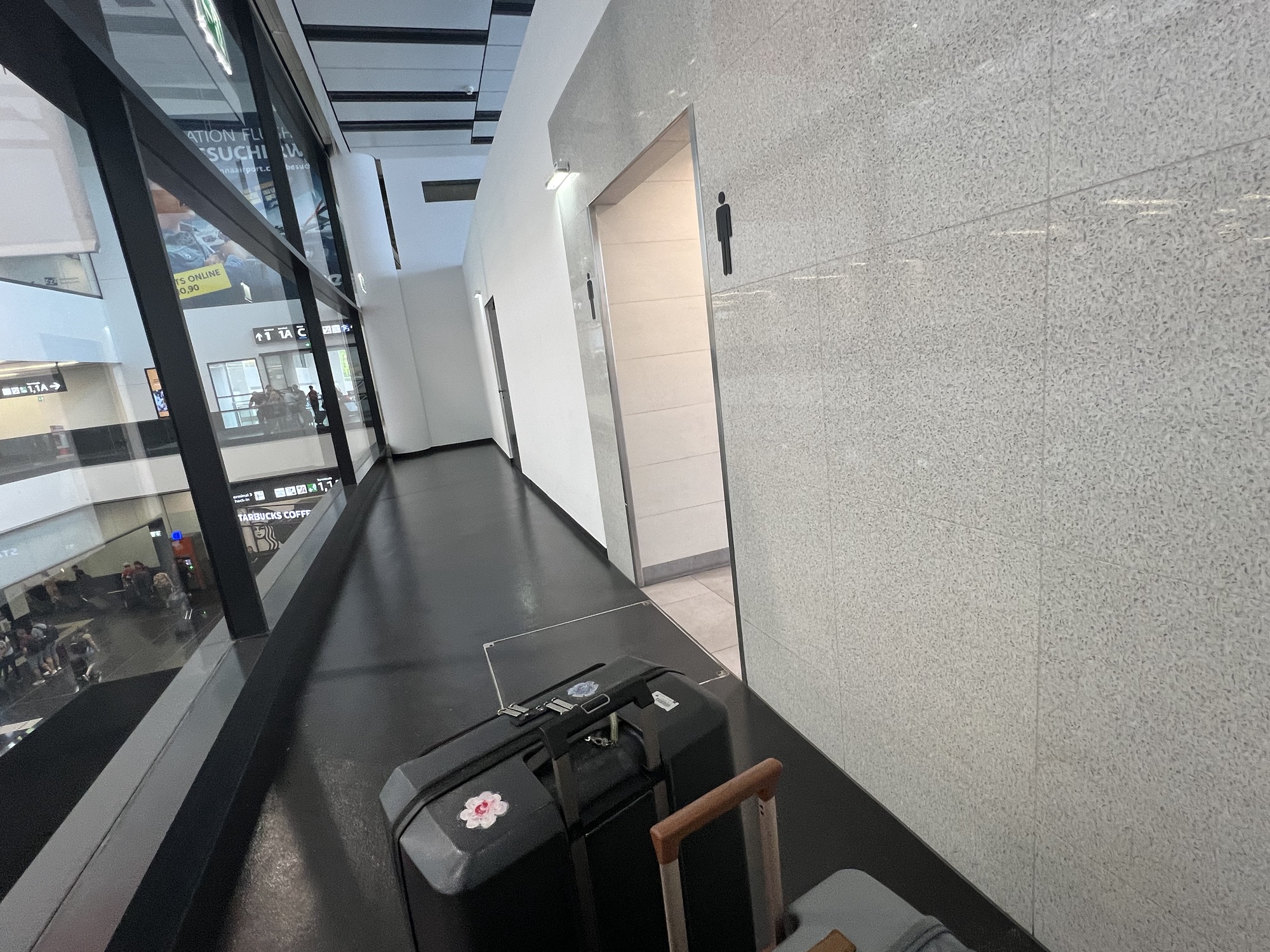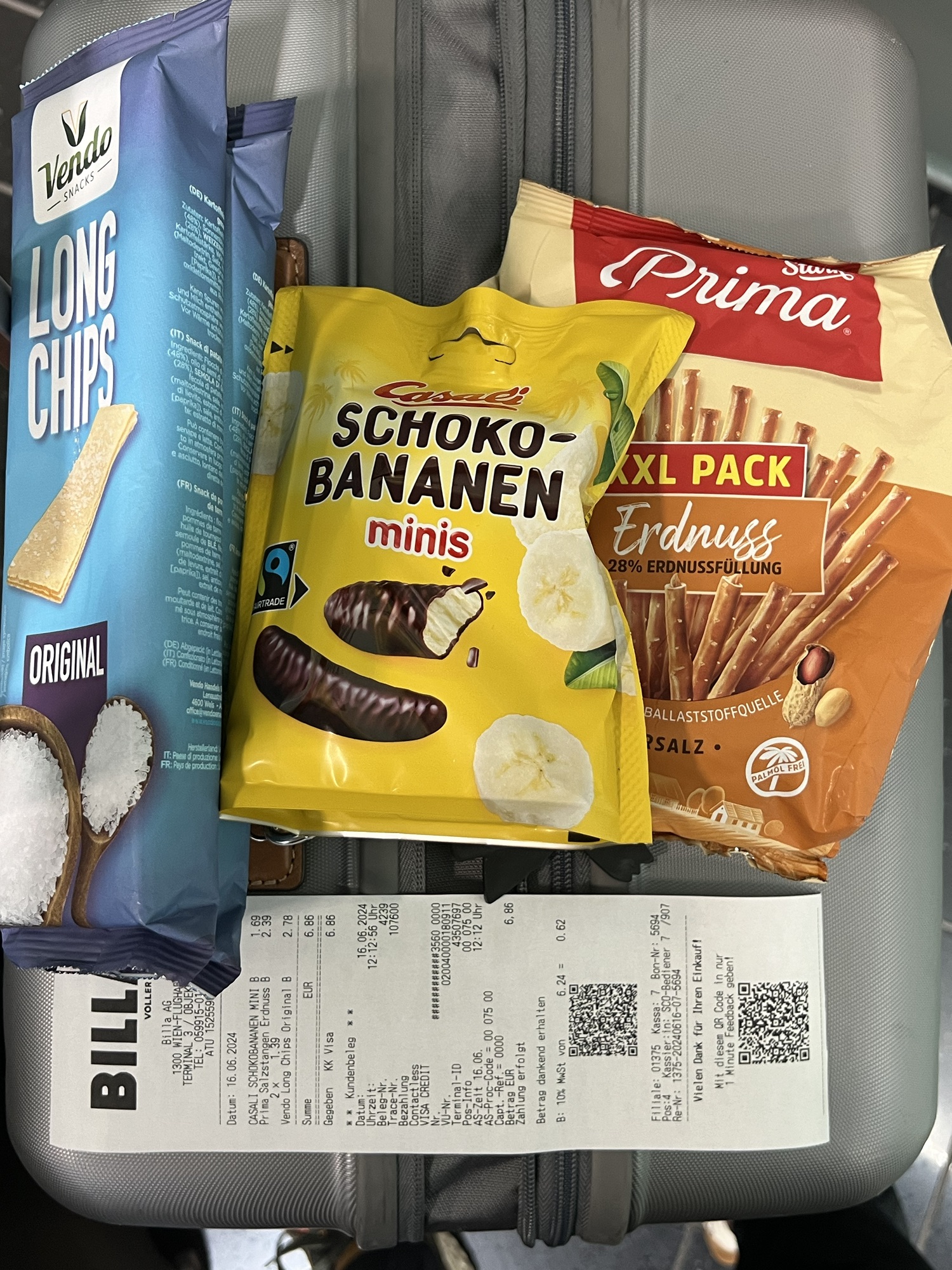 整個人腦霧沒辦法坐著打遊記,狂喝水又一直想上廁所,索性在機場裡面逛街。一樓有間藥妝店BIPA和一間超市BILLA,我時間超多,在裡面一件一件的看,然後亂買東西。在藥妝店買了傷口修復凝膠噴劑和便宜的胃乳,還有各種夯實的爆米花片和洋芋片;再去超市看進來的人都拿什麼餅乾,看起來讚讚的話我也來一包,然後全部都丟進托運行李裡面,簡直無底洞!
