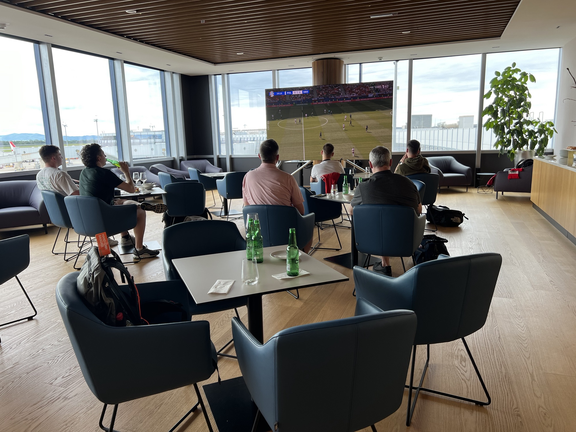 看著波蘭對荷蘭的比賽發冗,喝喝通寧水配甜食,接近五點再去登機,不過登機前還要先過歐盟的海關,幸好沒什麼人排隊,五分鐘通關。