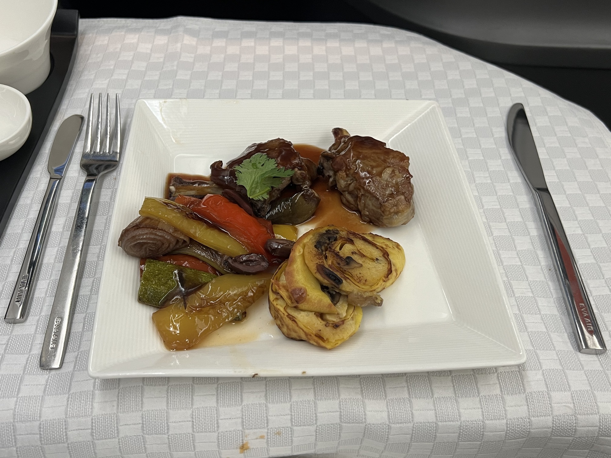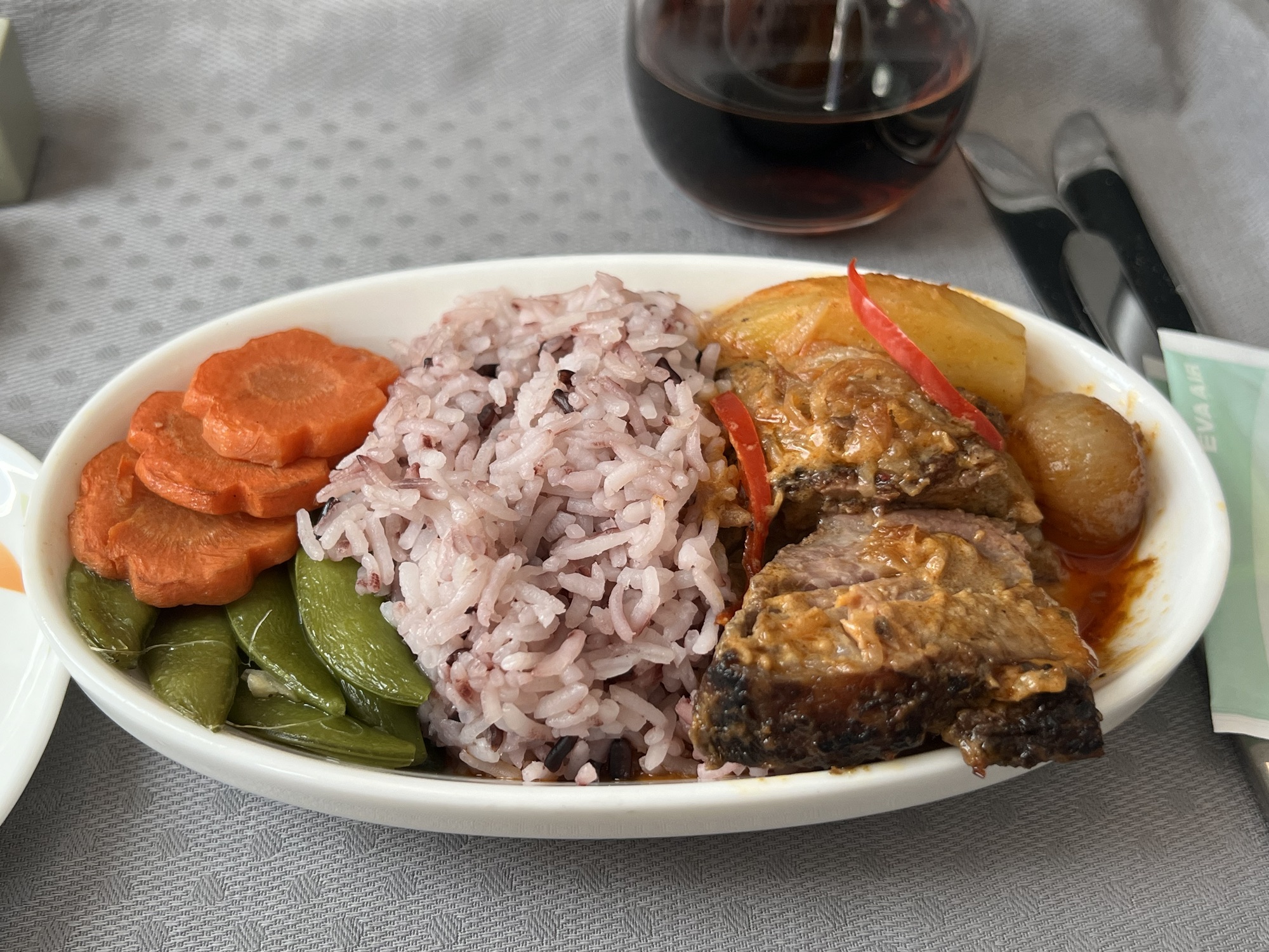 重新登機後又在飛機上吃了一餐,這次是椰漿豬肉,我覺得肉質不錯但調味不喜歡;甜點的椰漿芋泥就很好吃。小睡了一下就到台灣了,行李也毫髮無傷地抵達,幸好在下班時間前搭上高鐵,一個多小時後回到家受貓咪大肆歡迎。