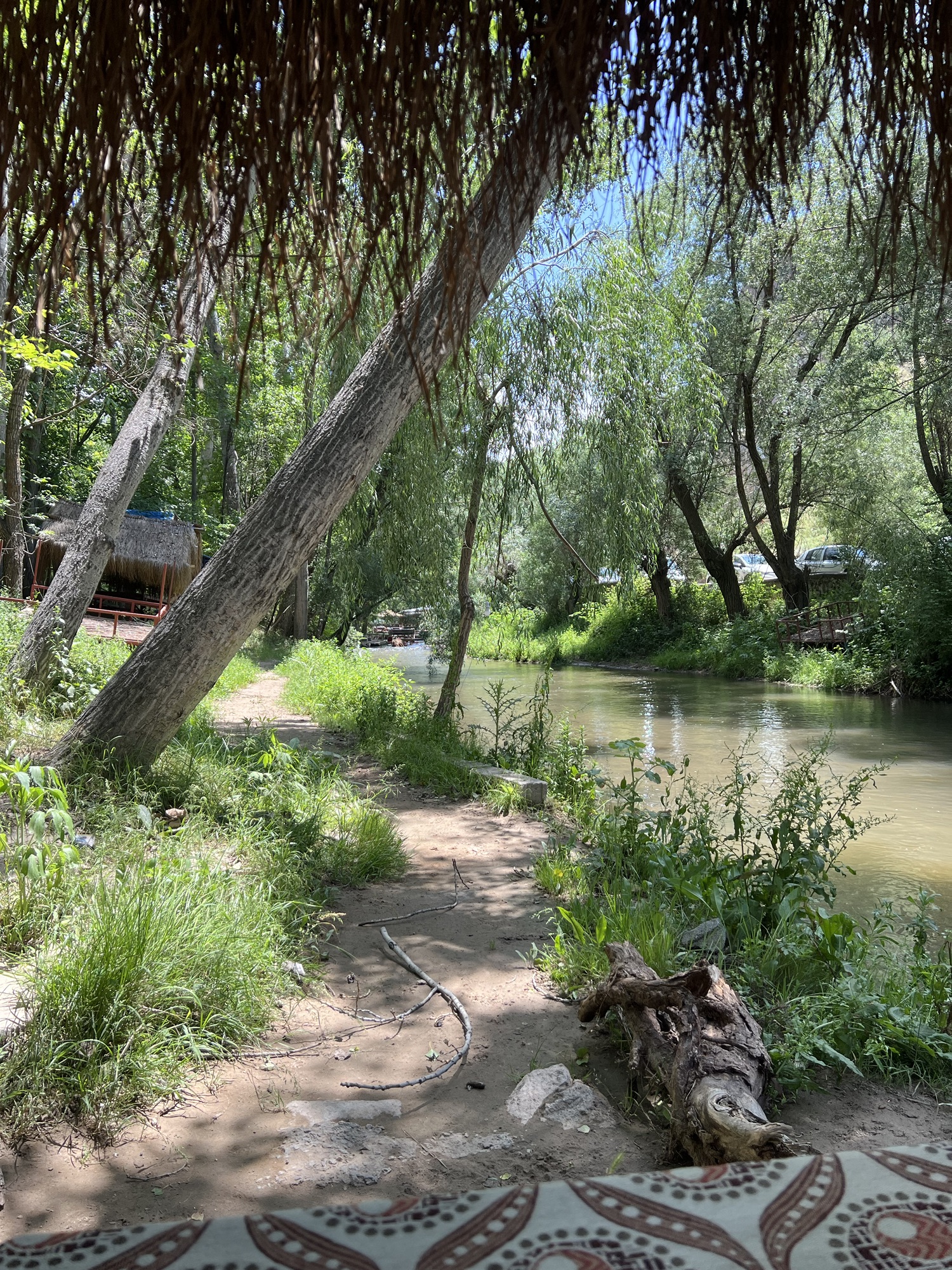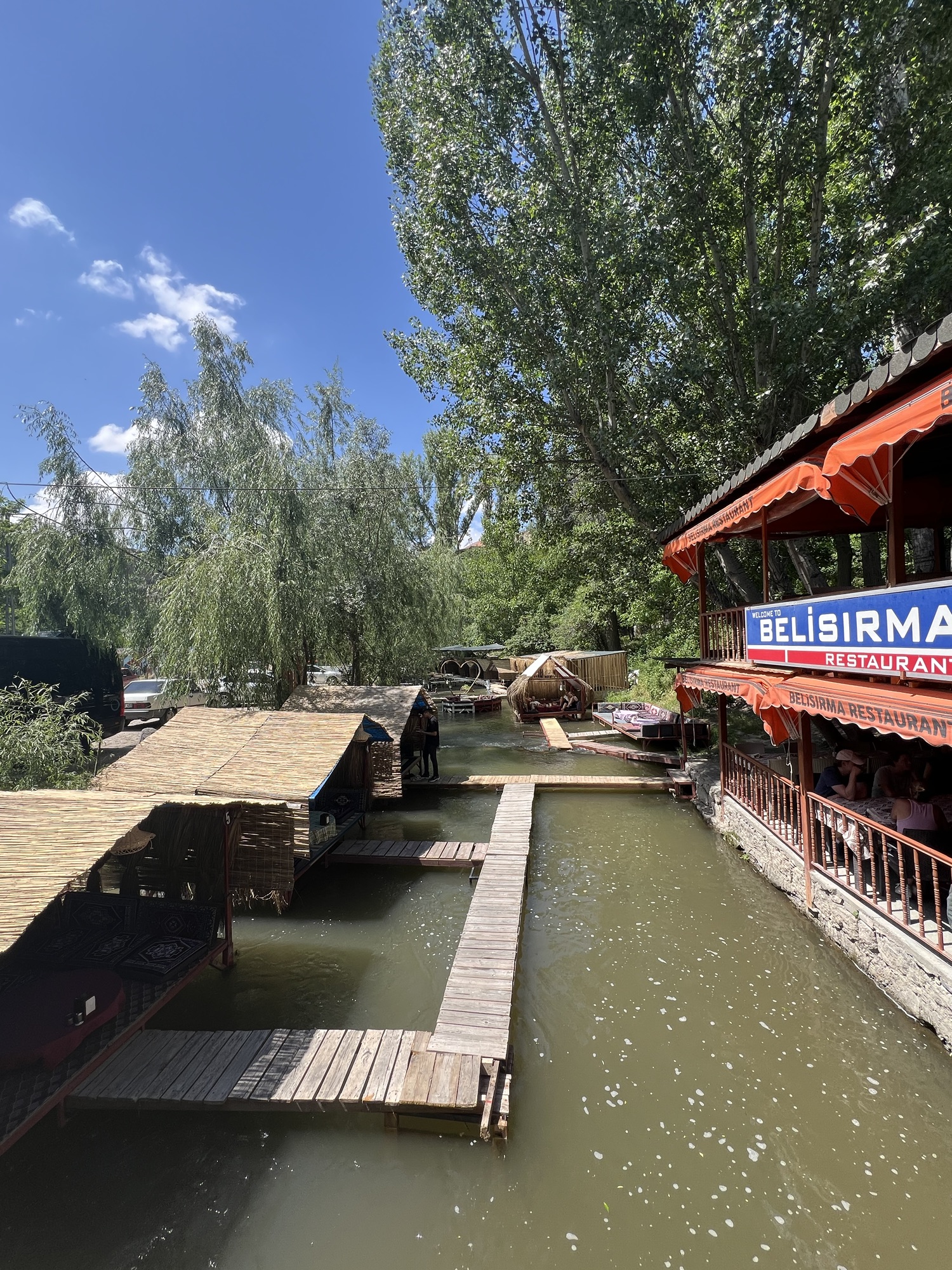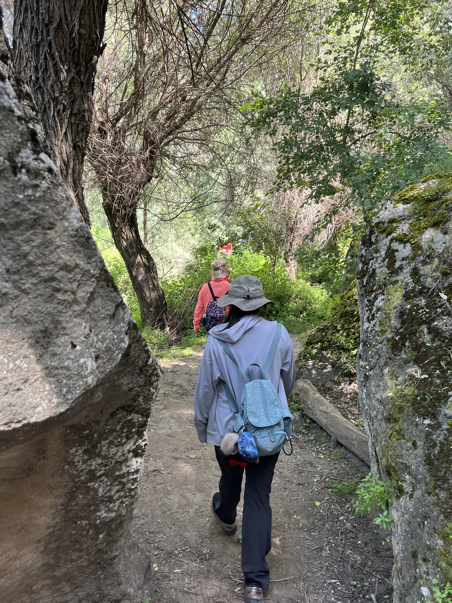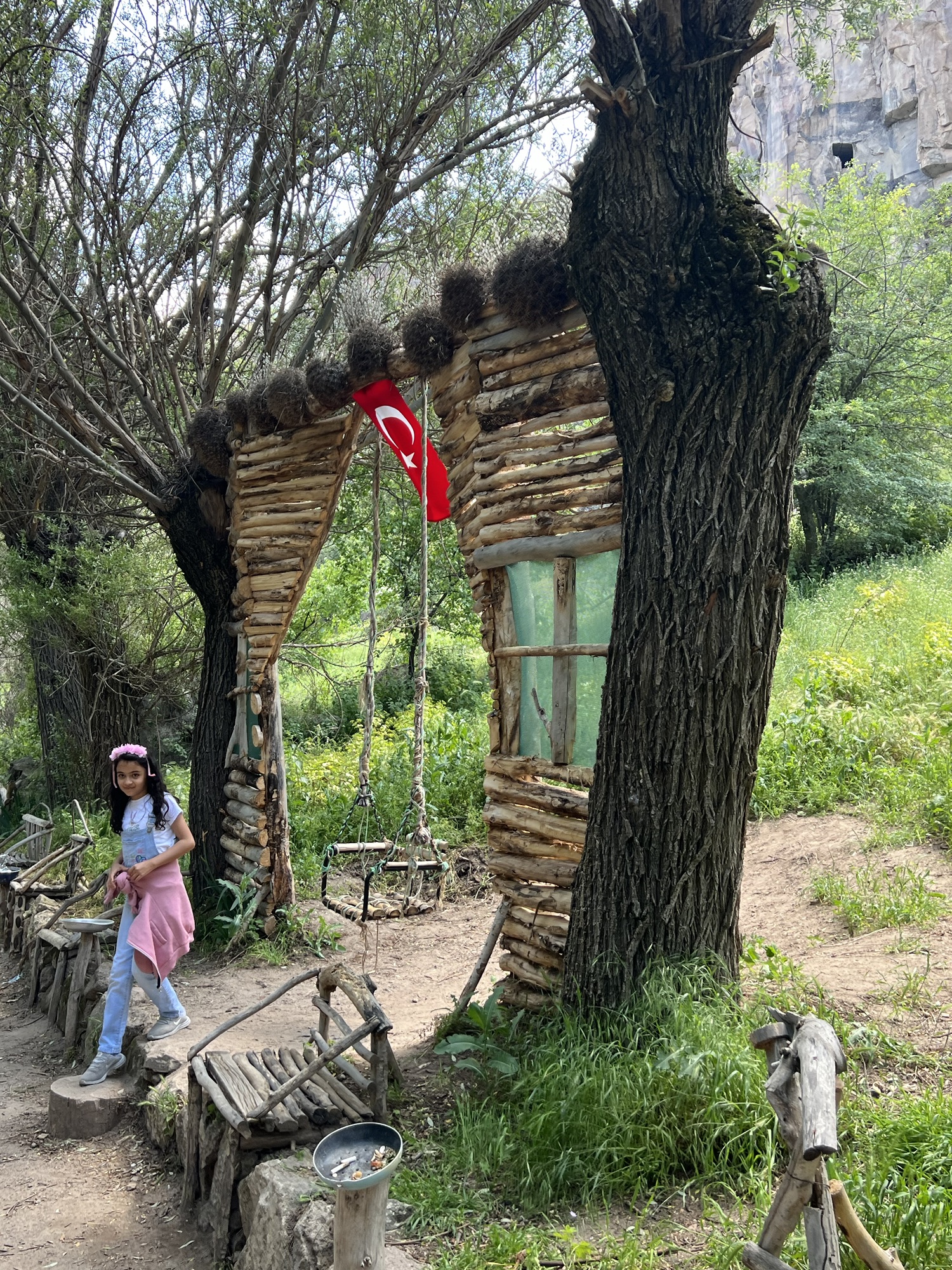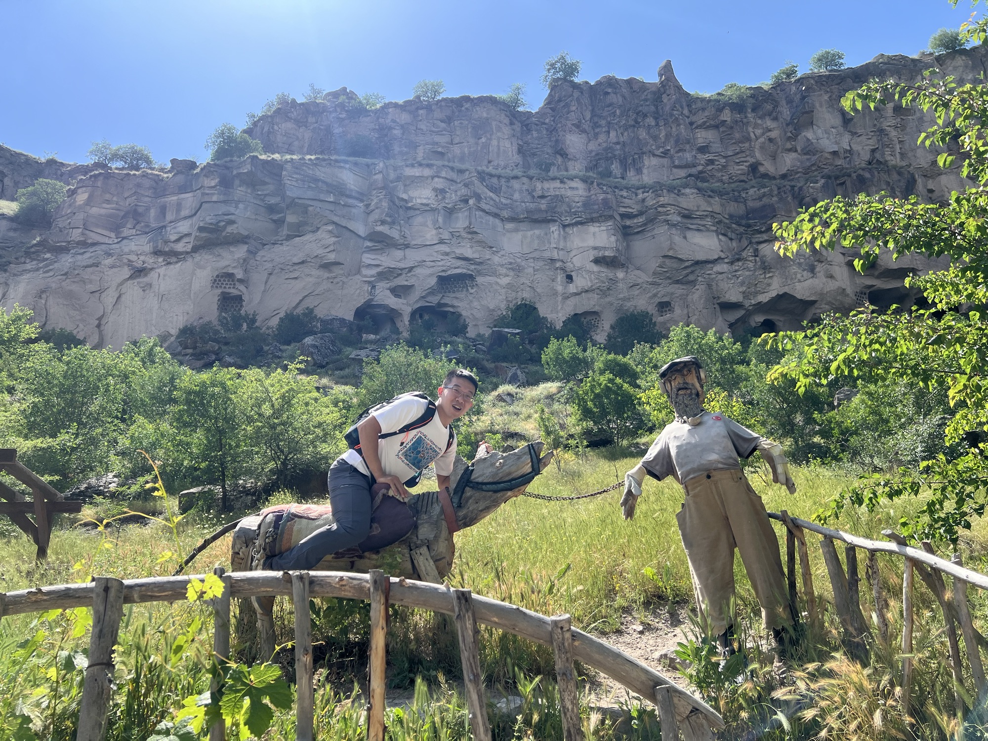 吃完飯,餐廳旁邊就是峽谷步道,我們只沿著河邊走一公里就折返,我個人覺得這樣就夠了,並沒有很想健行。步道旁有幾個奇特的假人和假馬,可以各種姿勢照相。還遇到一群土耳其小孩,對我們的東方臉孔非常興奮,一直咯咯咯地笑。