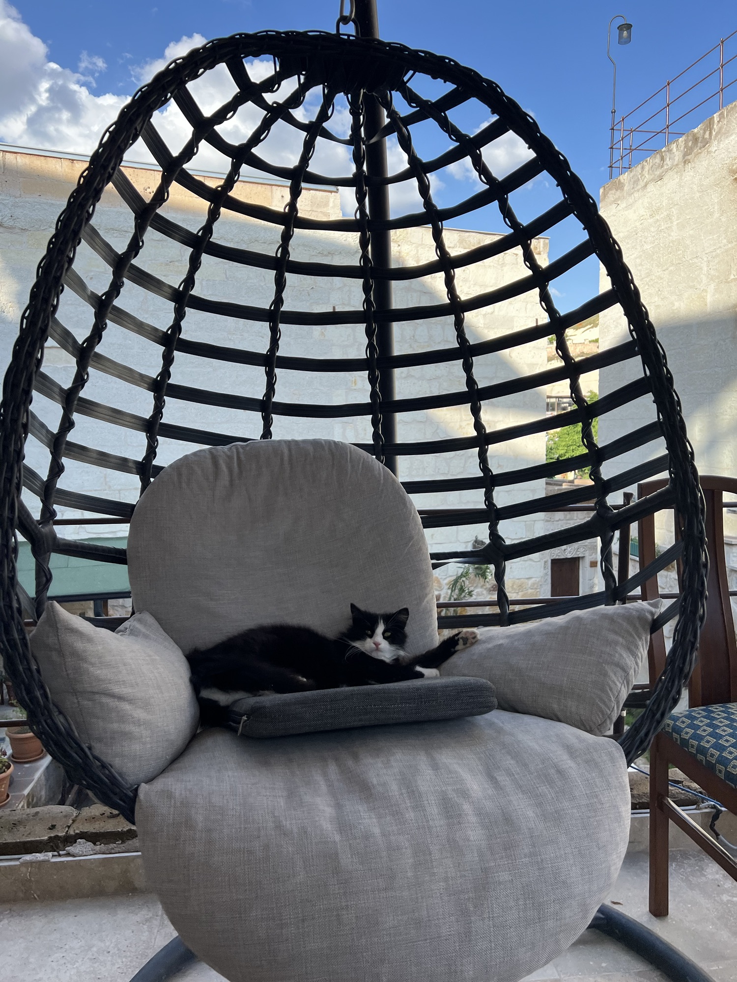 早上一樣吃了豐盛早餐,看貓咪吃飯、吵架、曬太陽,還有一隻蜜蜂被玩一玩吃掉。因為今晚就要搭機去伊斯坦堡,行李收好寄放櫃檯,九點半,一樣的導遊和小巴載我們走今天的綠線行程。