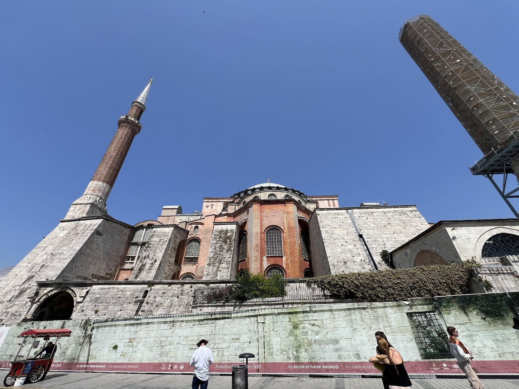 沿著皇宮城牆繼續往上走,經過一整排希爾頓的別墅旅館,居然就貼在城牆上蓋,緊鄰聖索菲亞大教堂,甚至還有高爾夫球車來回接送,大概是舊城區最完美的住宿地點了(大概也貴到突破天際)。聖索菲亞大教堂就在皇宮旁,不過皇宮門口售票處賣的反而是聖索菲亞的票,一旁的側門就是聖索菲亞給遊客的專門入口。