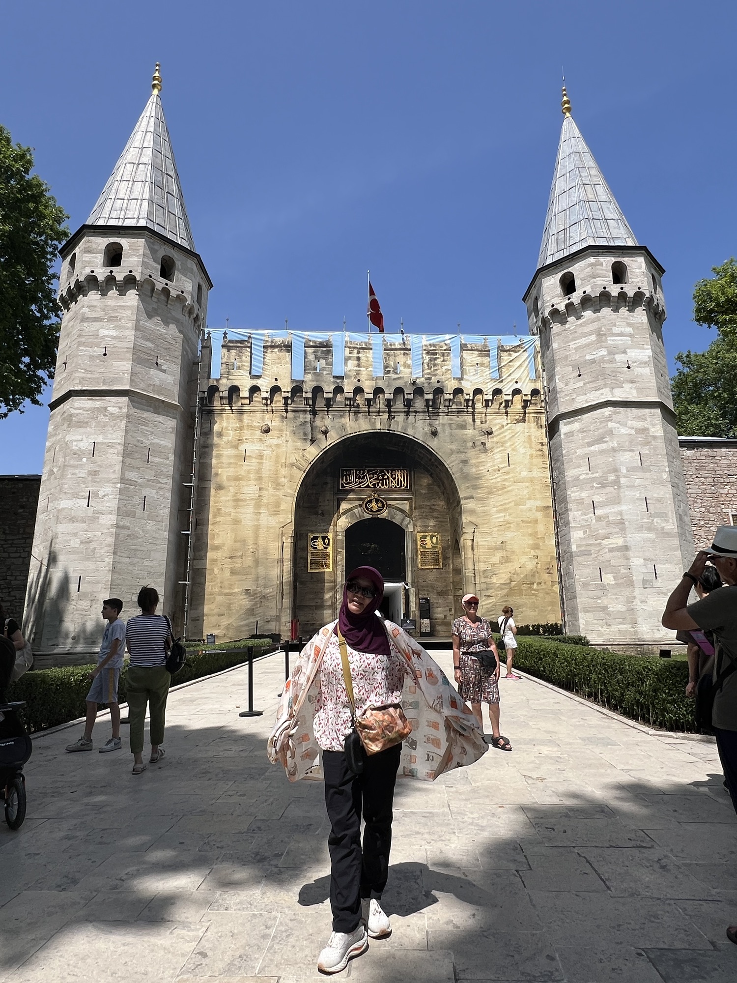 皇宮中有些看起來像過去宴會廳的地方都變成展示廳,裡面都不能拍照。我們先看了古代皇室衣服的展示廳,有的衣服看起來很像紙,共同點是看起來都很寬大;然後又看了阿拉伯書法,覺得真的很難學,一串連連連到底;有幾本書有明確標出斷點的感覺比較學習友善。另外就是手抄的經文,每一頁都有精美的手繪邊框,感覺畫邊框比抄經文難一百倍。