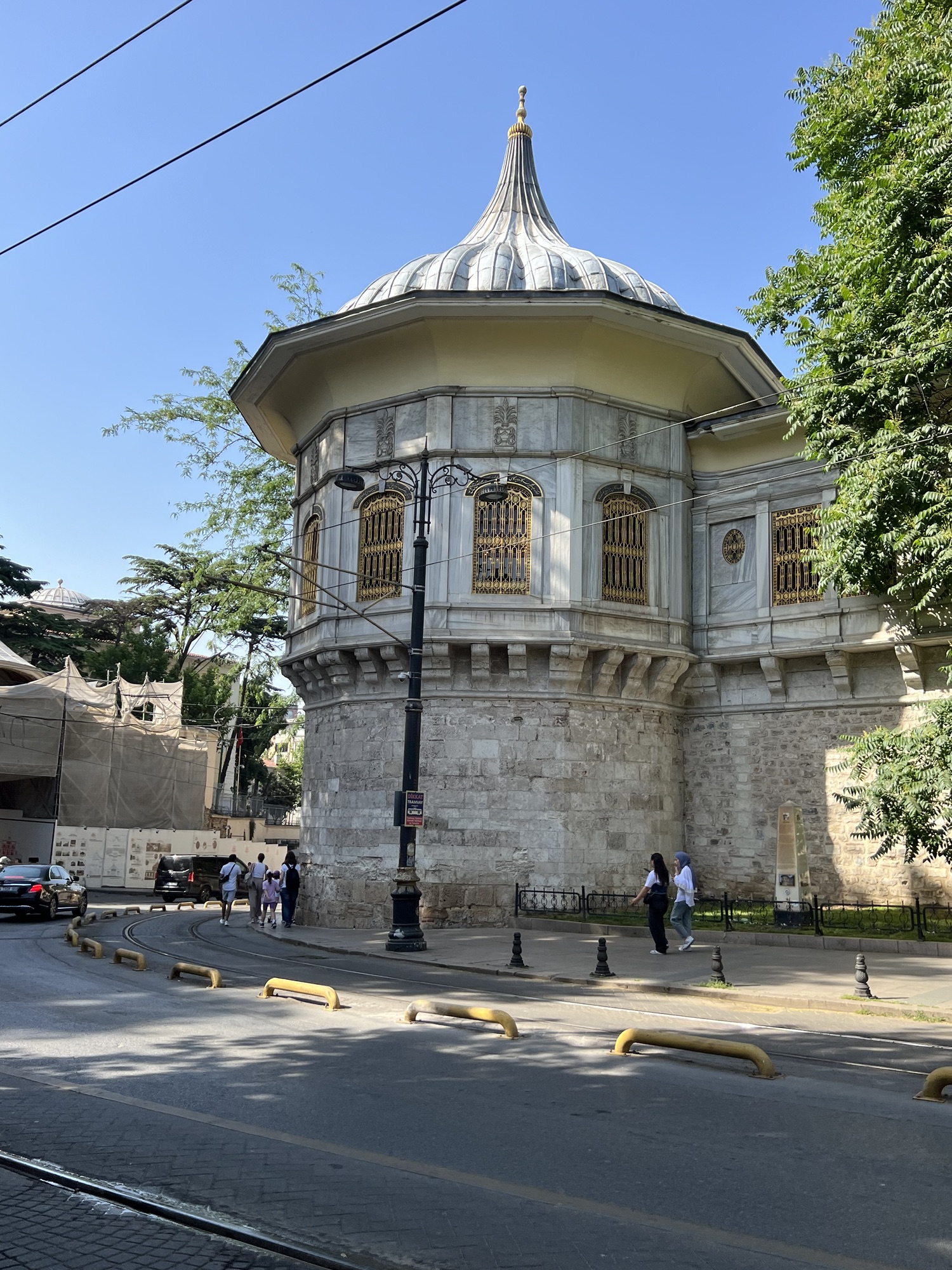 吃完飯走回皇宮門口,進了第一個門後快到第二個門前才是賣票處,一個人要1650里拉,真是有夠貴!我們沒有拿導覽機,自由地隨便走,庭院中間有個採光明亮的建築是圖書室,確實是很適合看書、同時也很適合睡覺。我在裡面拍照時,管理員都會站過來盯著我看,什麼也沒說,還以為只是怕我亂碰東西,直到出來外面才發現裡面不能攝影,但這麼軟性的禁止方式也是很特別。