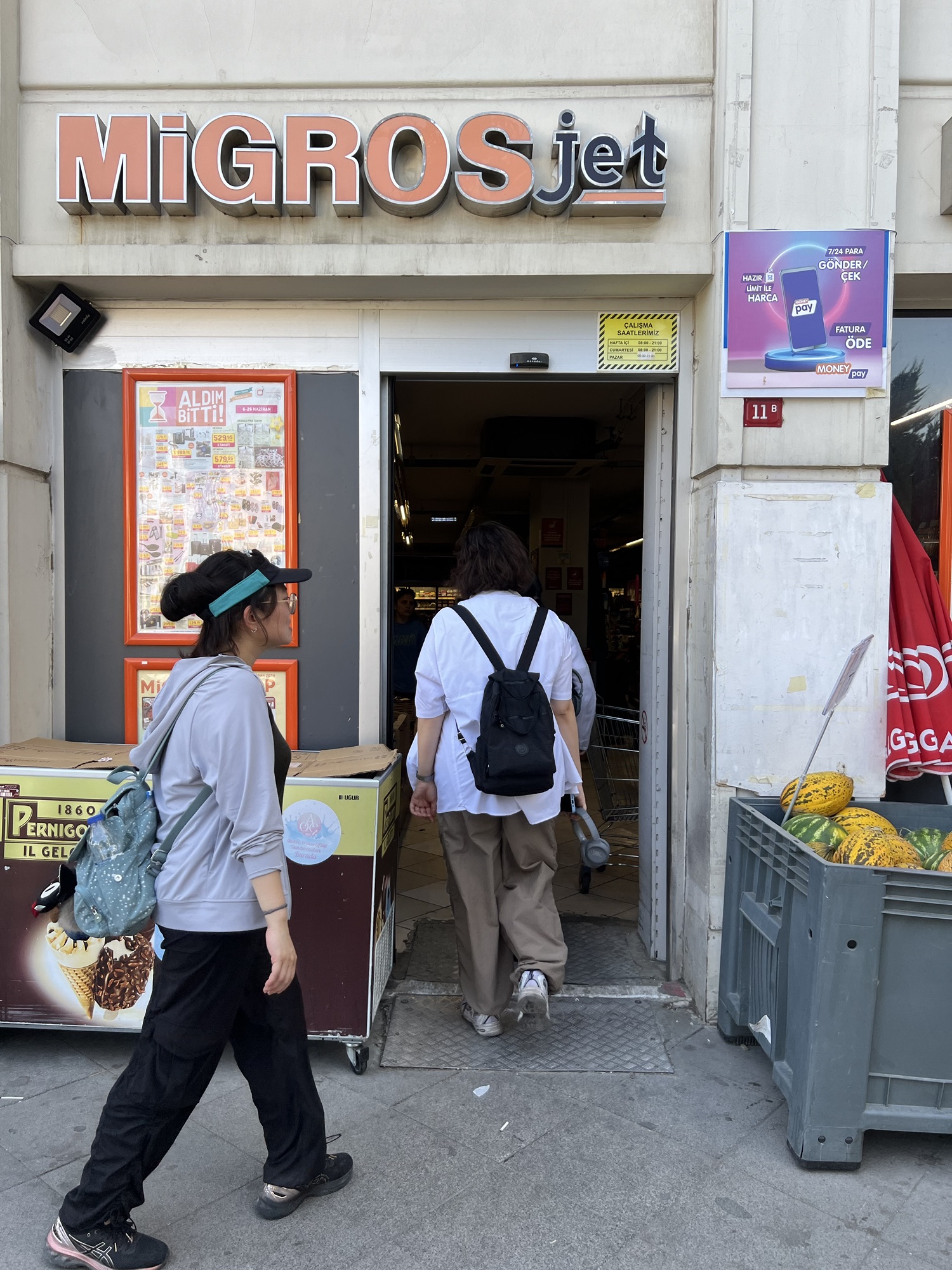 原本離開前想要找到印象中視野很好的角落,結果實在是曬到累了,決定放棄(反正飯店屋頂也差不多)。離開皇宮後找了間Migros超市買飲料,實在太熱,一下就喝完了,馬上又找第二間去買。之後往香料市集前進,途中逛了美術用品店(附近很多間跟師大很像),茹茹買了水彩筆,我在店裡弄背包還被老闆阿伯關切是不是在偷幹東西;又在手工皂店買了肥皂(一塊80里拉真便宜),洗衣服跟洗身體都很讚。