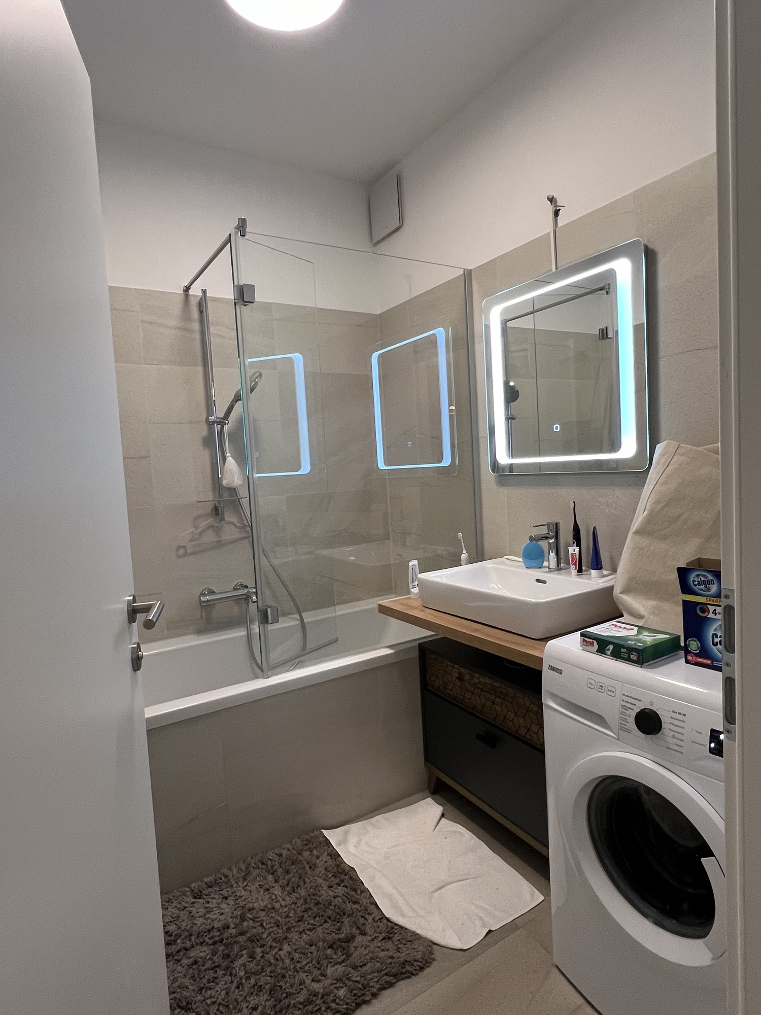 早上跟小美出門買早餐,維也納的天氣突然轉涼,十幾度帶點溼氣的氣溫真的有點冷。先去麥當勞,網站上的捲餅不知道為何消失了,而且還沒有任何薯餅相關的產品,只好隨便買了幾個火腿瑪芬堡;麥當勞的員工看起來有點閒,大部分的機器都自動化了,按個鍵就等他自己弄好。回去前到附近的Lidl逛逛,一個當地阿嬤跟我們打招呼,跟我們說要去哪裡拿推車,但我聽不太懂。看阿嬤熟練的用小鏟子把想要的麵包撥到旁邊來拿,我們也有樣學樣買了可頌,另外再買一些牛奶果汁回去。看到一盒洗衣錠想說應該沒錯,旁邊有其他看來是清洗洗衣機的清潔錠,結果回去發現還是買錯成清洗衣機的!瘋掉!