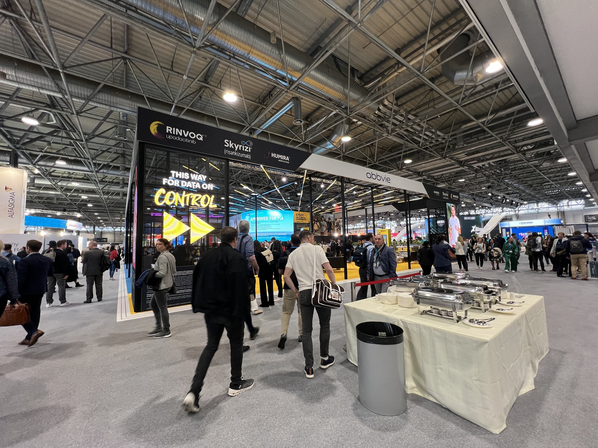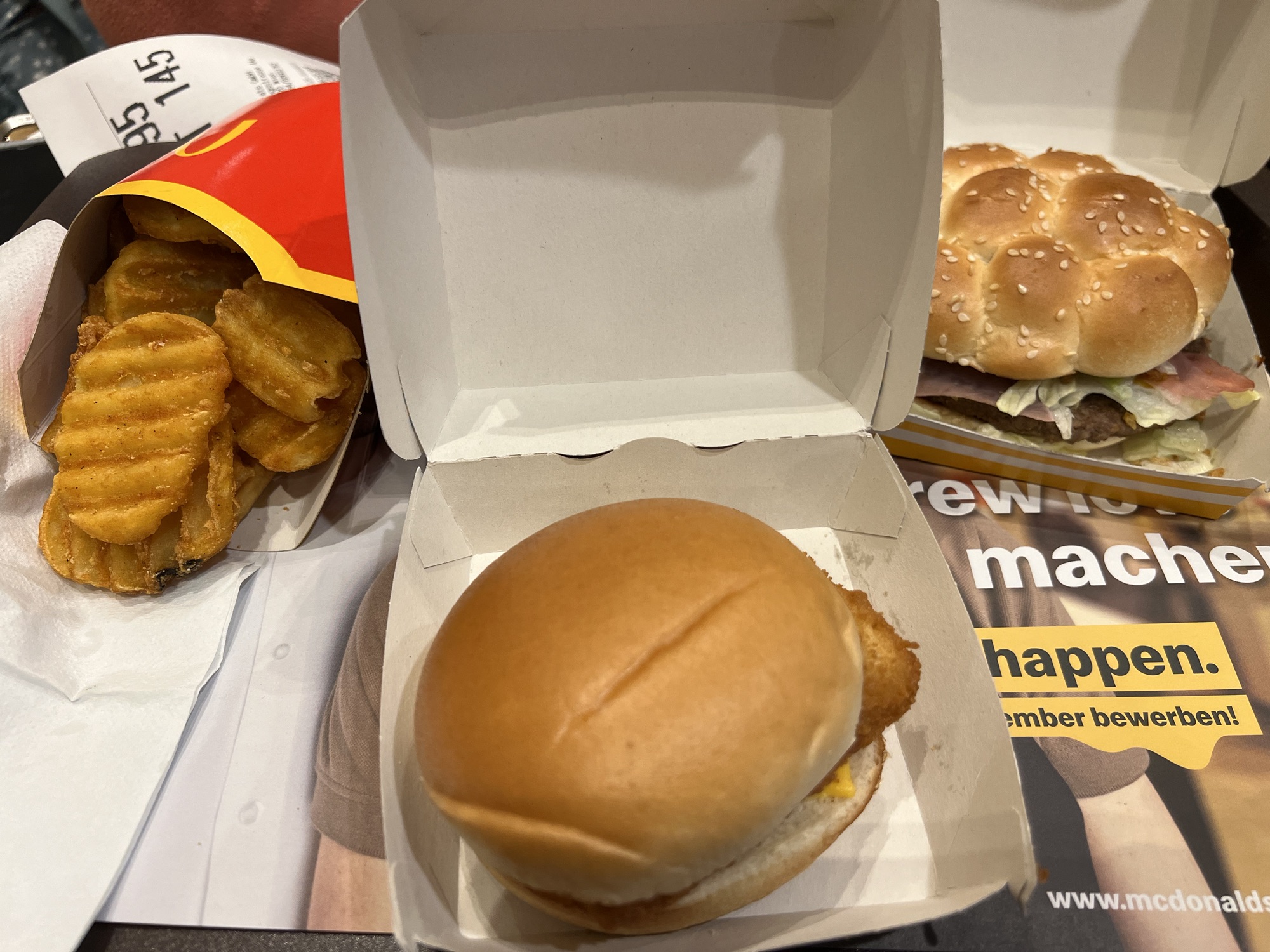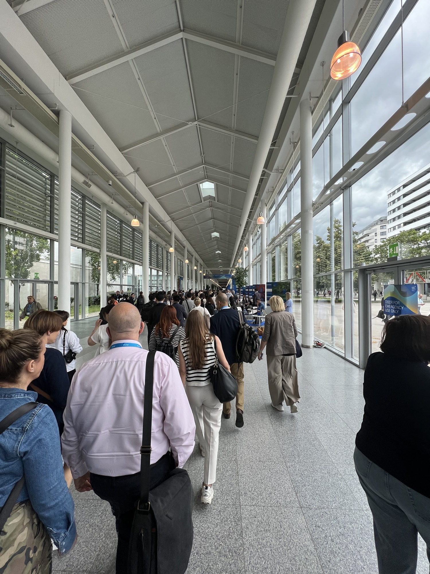 搭地鐵回到會場旁,晚餐吃麥當勞,點了個叫做高地的漢堡,結果就是夾了生火腿的牛肉堡,不怎麼好吃;倒是波浪薯塊讚讚的。吃完出來發現原來今晚有EULAR提供的餐點和酒精飲料(所謂的Networking event),但我剛吃飽,又懶得繞一大圈進去吃,在外面拍拍照就算有參加了。