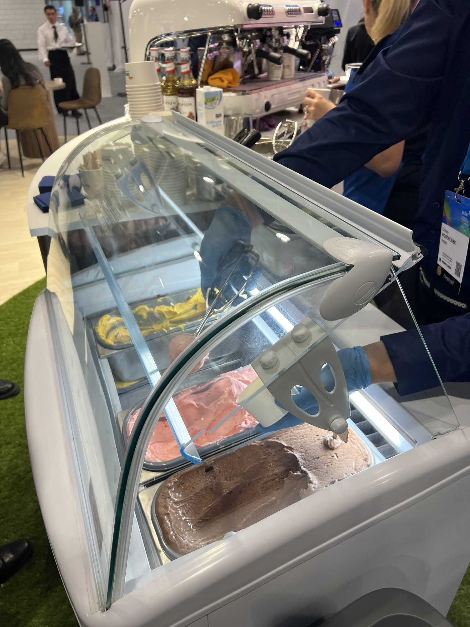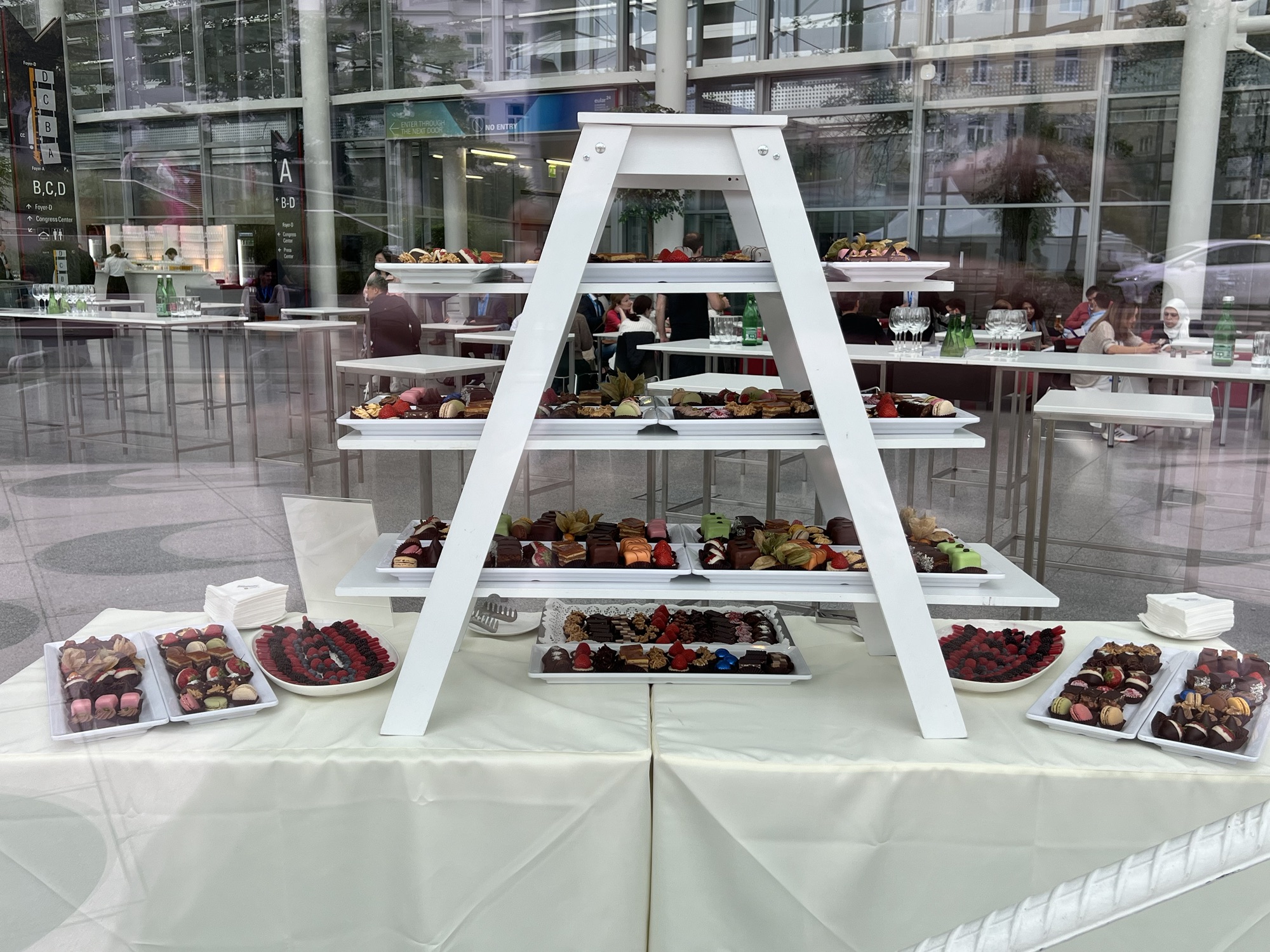 認真聽完課當然就要去廠商攤位覓食一下,已經有上次經驗的我,果然看到有冰淇淋攤位出現,立刻排隊吃一發,但水準實在是差去年義大利的冰淇淋太多太多了。展場內還有維也納當地外燴提供的下午茶小點,今天是包餡的各種麵包,吃起來有點乾,配著咖啡潦草吃完。最後再去最大廳聽紅斑性狼瘡的最新發展,聽完就閃人去找茹茹她們玩耍了。