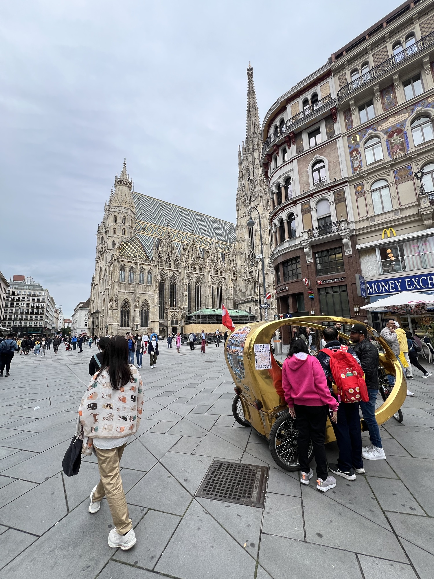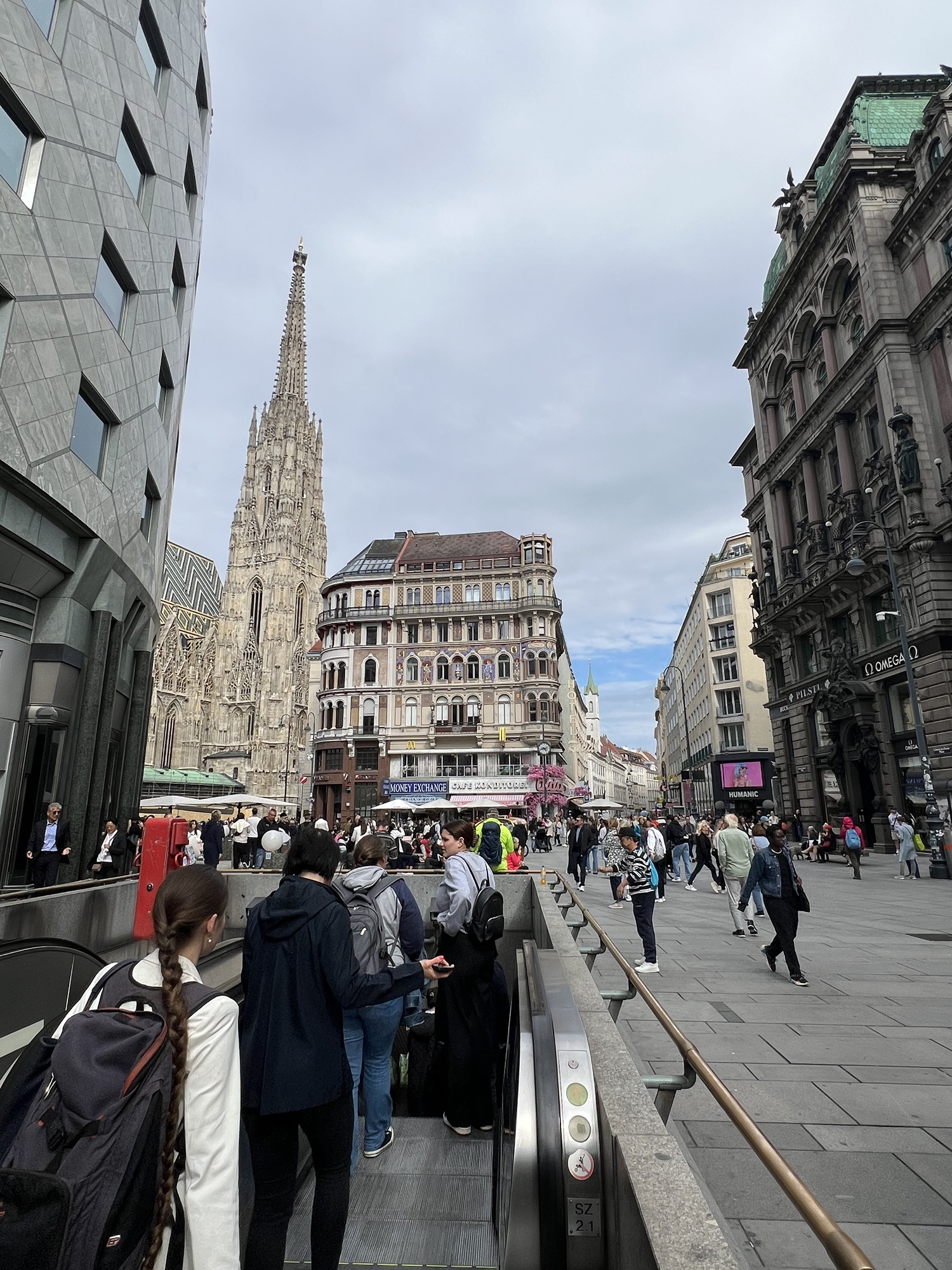 茹茹下午帶小美去施華洛世奇,我搭地鐵去找她們會合。茹茹對於現在的款式很不滿,而且也沒有像幾年前來的那樣大特價了,不過蝙蝠車和尤達還是很讚。小美逛了一圈也沒看到想下手的東西,無功而返。倒是施華洛世奇地下室簡直變成亞洲人免費上廁所的首選地點了。沿著大街往大教堂的方向走,經過一間STEFFL百貨公司,地下一樓還有個神祕的莫札特展覽,隨便逛了一下但裡面居然沒有手機訊號,非常神秘。